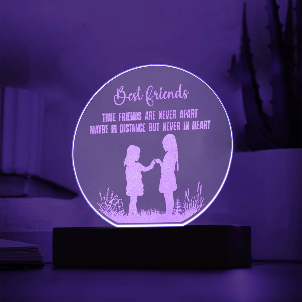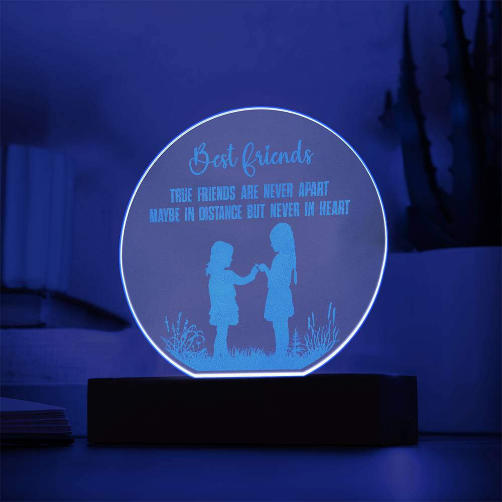 Best Friends | True Friends are never apart - Engraved Acrylic Circle with LED Base w/Cord