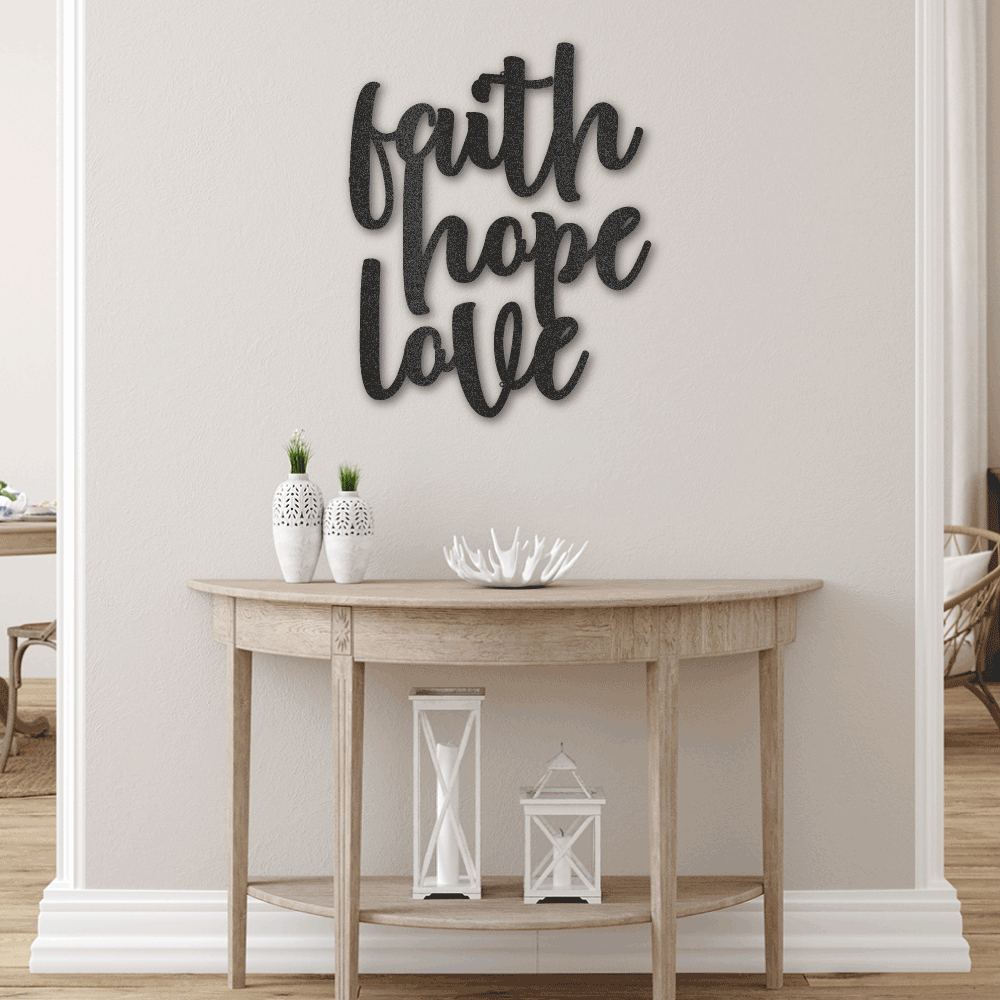 Laser cut from mild steel and powder coated so you can hang this item indoors or outdoors. High quality, durable, and will not deteriorate! Mounting hardware is not included.