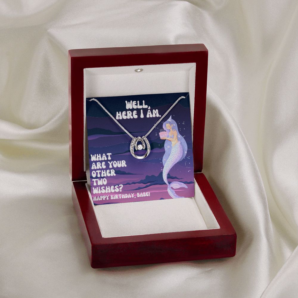 Well, Here I am. What are your other two wishes? Happy Birthday, Babe - Lucky in Love Necklace
