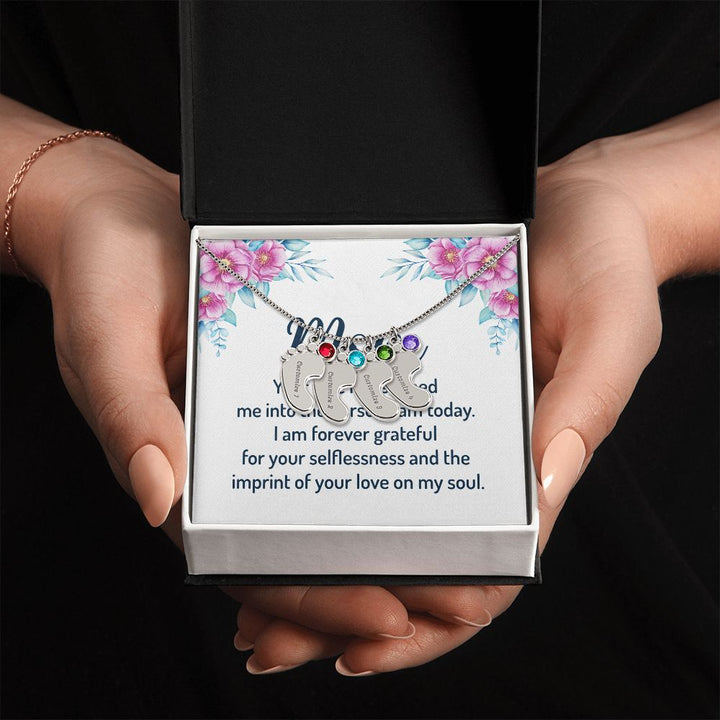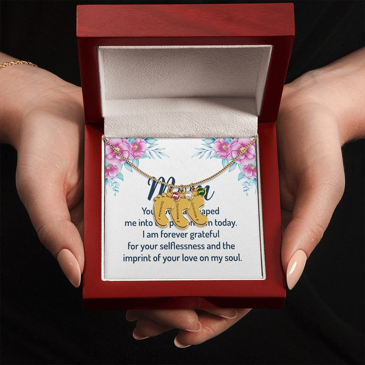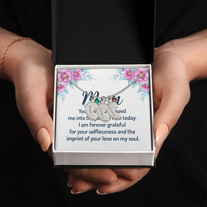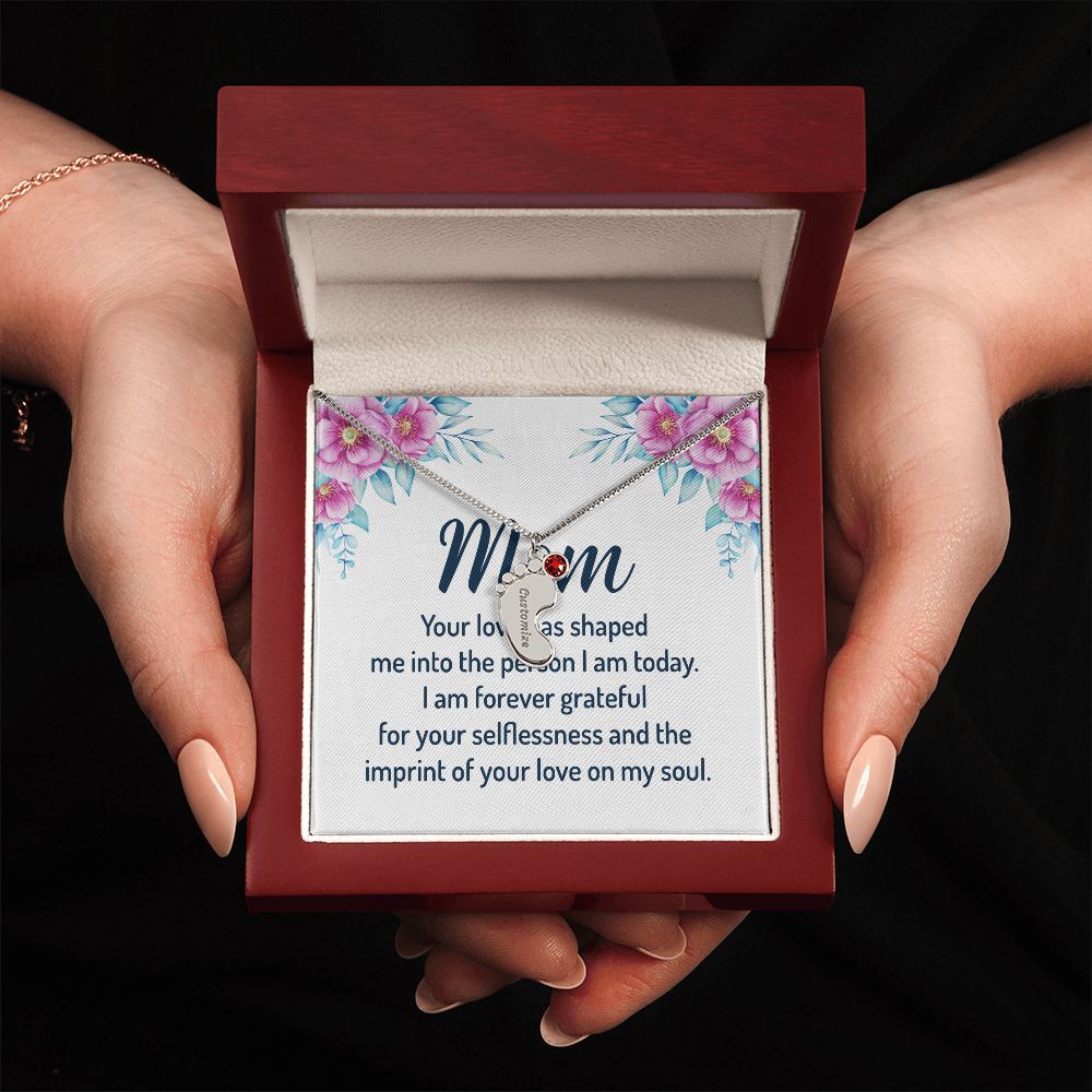 Mom | Your selflessness and the imprint of your love on my soul - Baby Feet Necklace with Birthstone