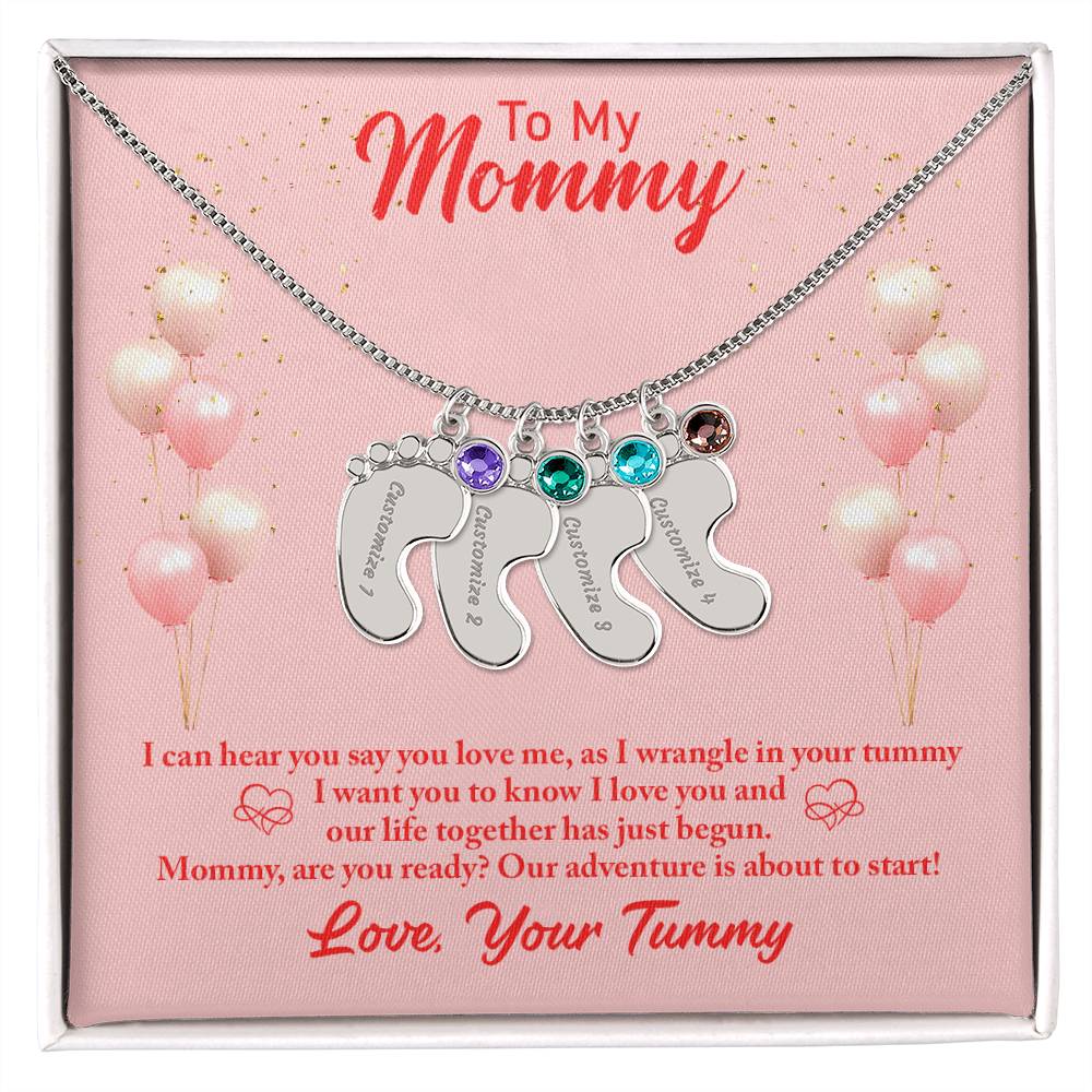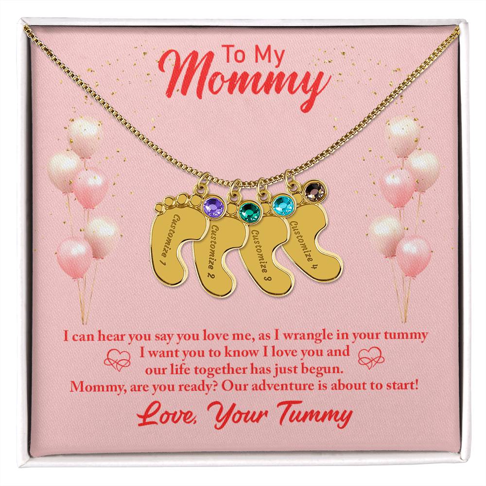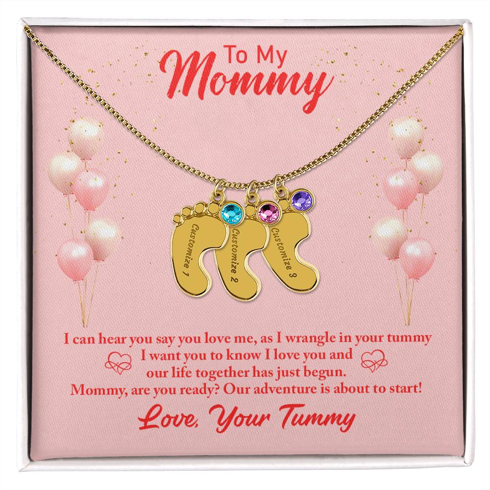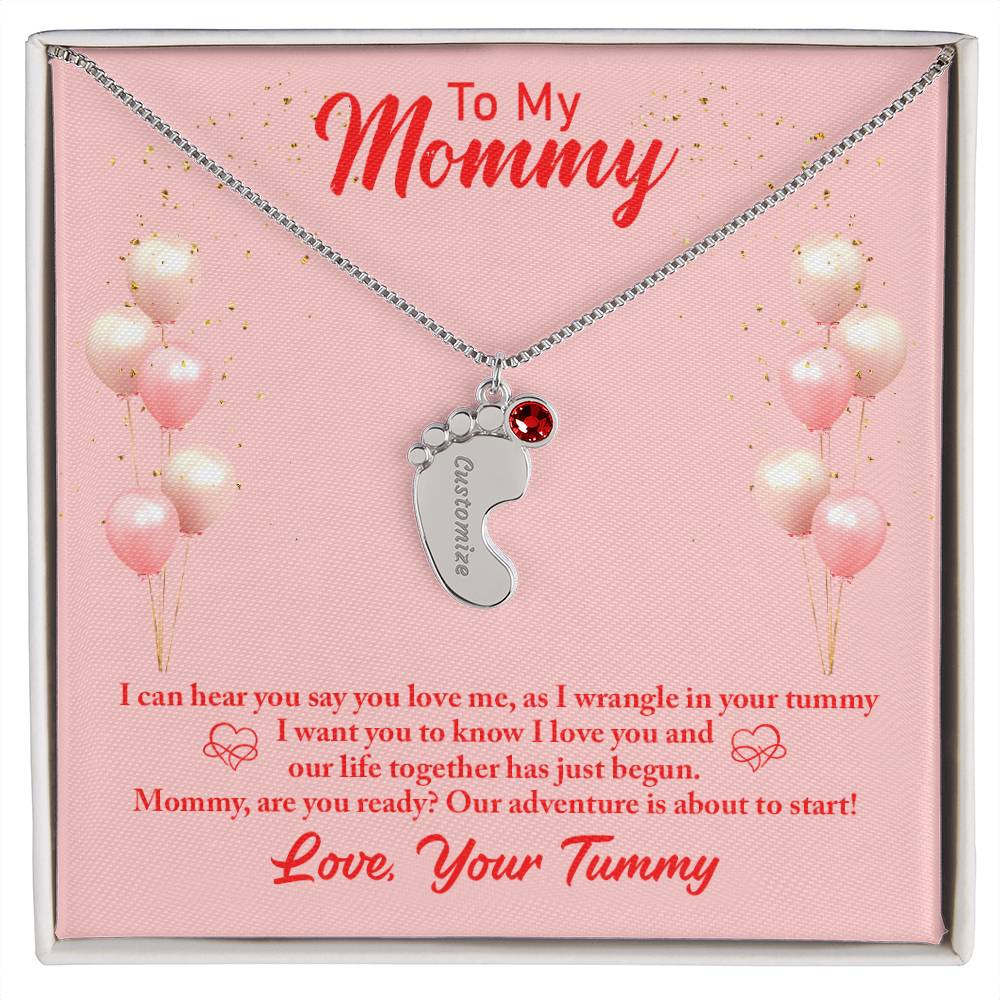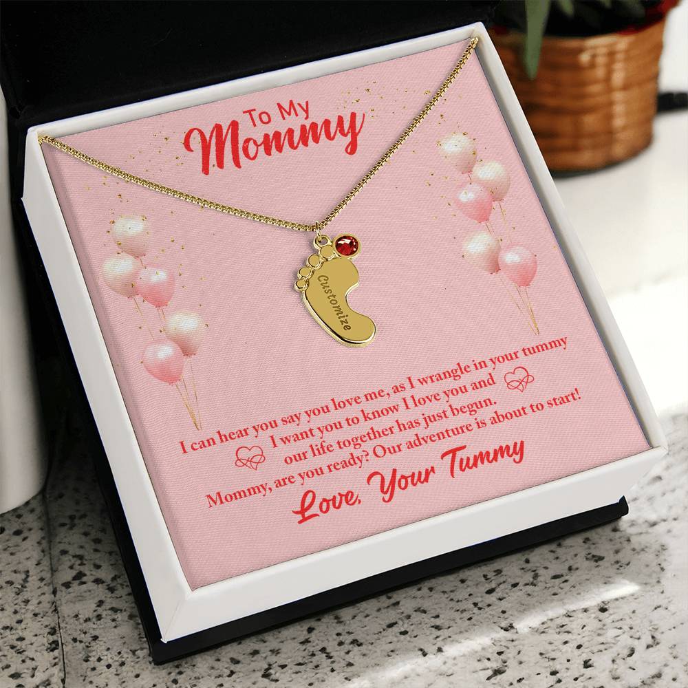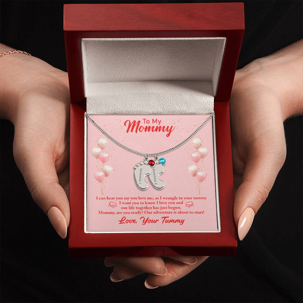 To My Mommy | I can hear you say you love me - aby Feet Necklace with Birthstone