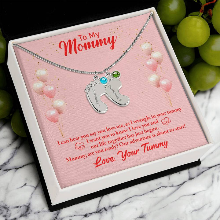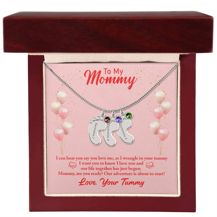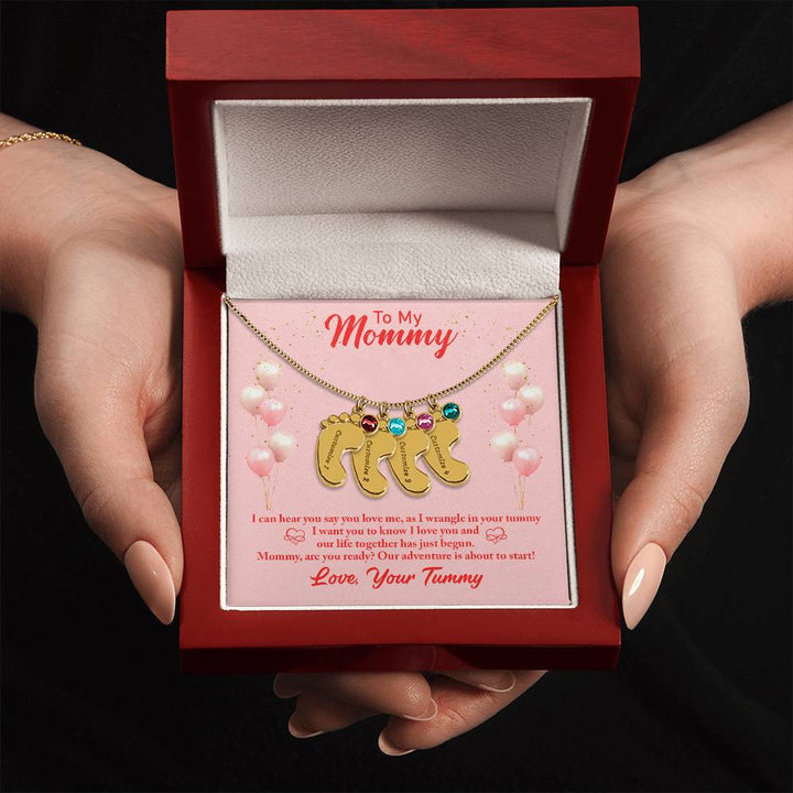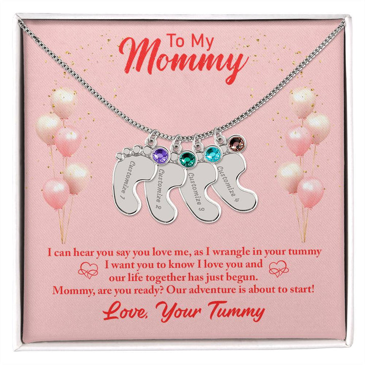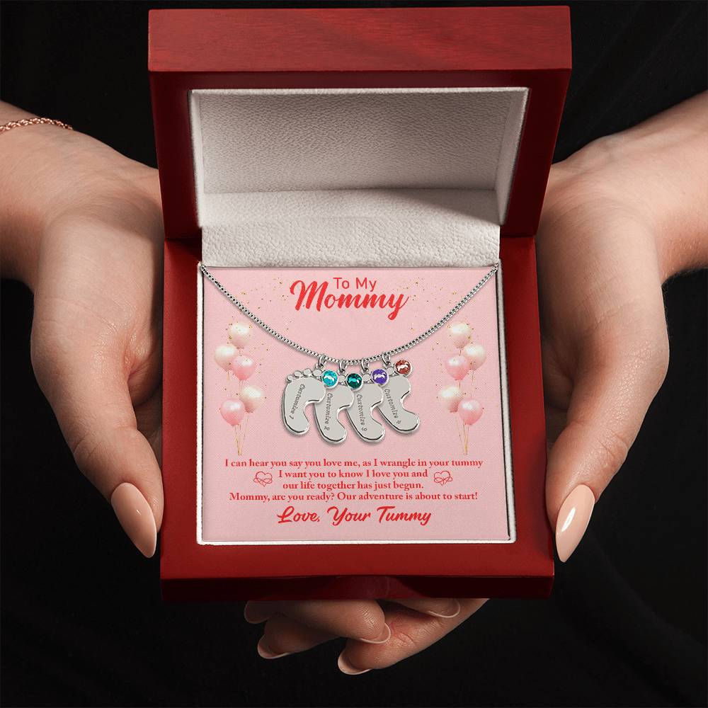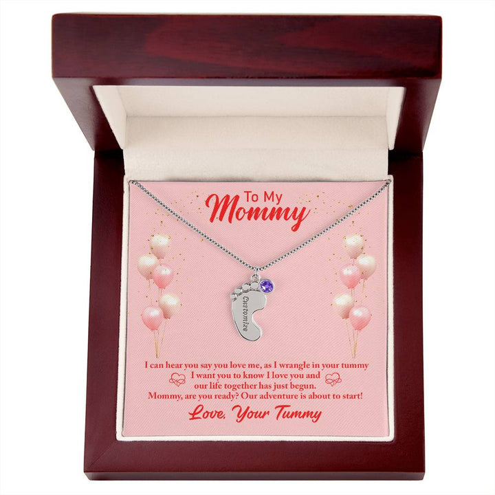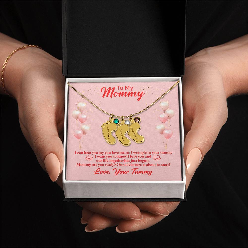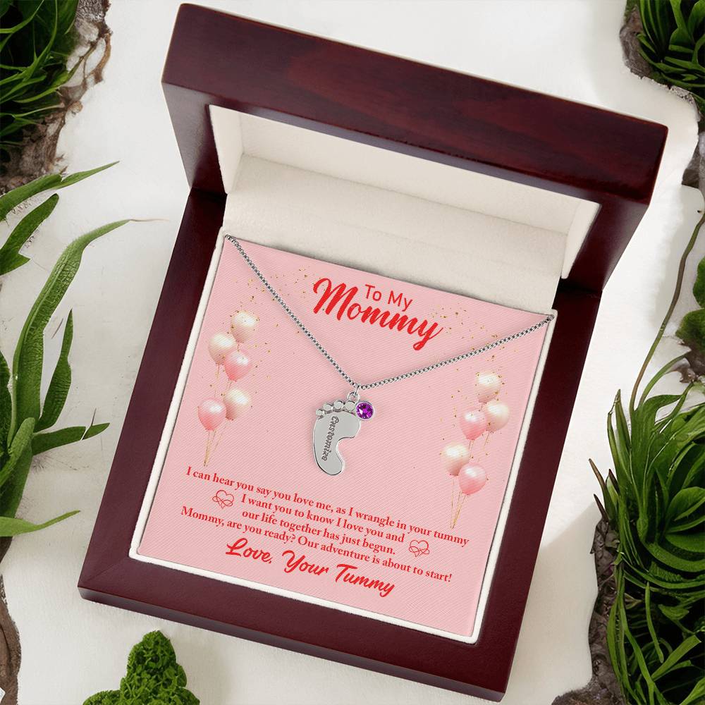 To My Mommy | I can hear you say you love me - aby Feet Necklace with Birthstone