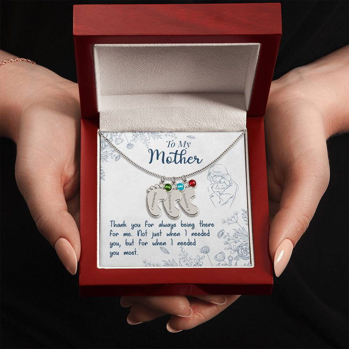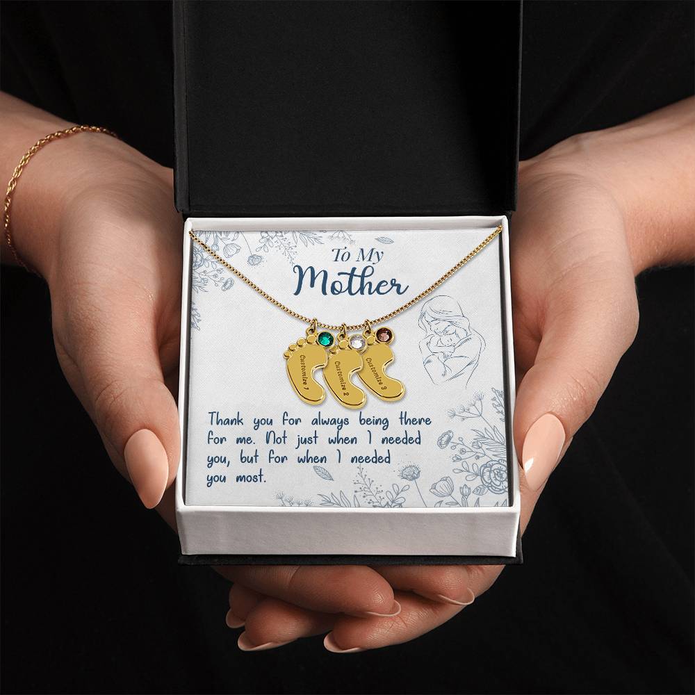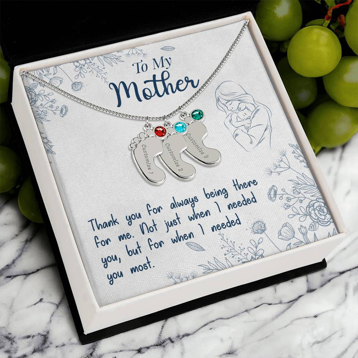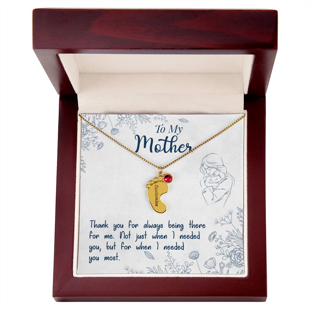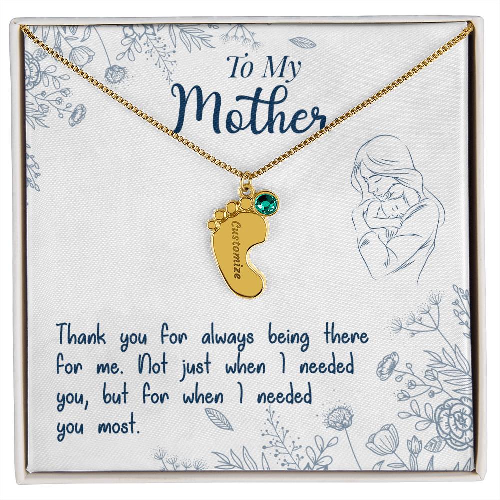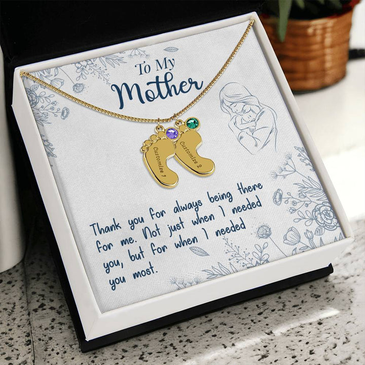 To My Mother | Thank you for always being there for me - Baby Feet Necklace with Birthstone