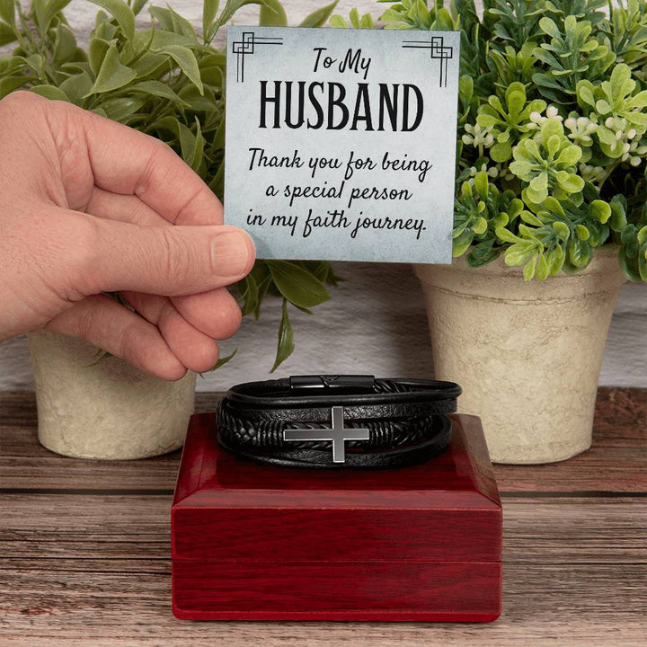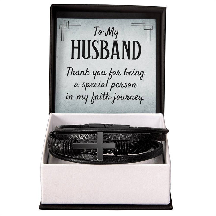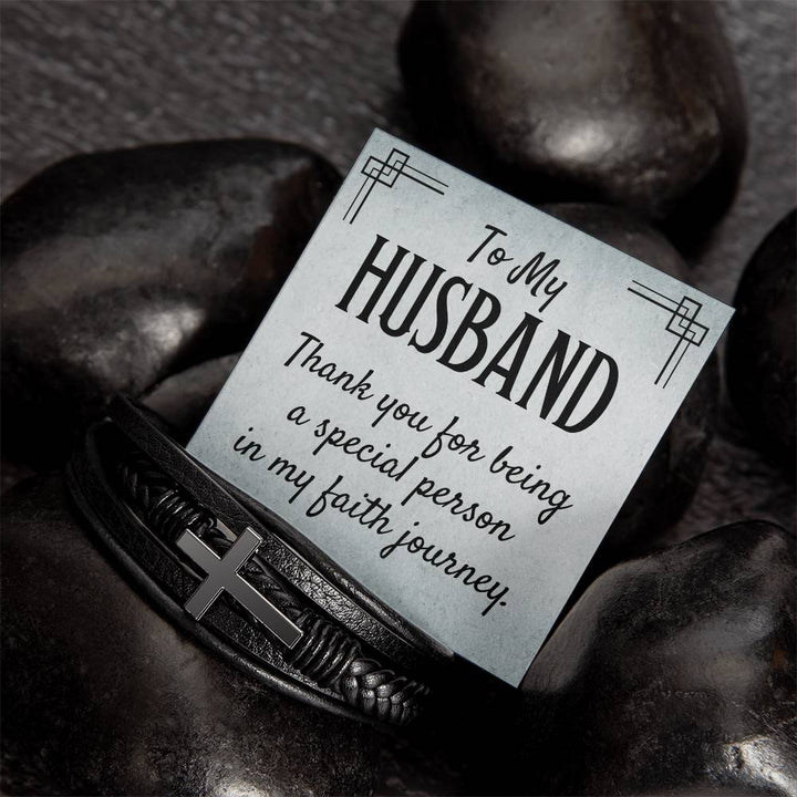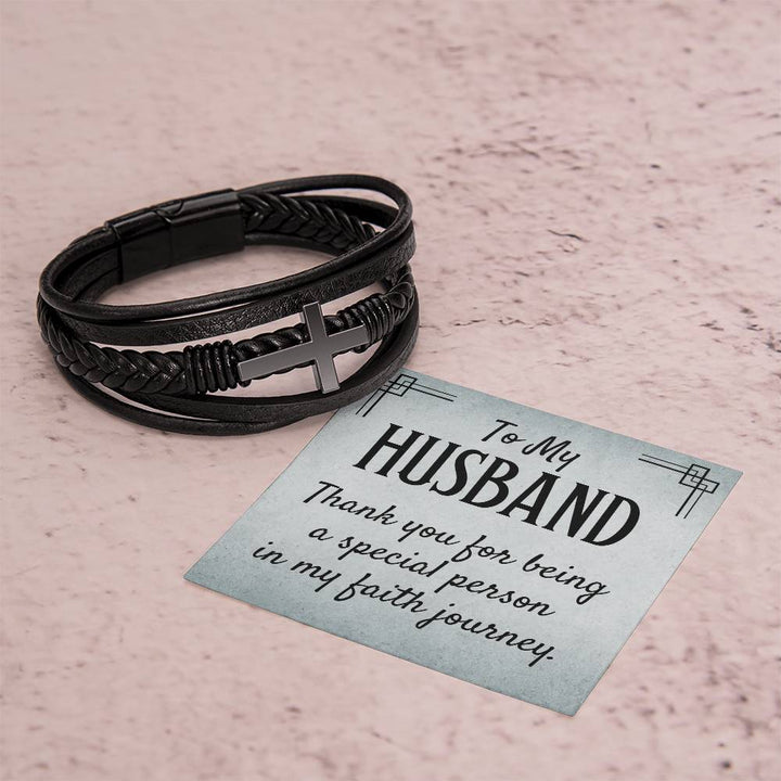 To My Husband | Thank you for being a special person in my Faith journey - Men's Cross Leather Bracelet