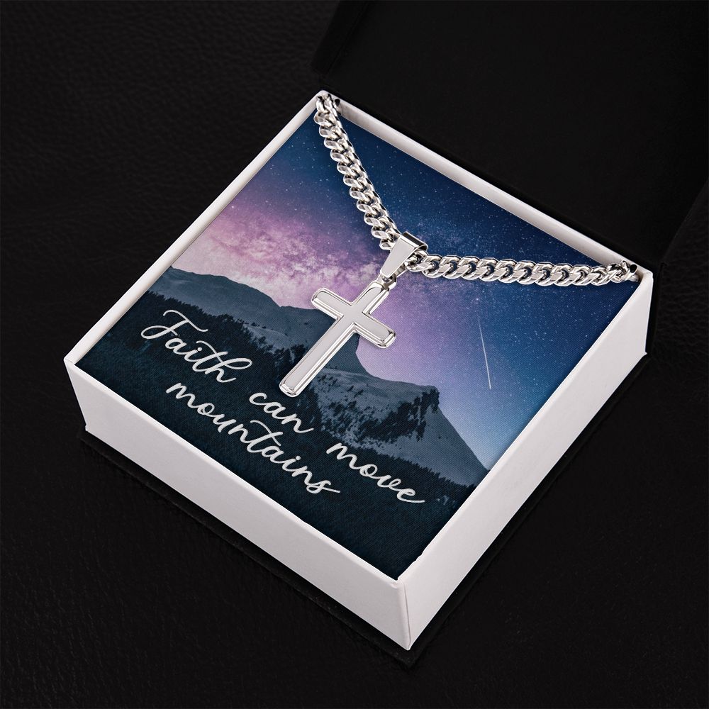 Faith Can Move Mountains - Cuban Chain with Artisan Cross Necklace