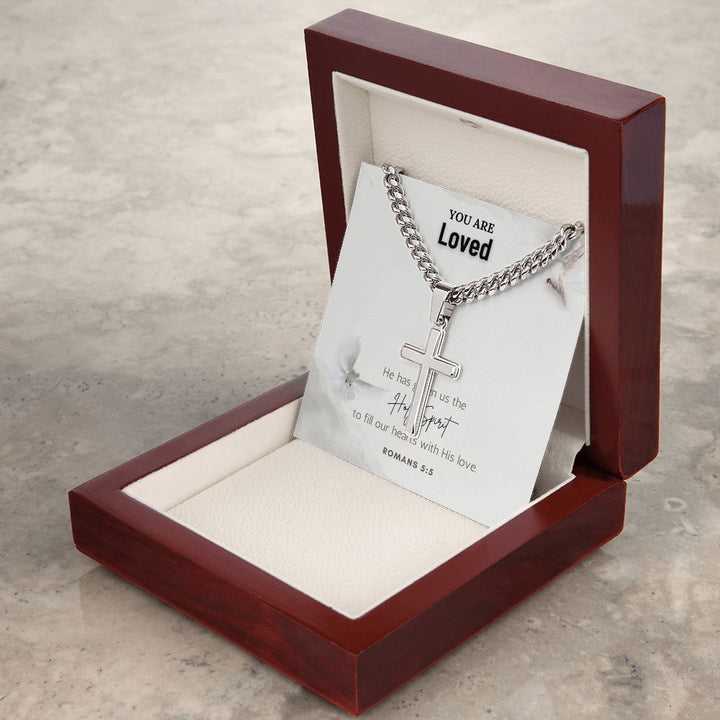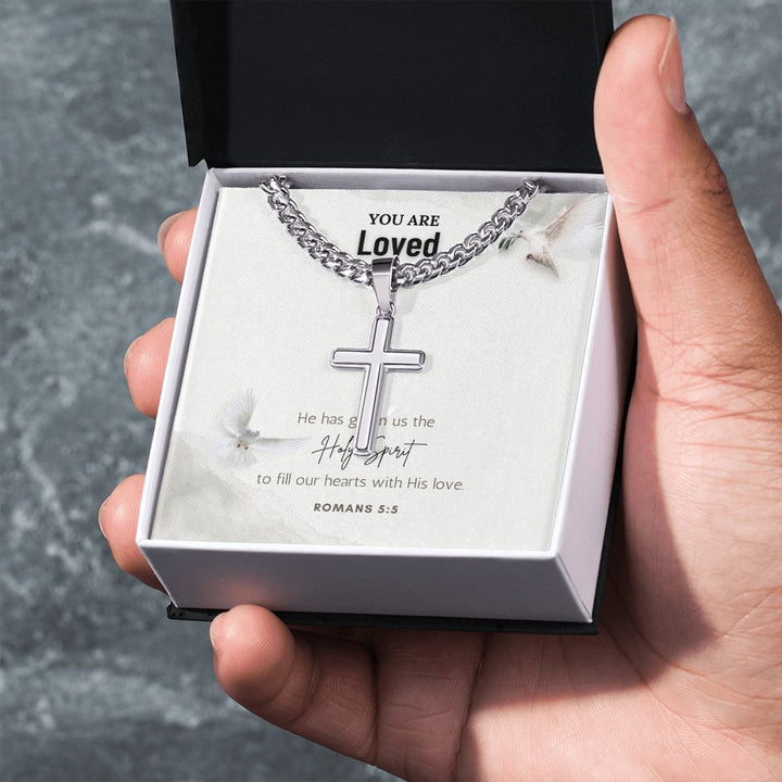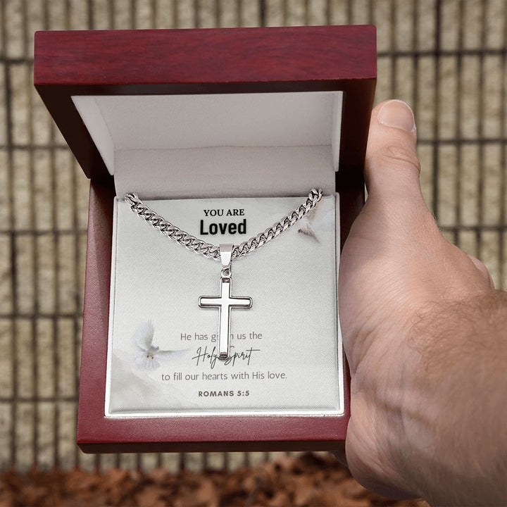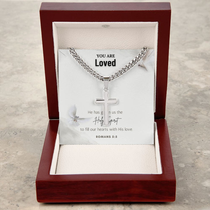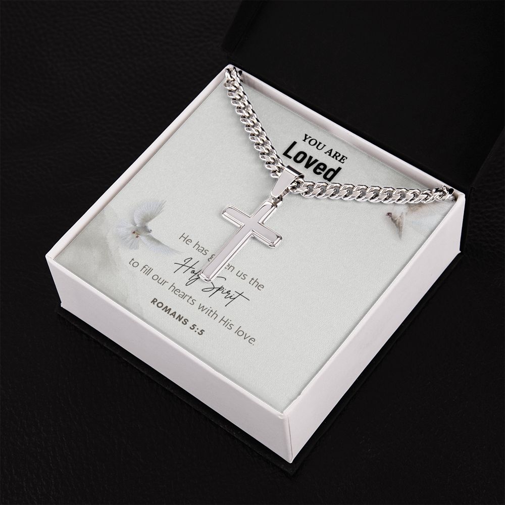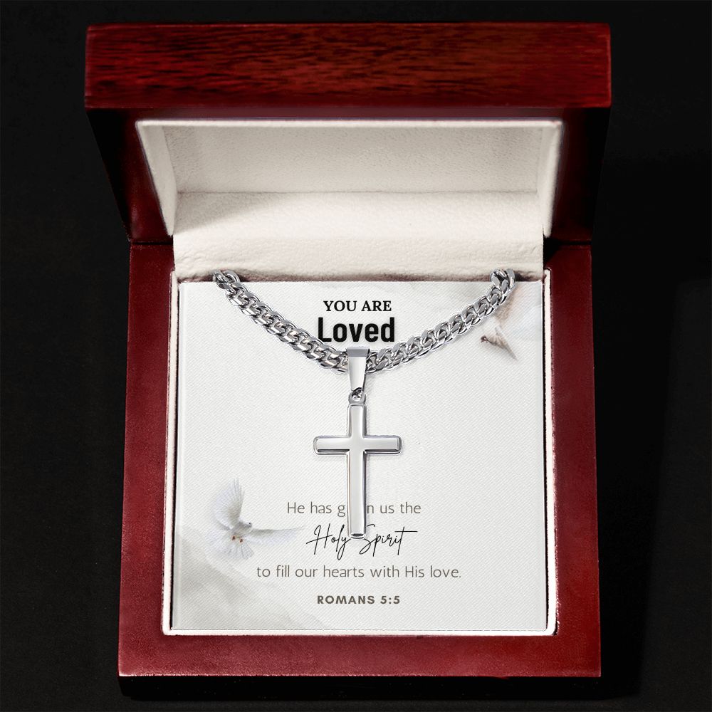 You are Loved | He has given us the Holy Spirit to fill our hearts with His love. - Cuban Chain with Artisan Cross Necklace