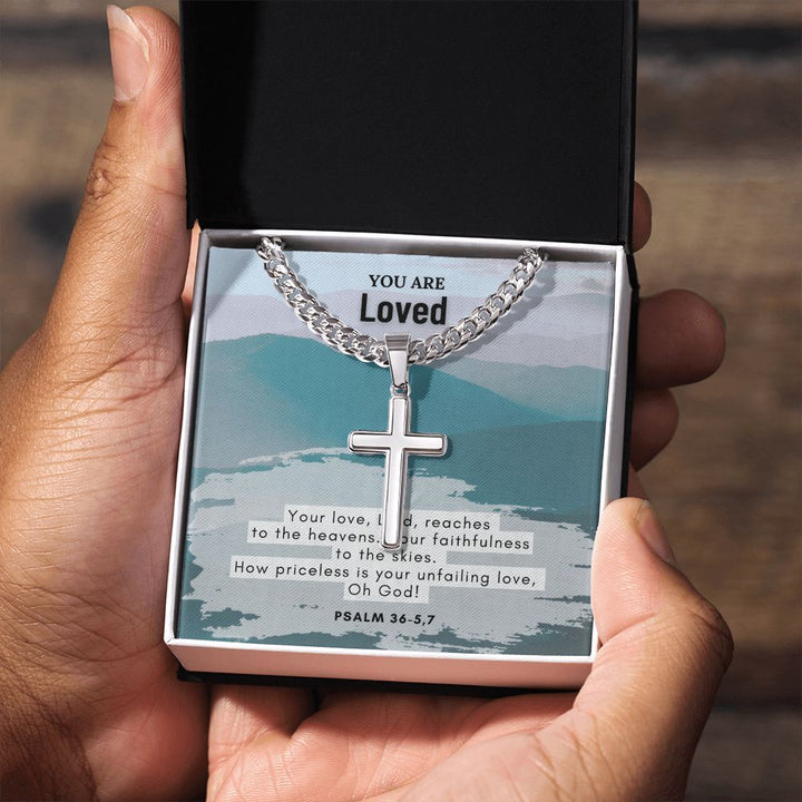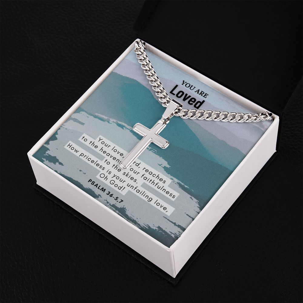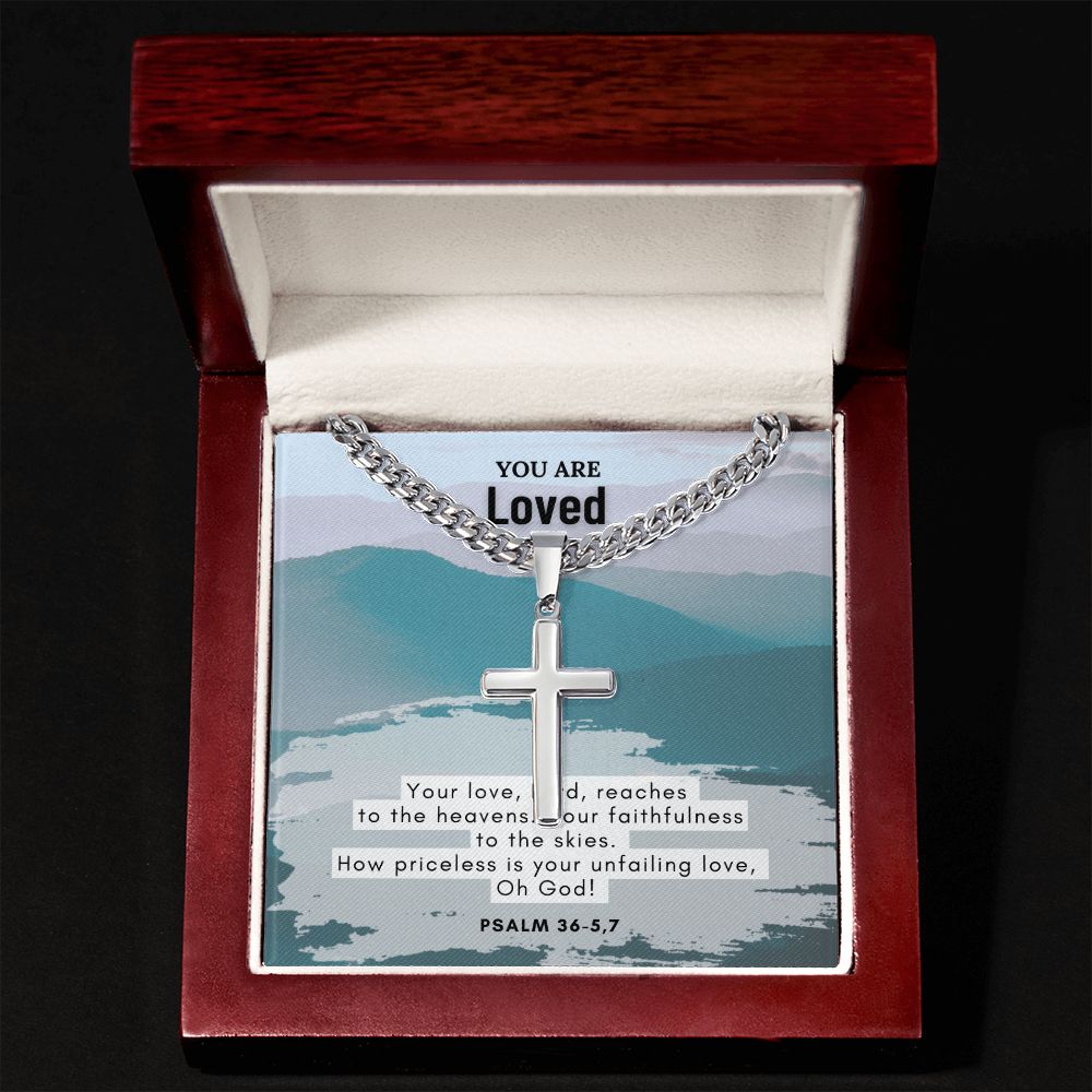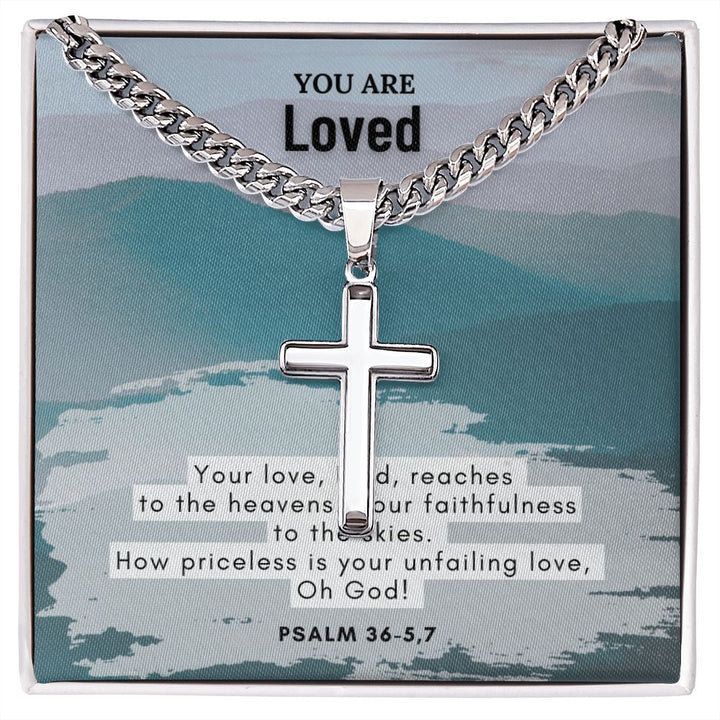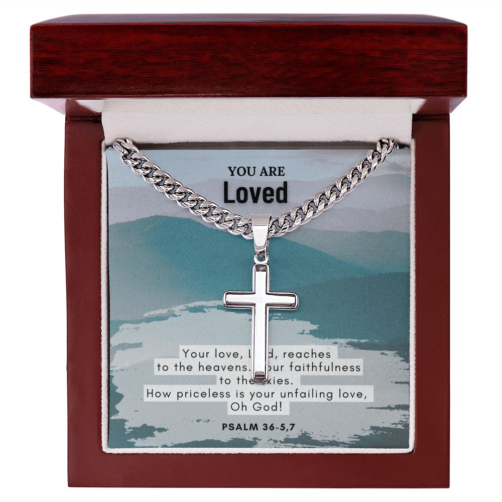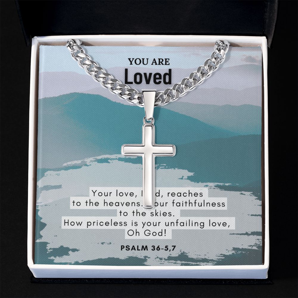 You are Loved | How priceless is your unfailing love, Oh God! Psalm 36-5,7 - Cuban Chain with Artisan Cross Necklace