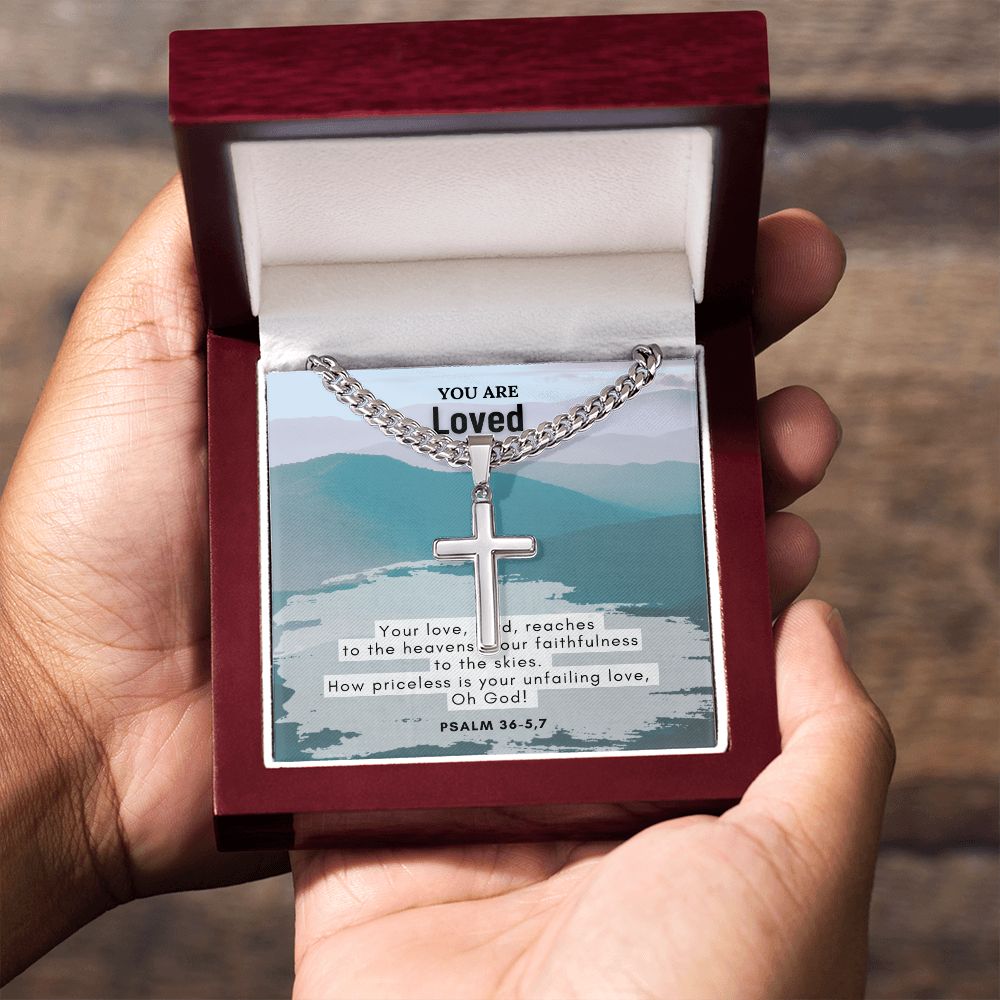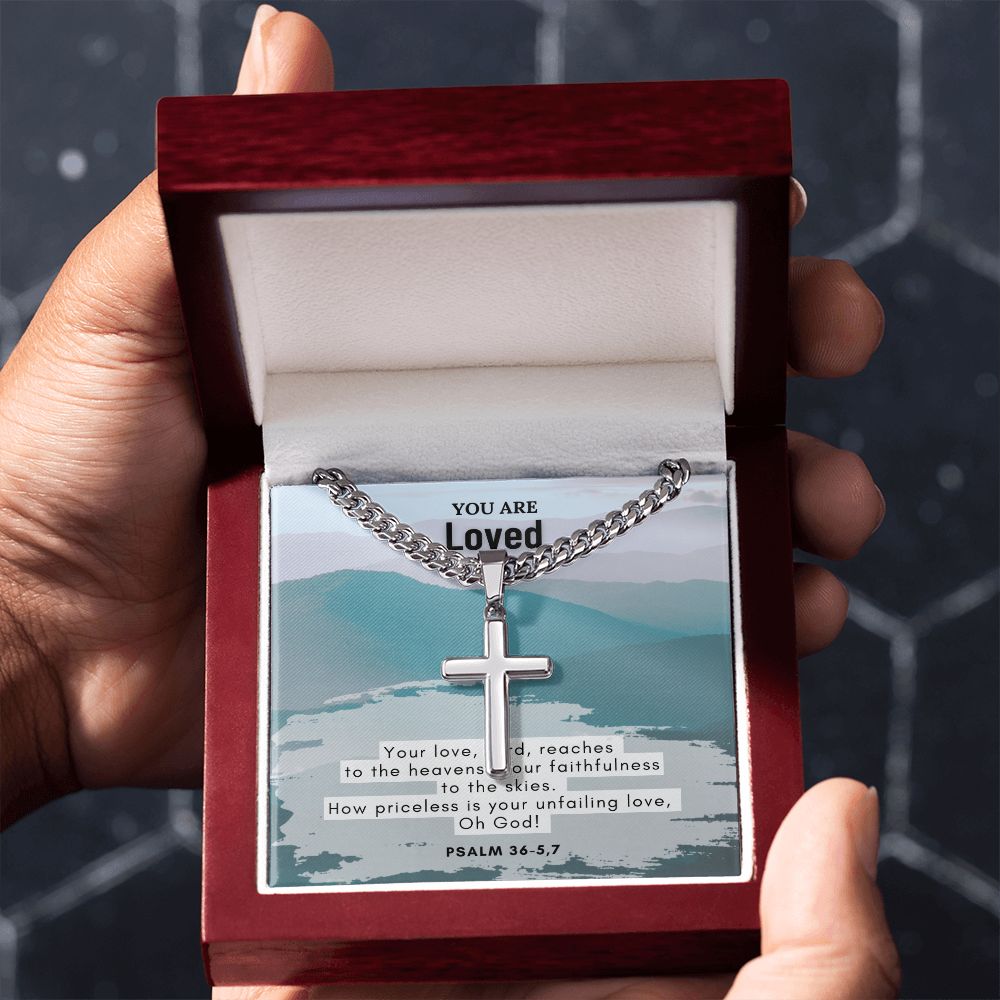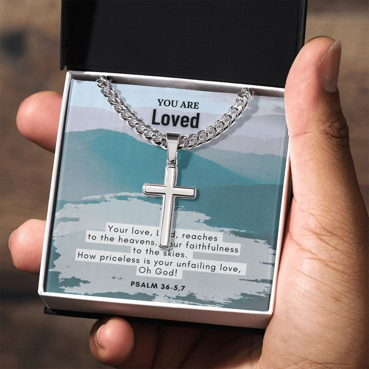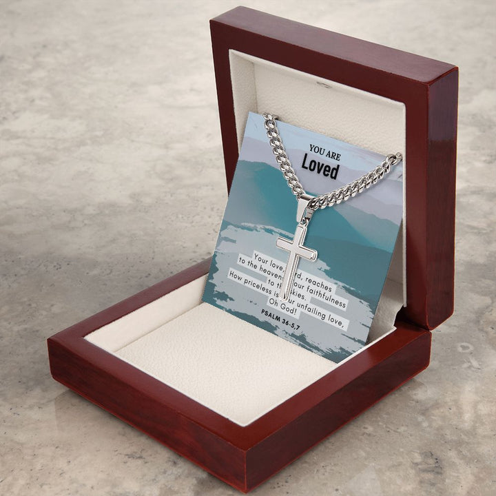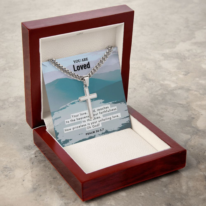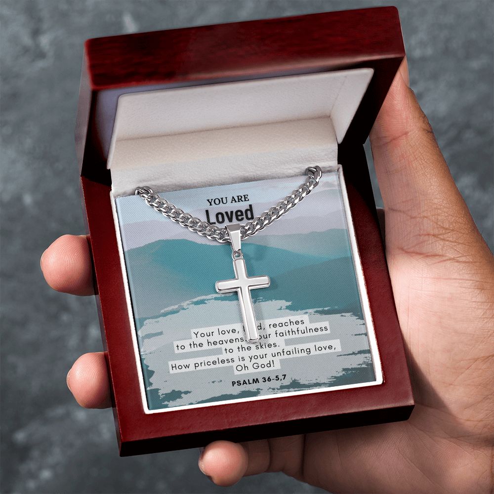 You are Loved | How priceless is your unfailing love, Oh God! Psalm 36-5,7 - Cuban Chain with Artisan Cross Necklace