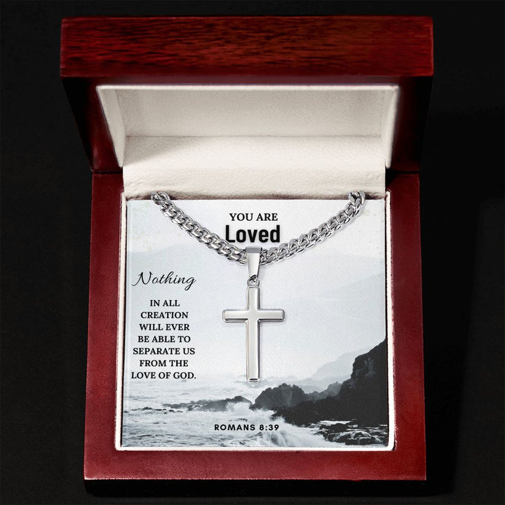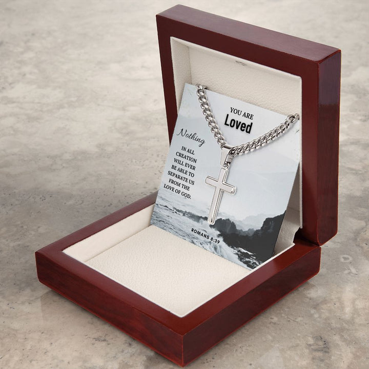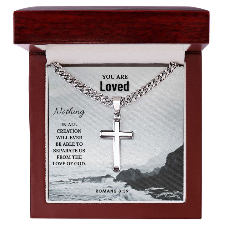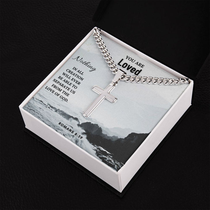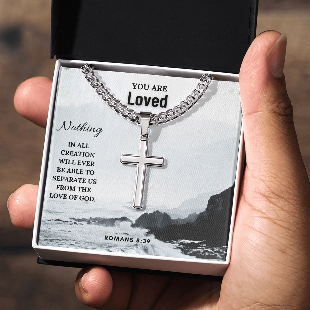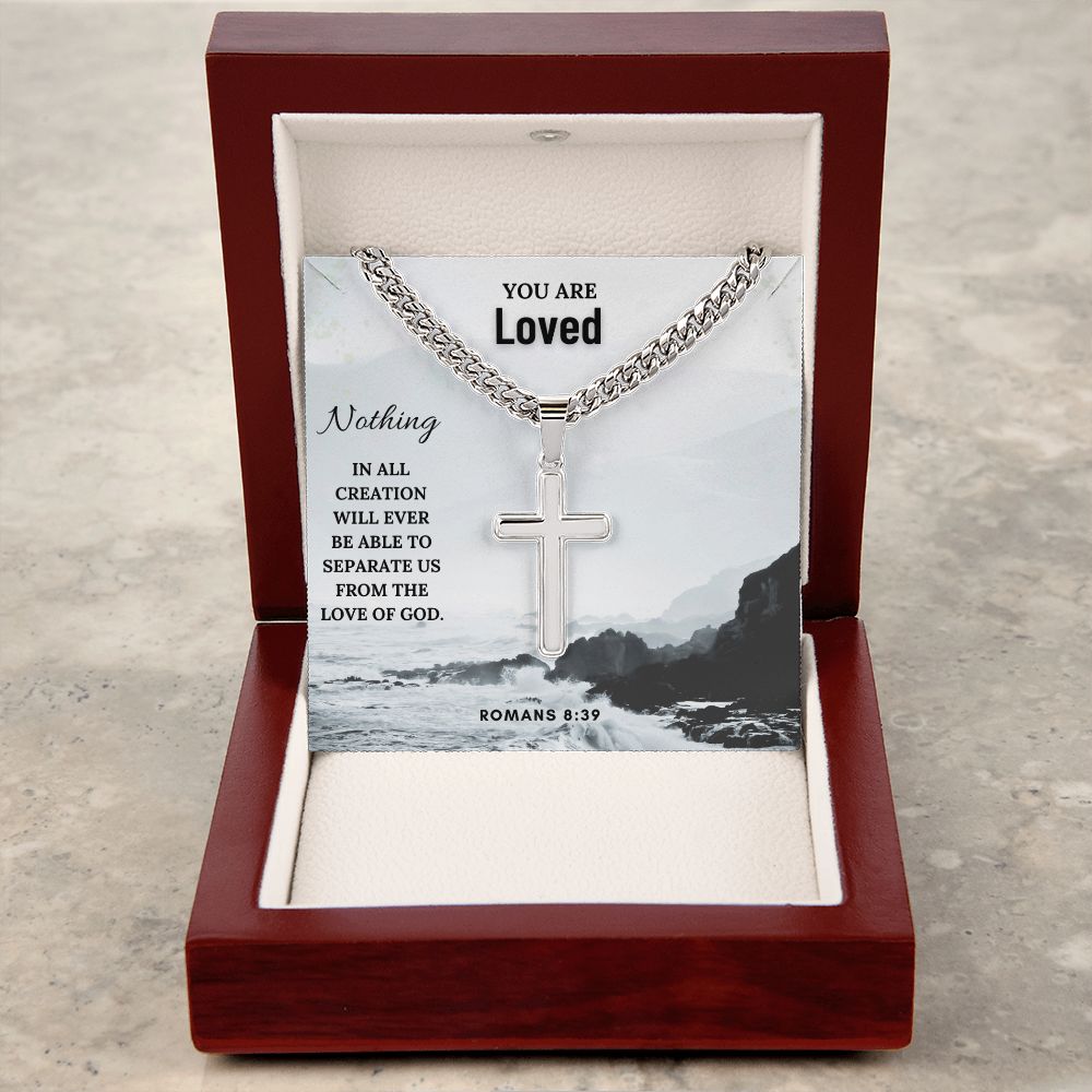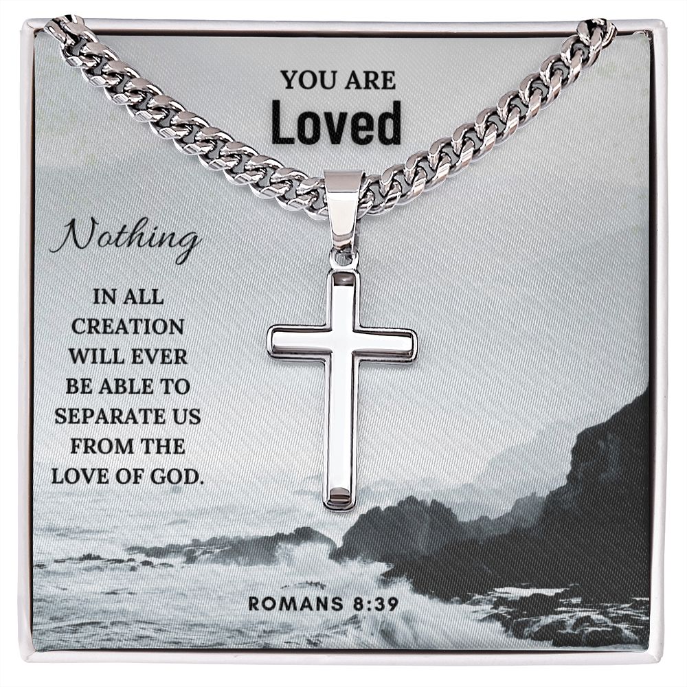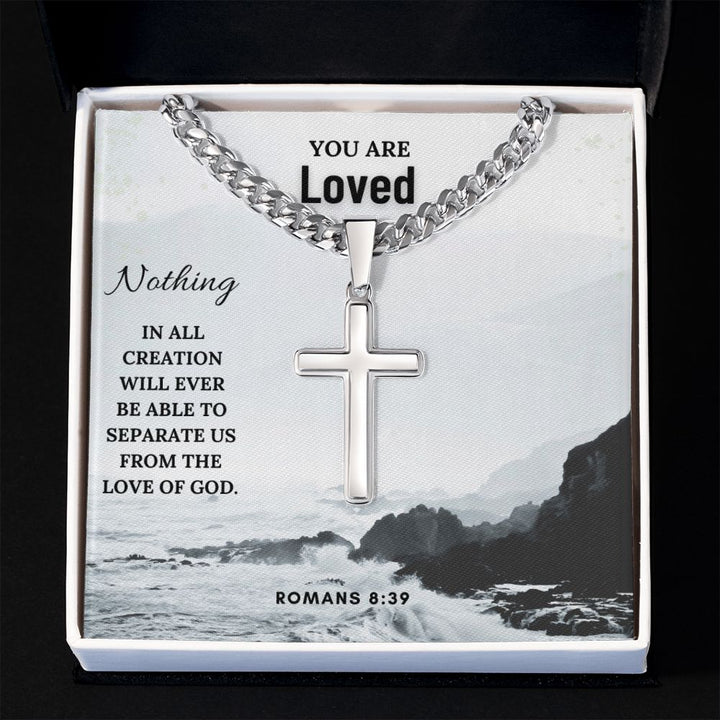 You are Loved | Nothing in all creation will ever be able to separate us from the Love of God. Romans 8:39 - Cuban Chain with Artisan Cross Necklace