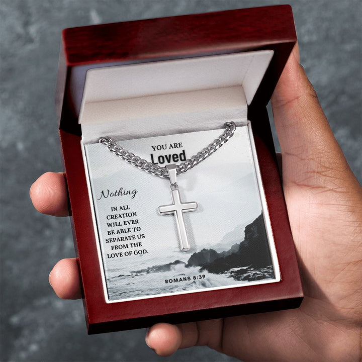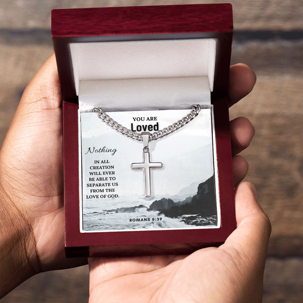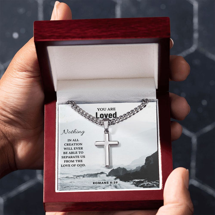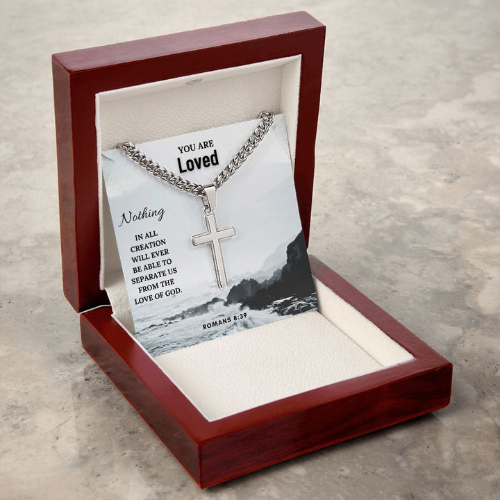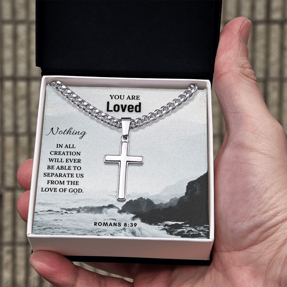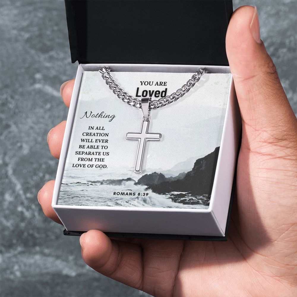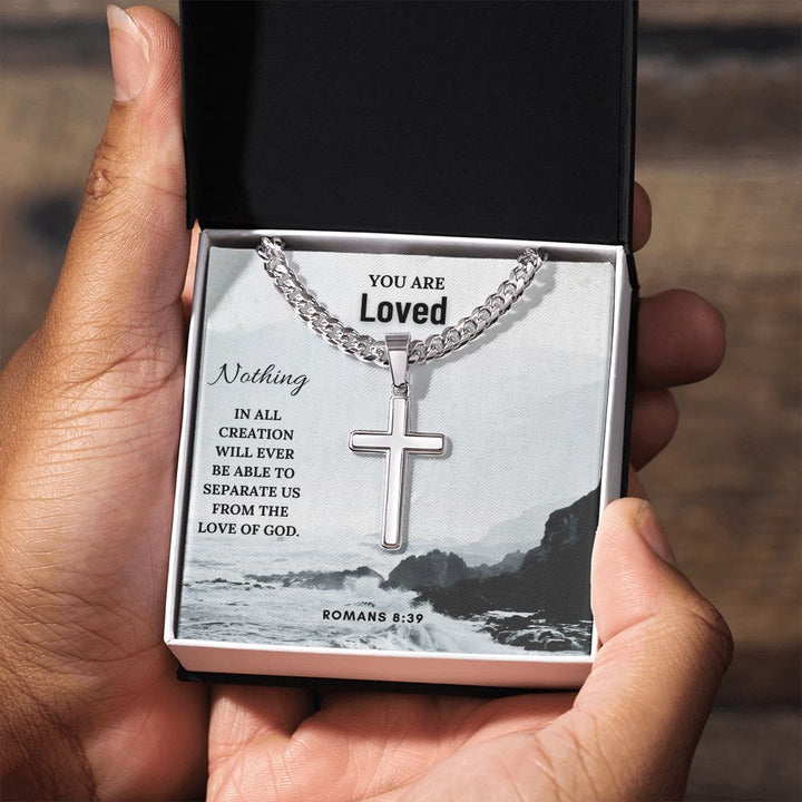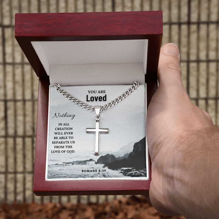 You are Loved | Nothing in all creation will ever be able to separate us from the Love of God. Romans 8:39 - Cuban Chain with Artisan Cross Necklace