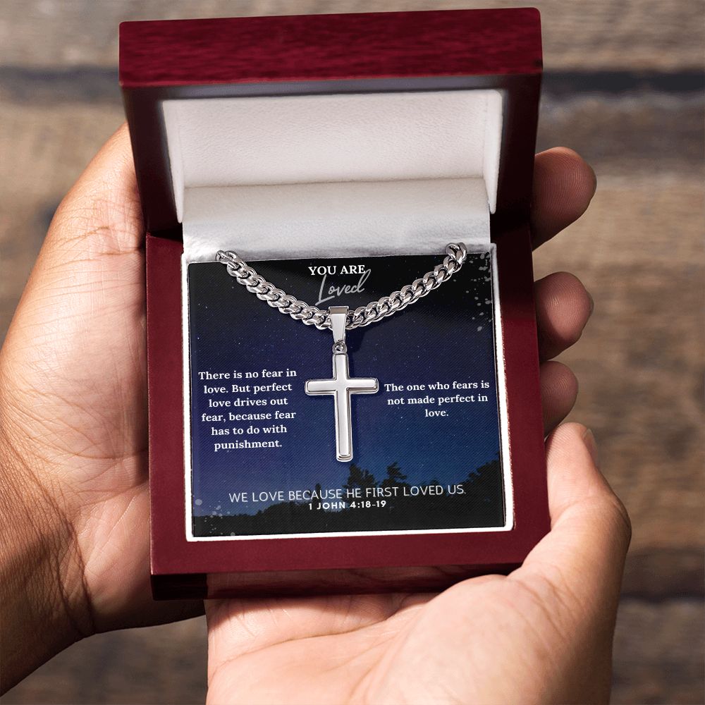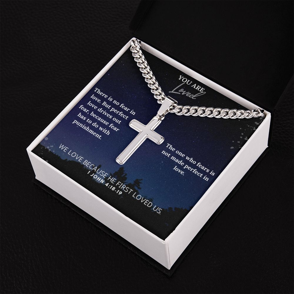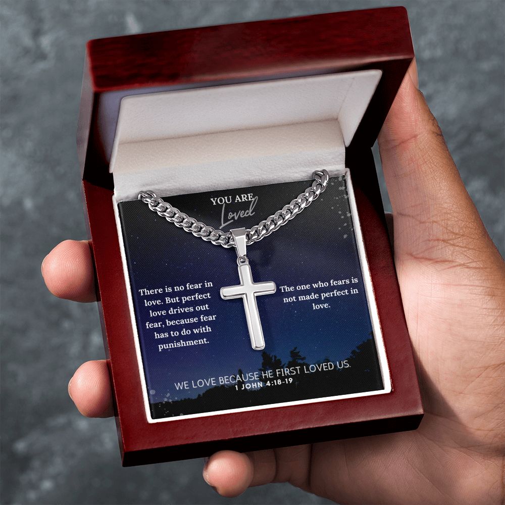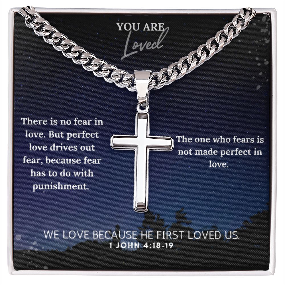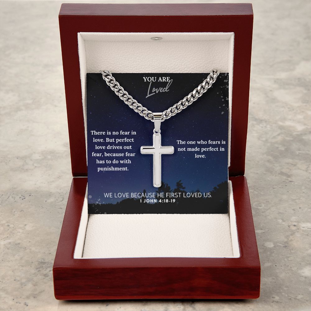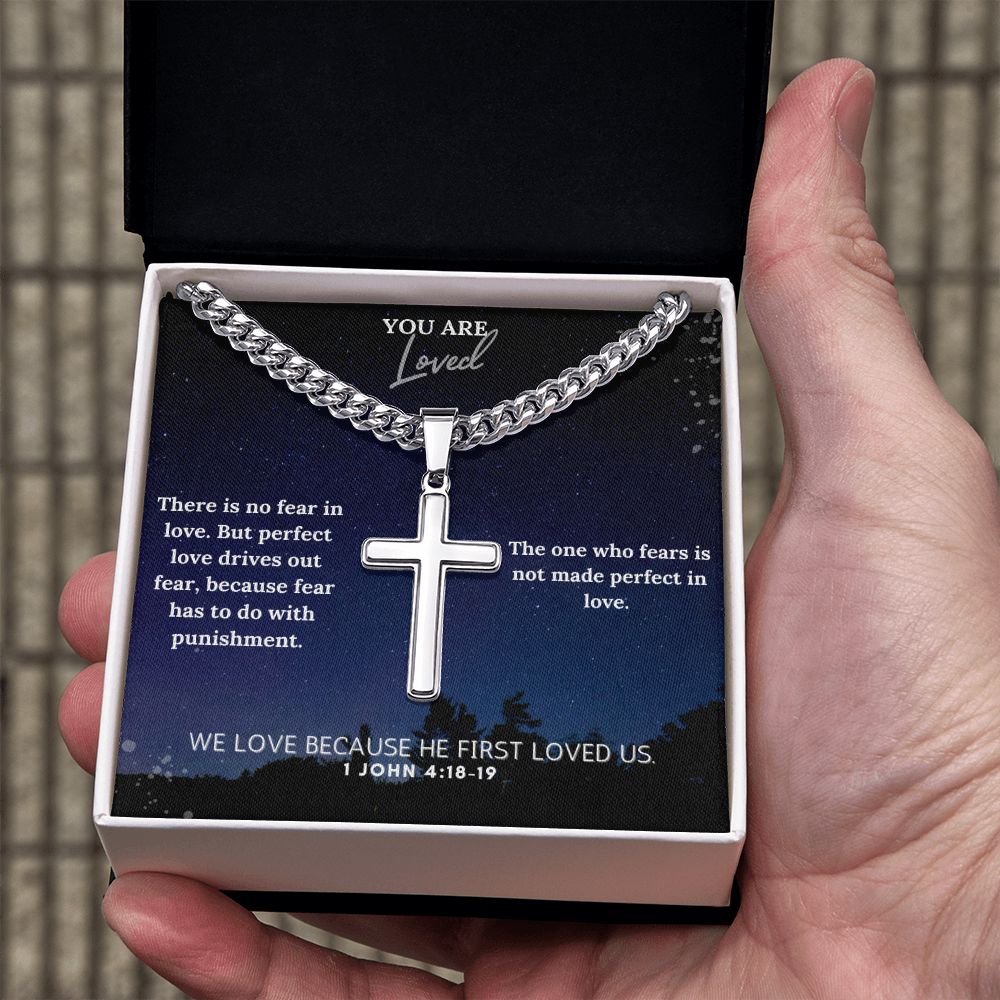 You are Loved | The one who fears is not made perfect in love. - Cuban Chain with Artisan Cross Necklace
