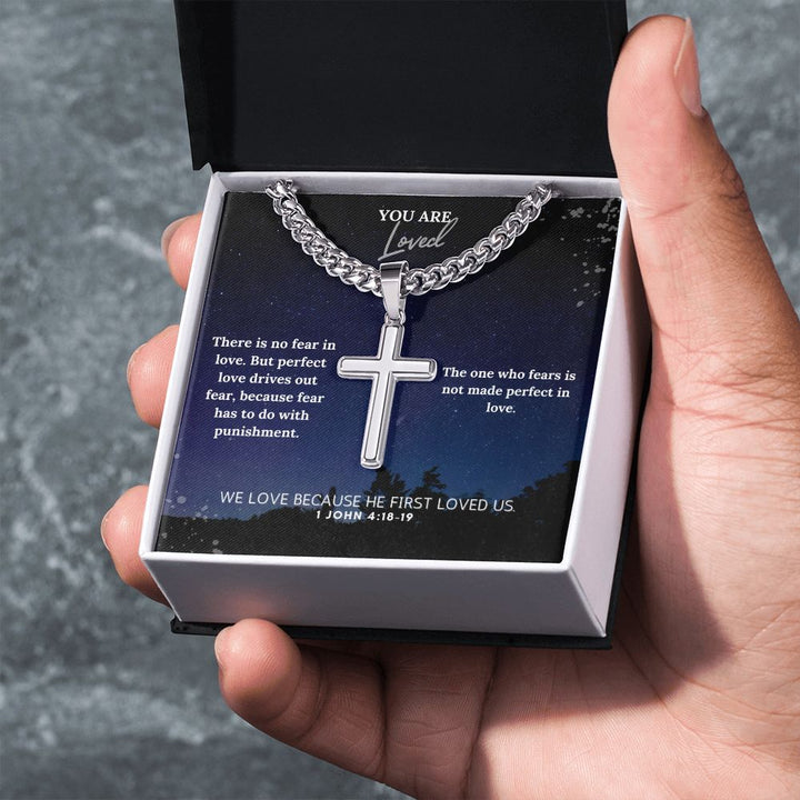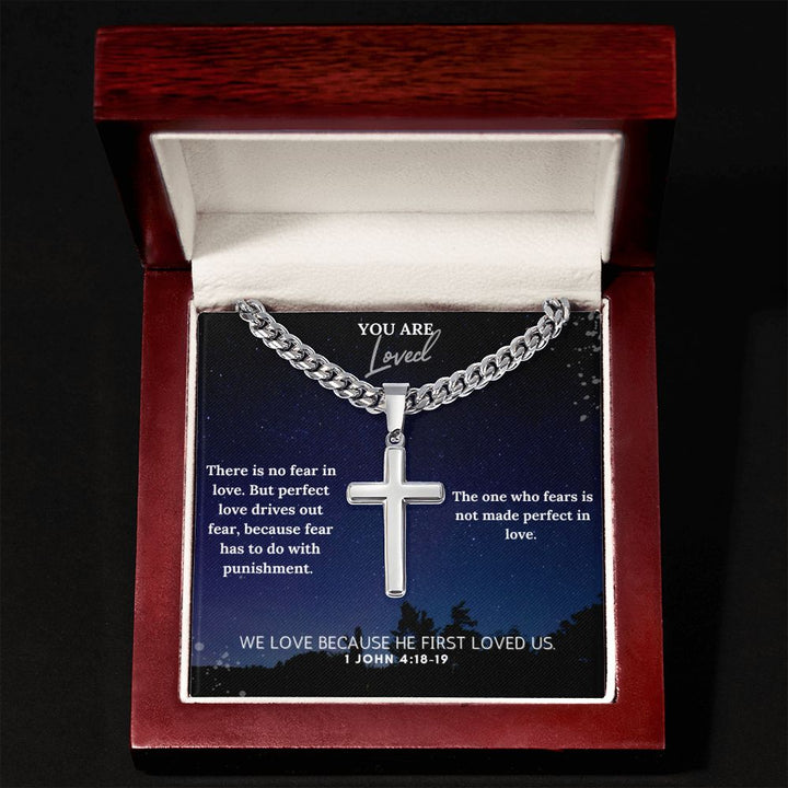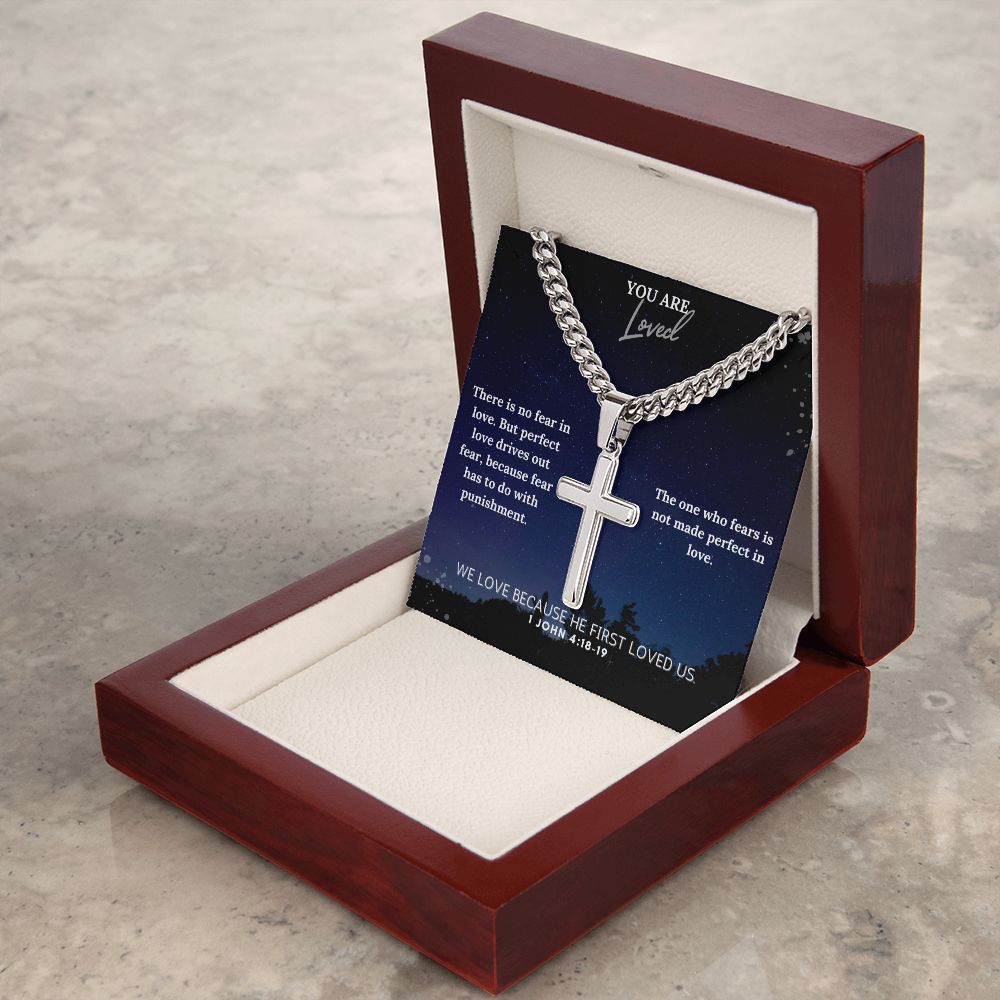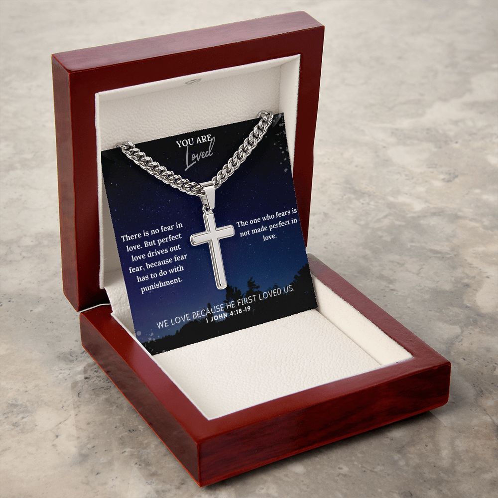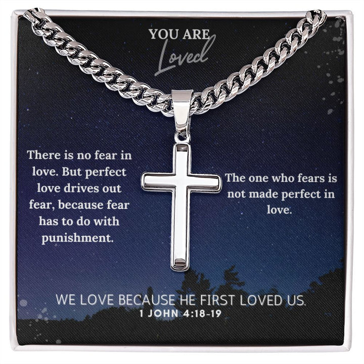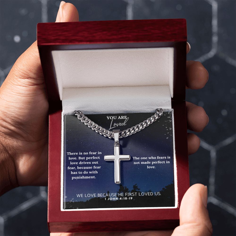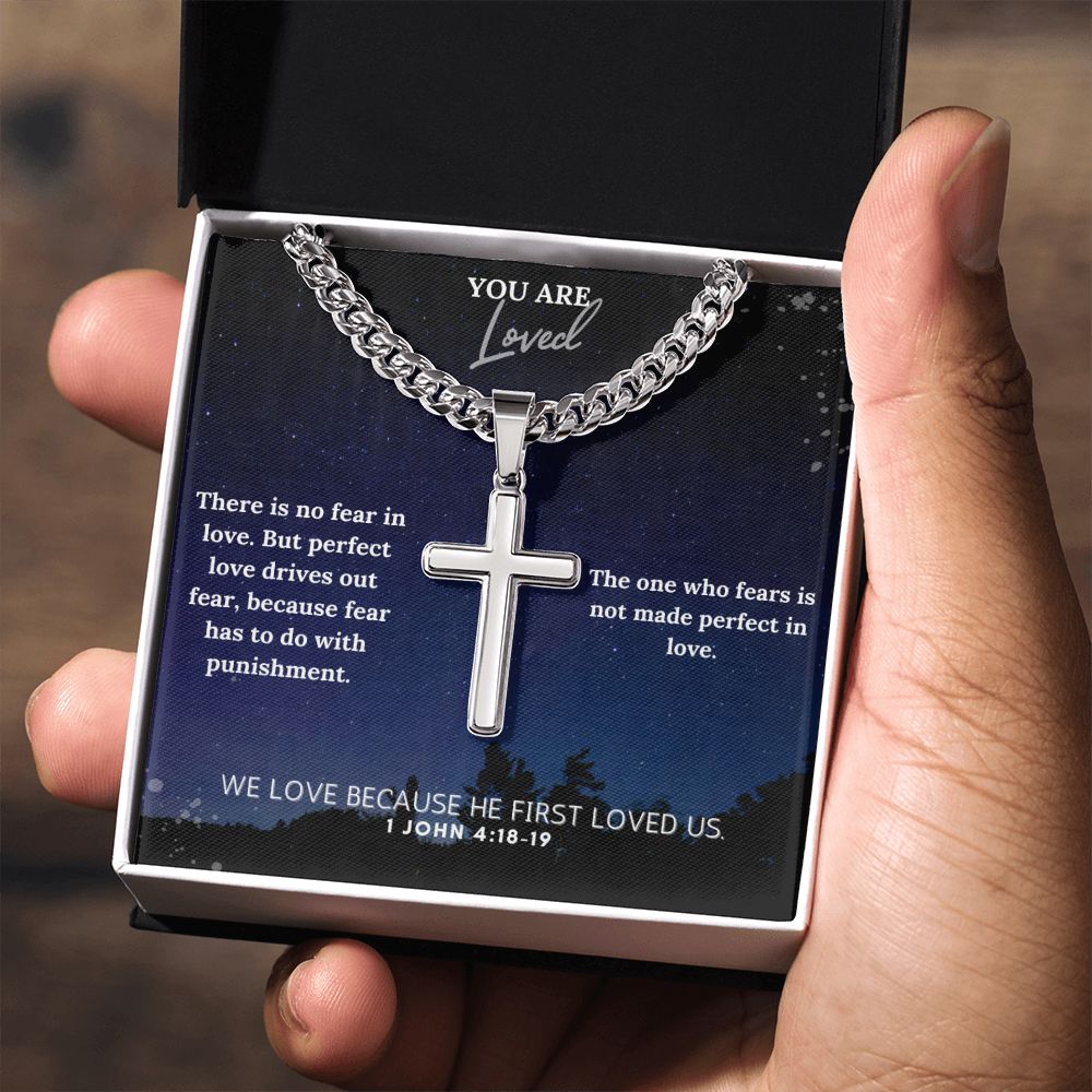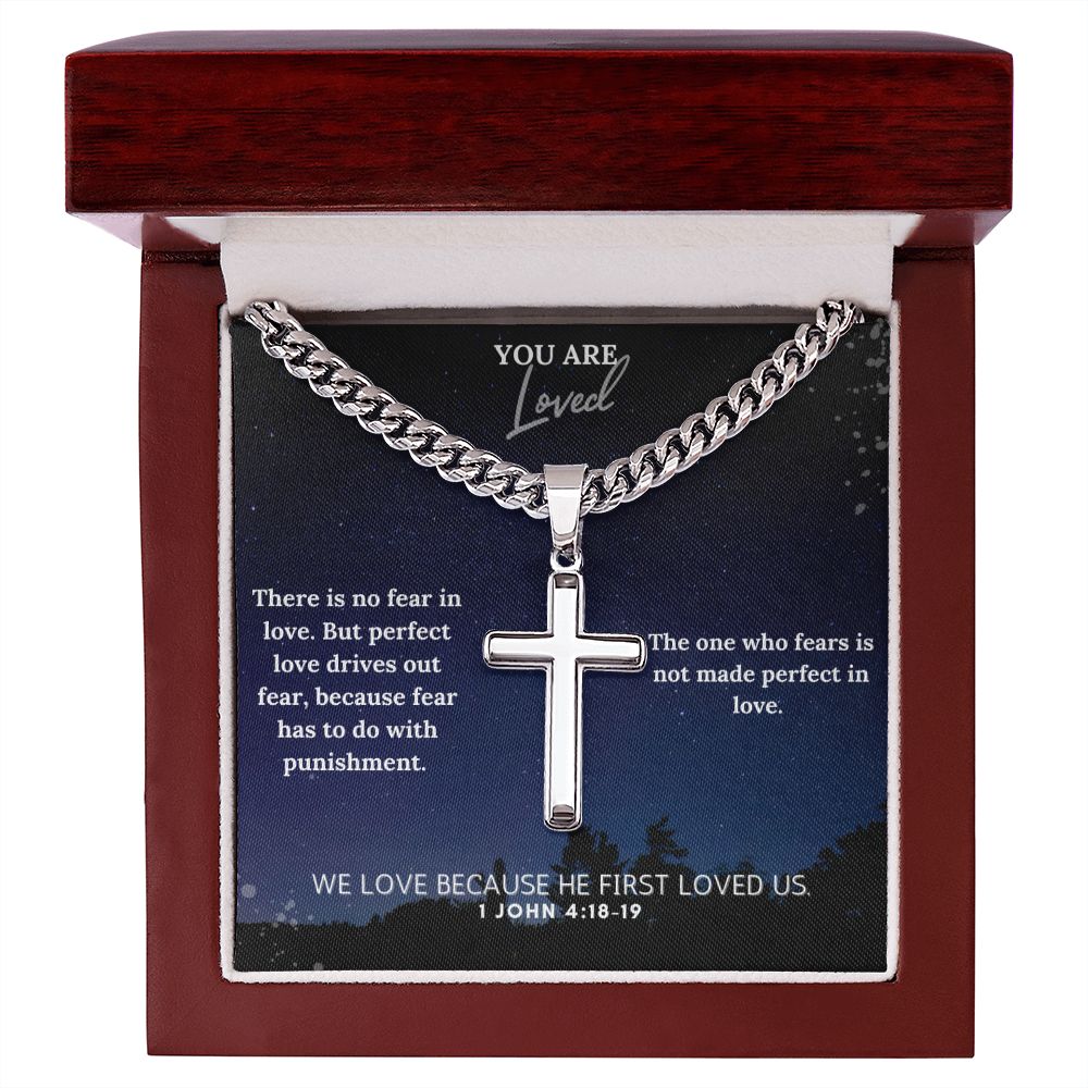 You are Loved | The one who fears is not made perfect in love. - Cuban Chain with Artisan Cross Necklace