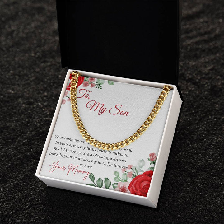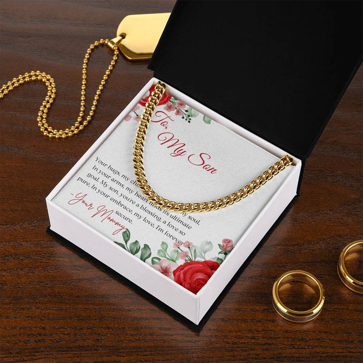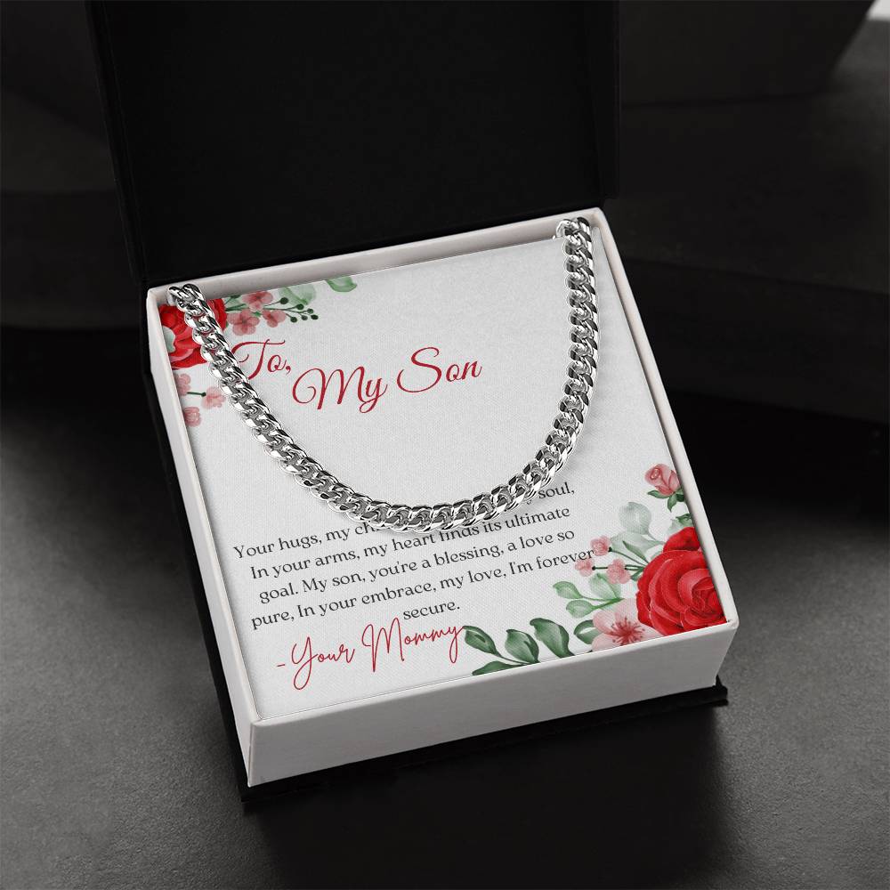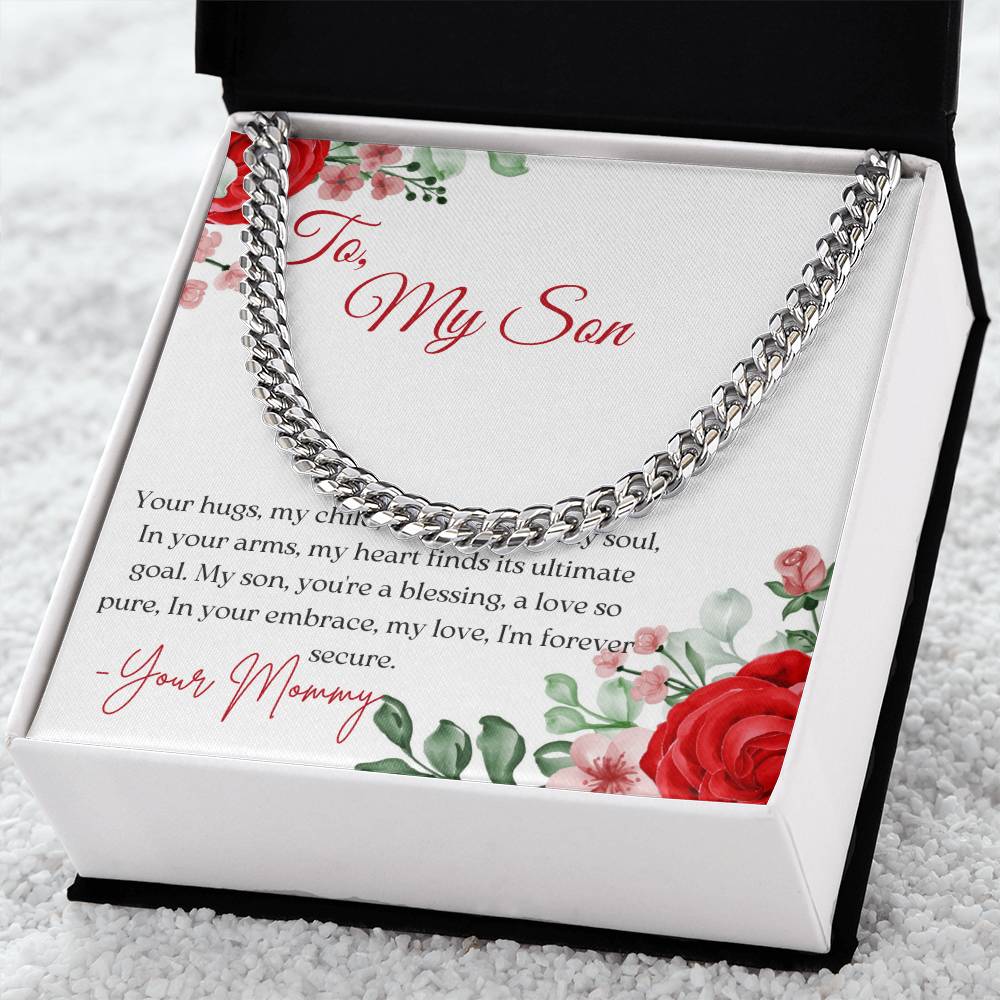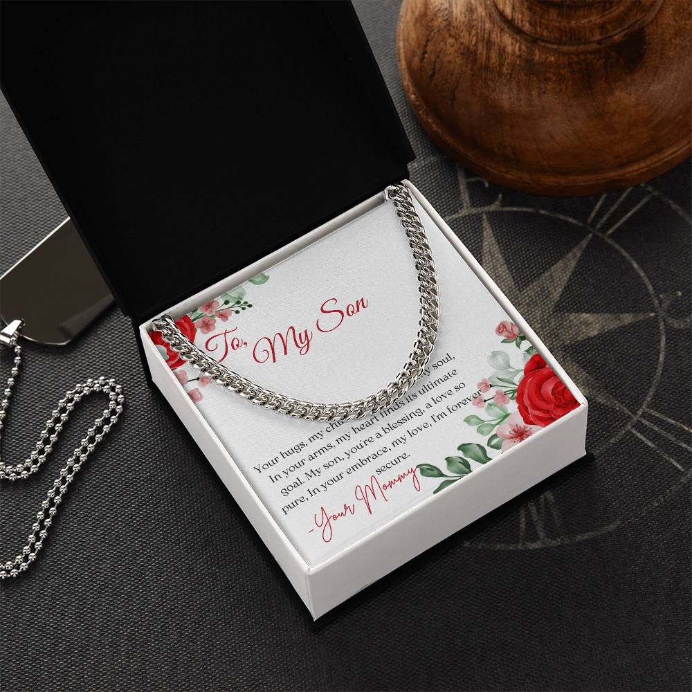 To My Son | Your hugs, my child, are a balm to my soul, In your arms, my heart finds its ultimate goal - Cuban Link Chain