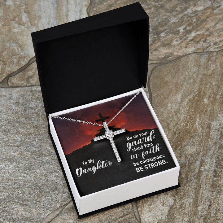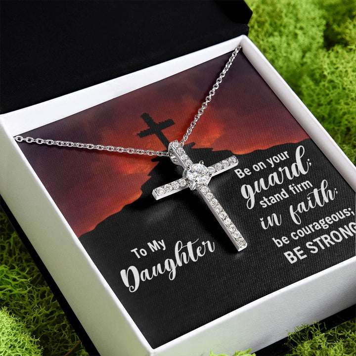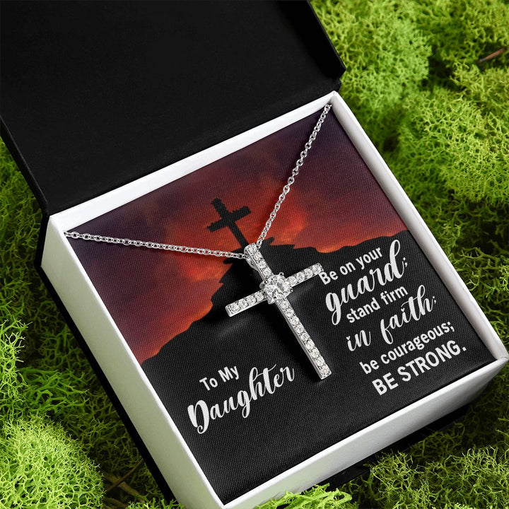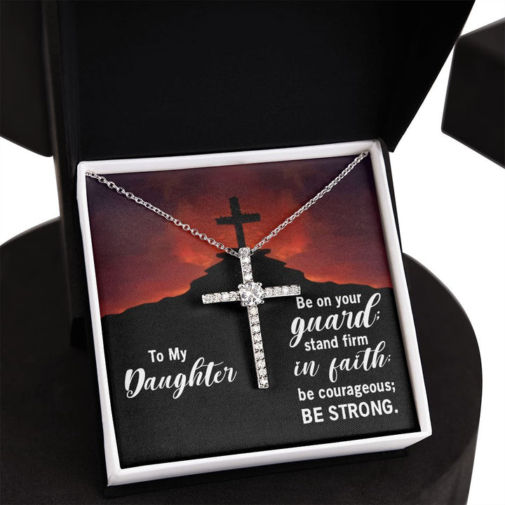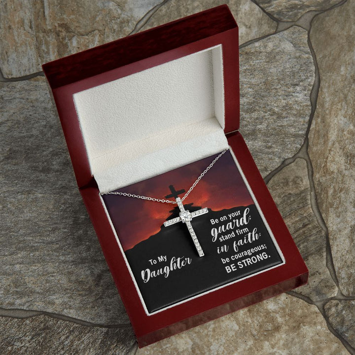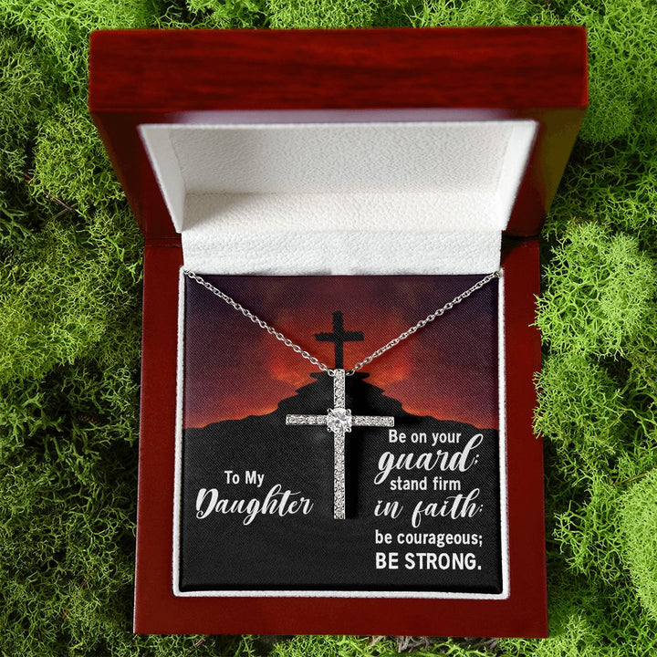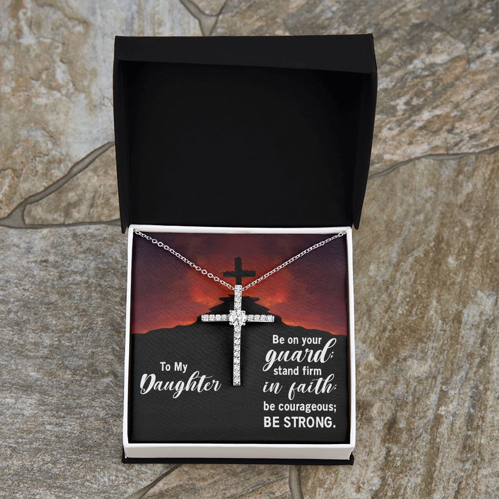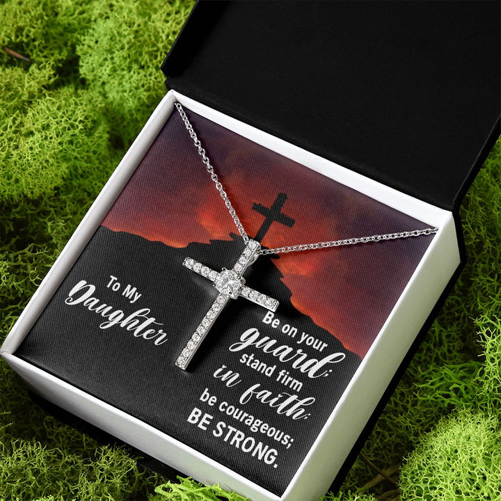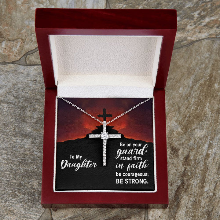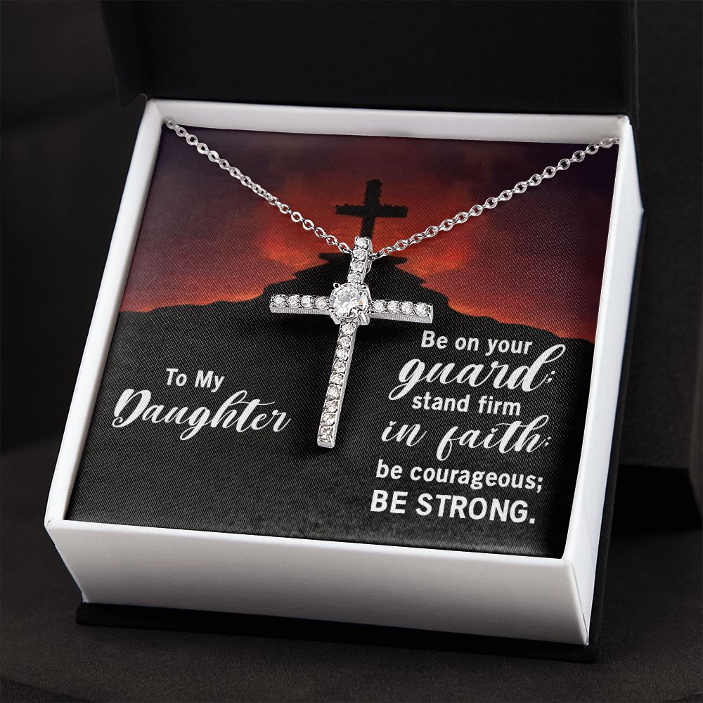 To My Daughter | Be on your guard; stand firm in Faith; be courageous; Be strong. - CZ Cross Necklace