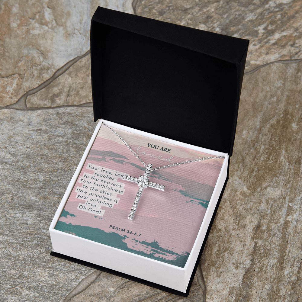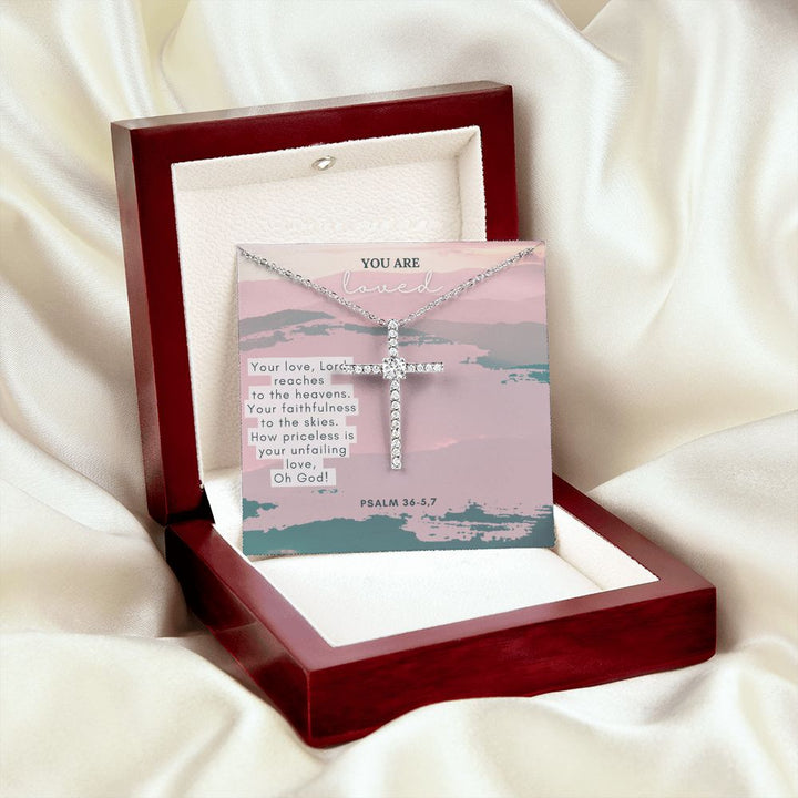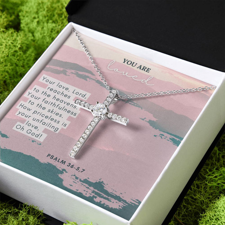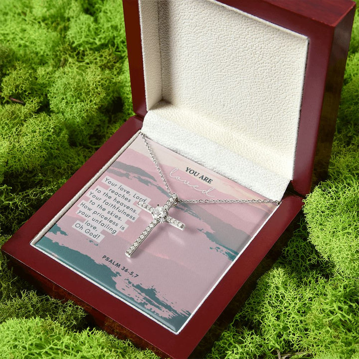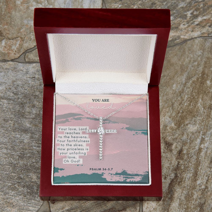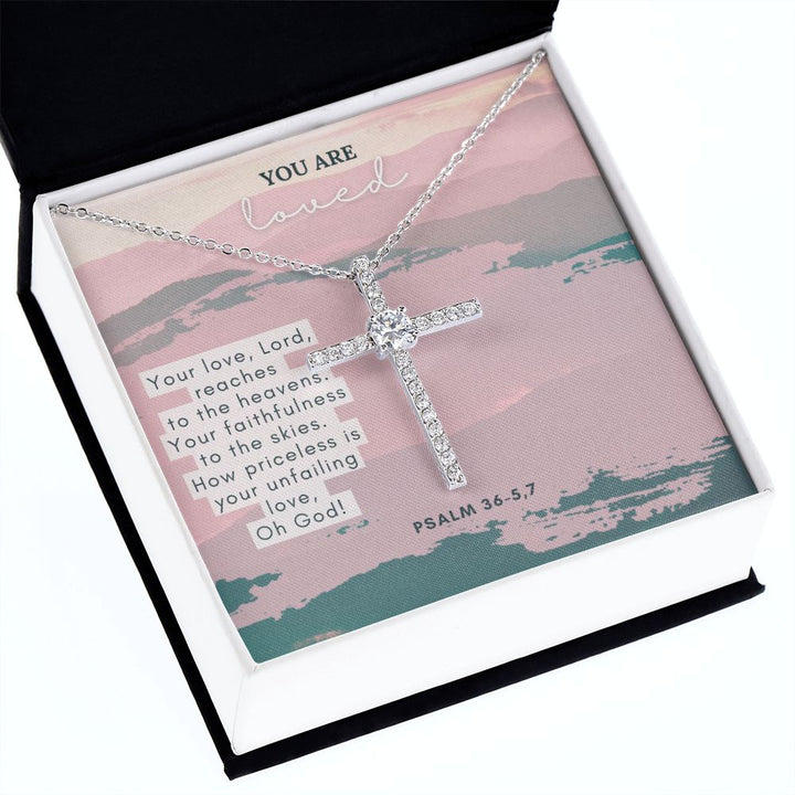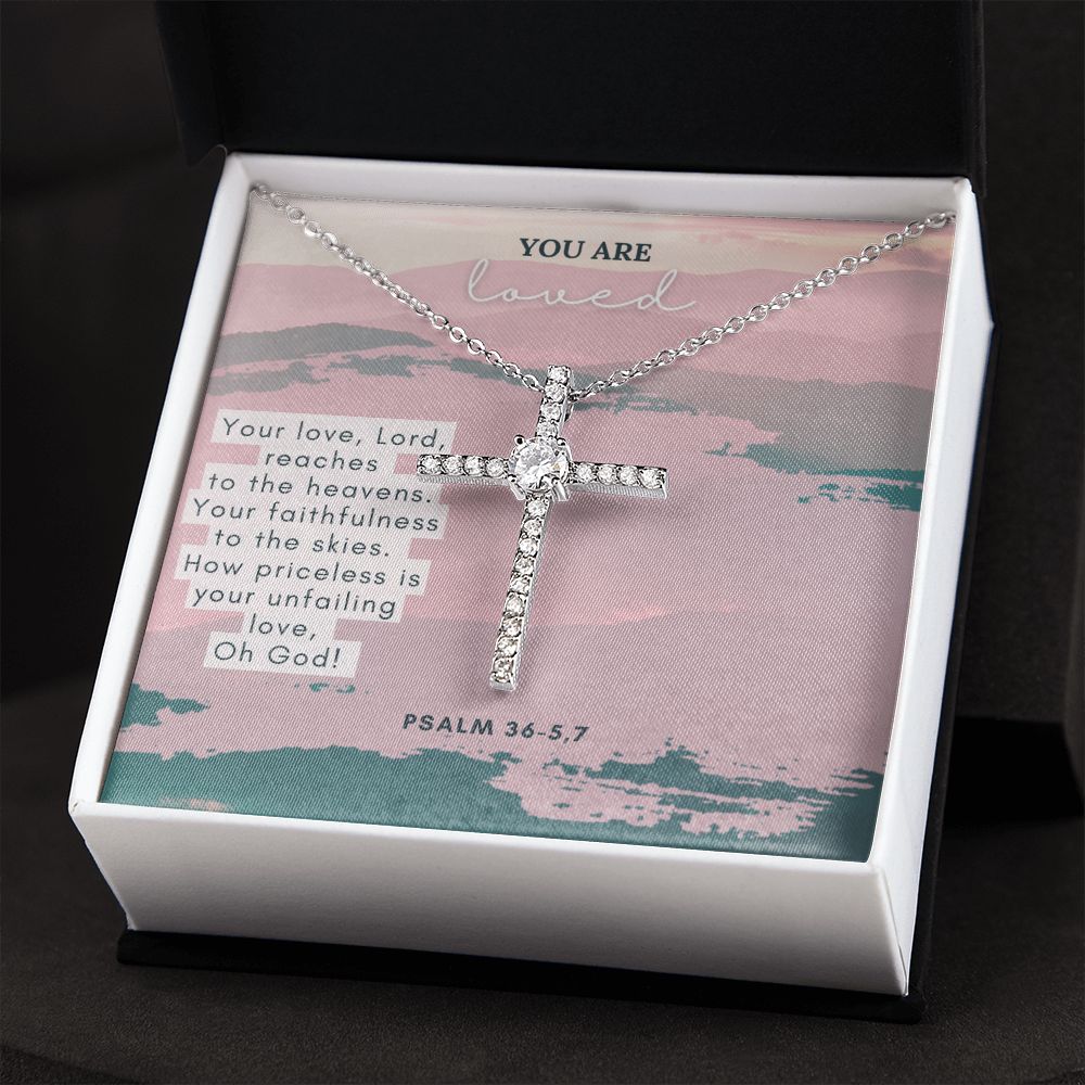 You are Loved | Your Love, Lord reaches to the heavens. Your faithfulness to the skies. How priceless is your unfailing love, Oh God! Psalm 36-5,7 - CZ Cross Necklace