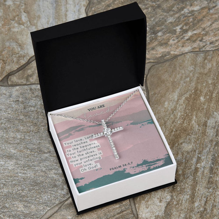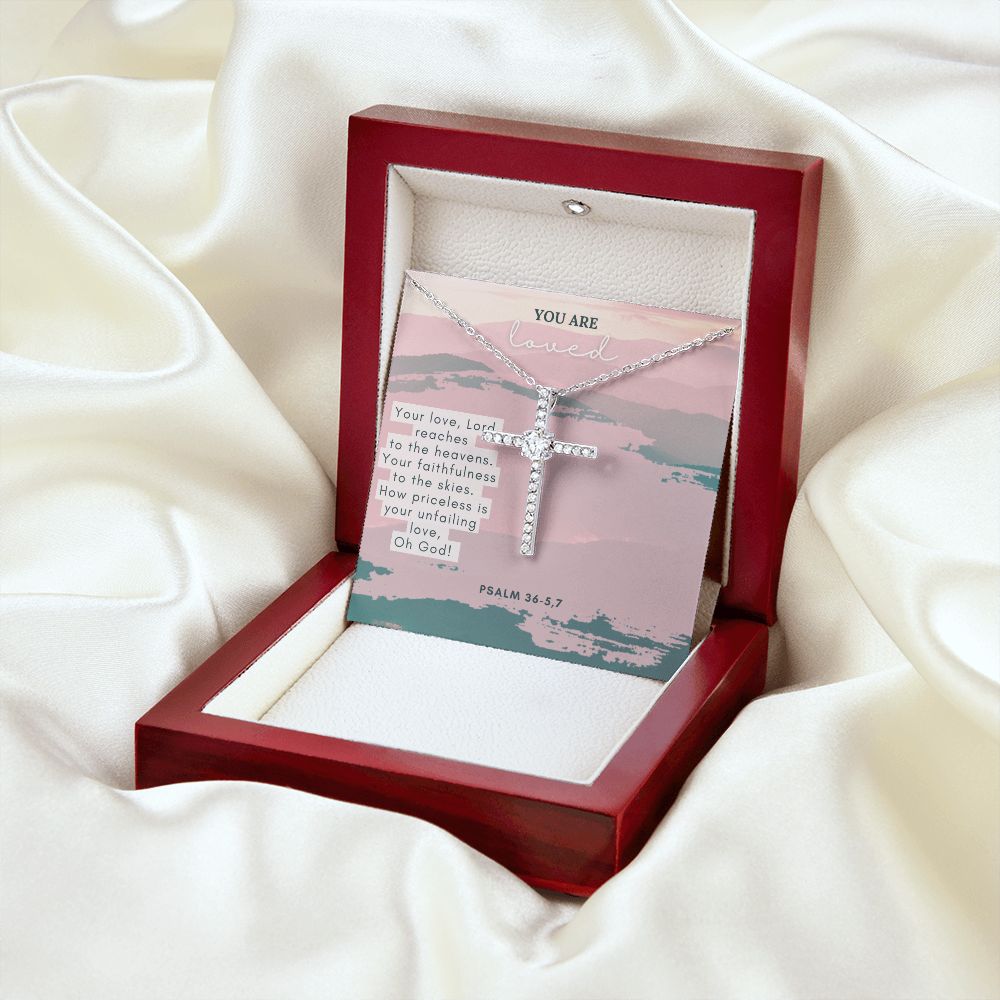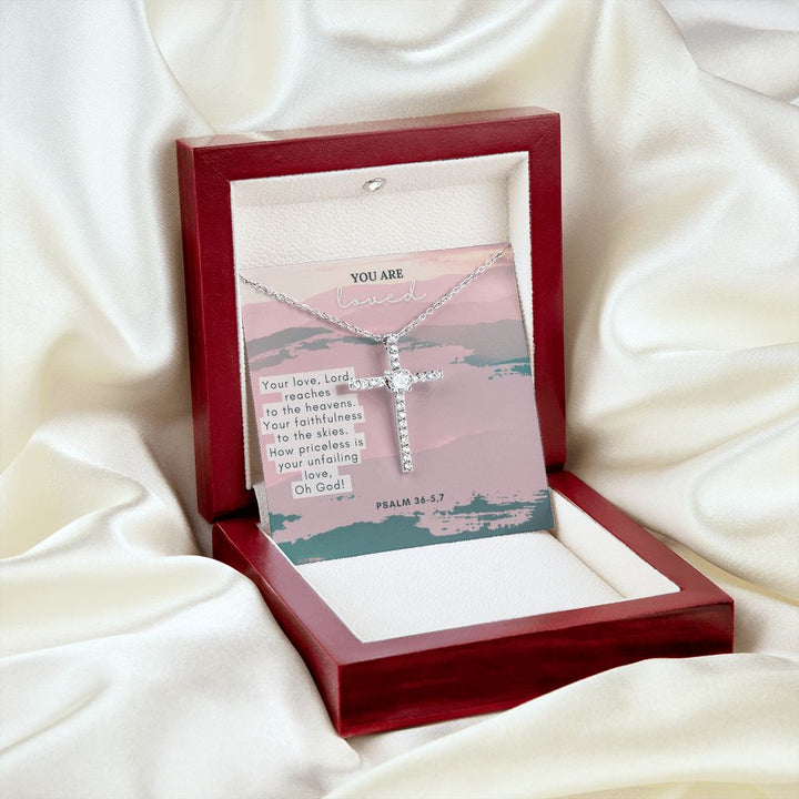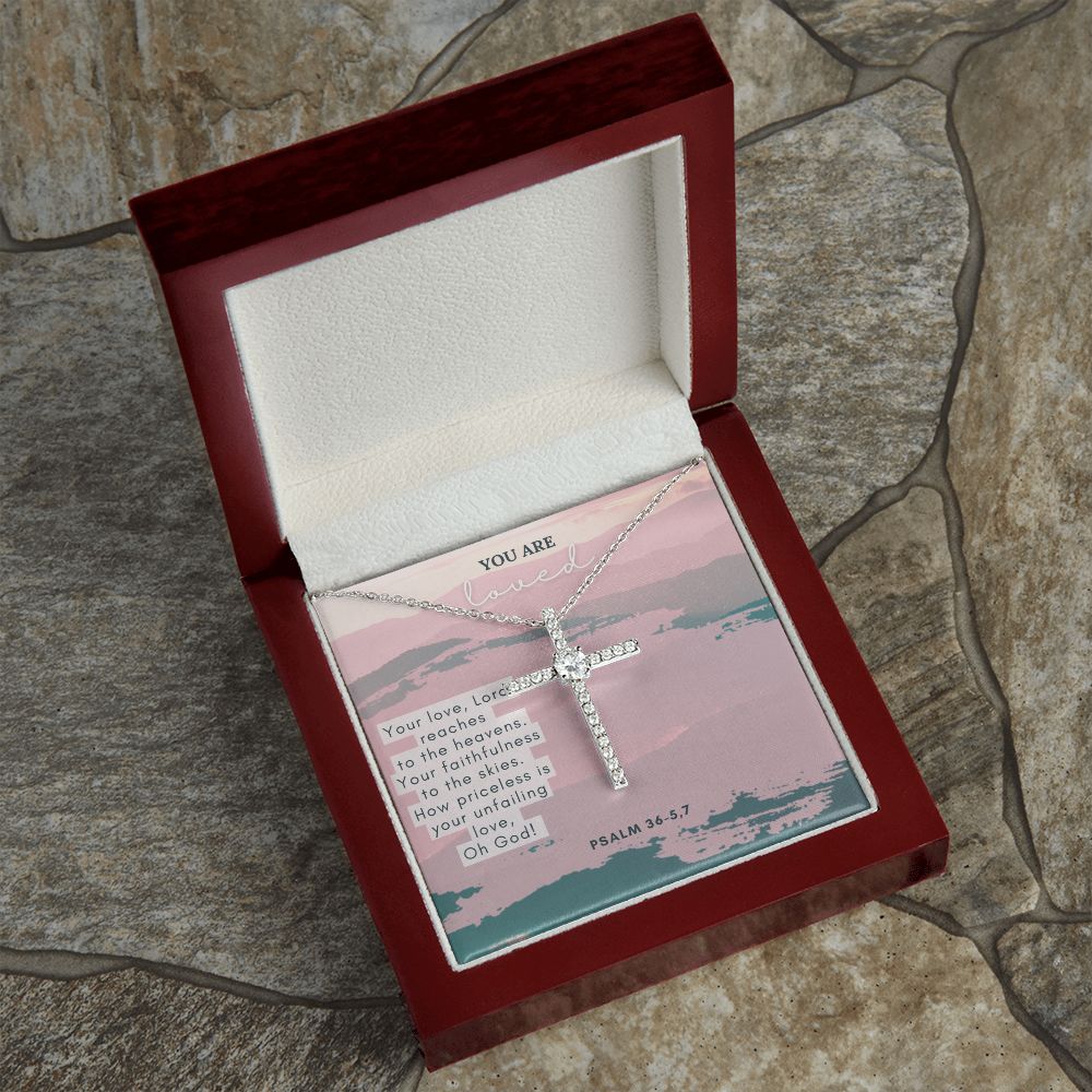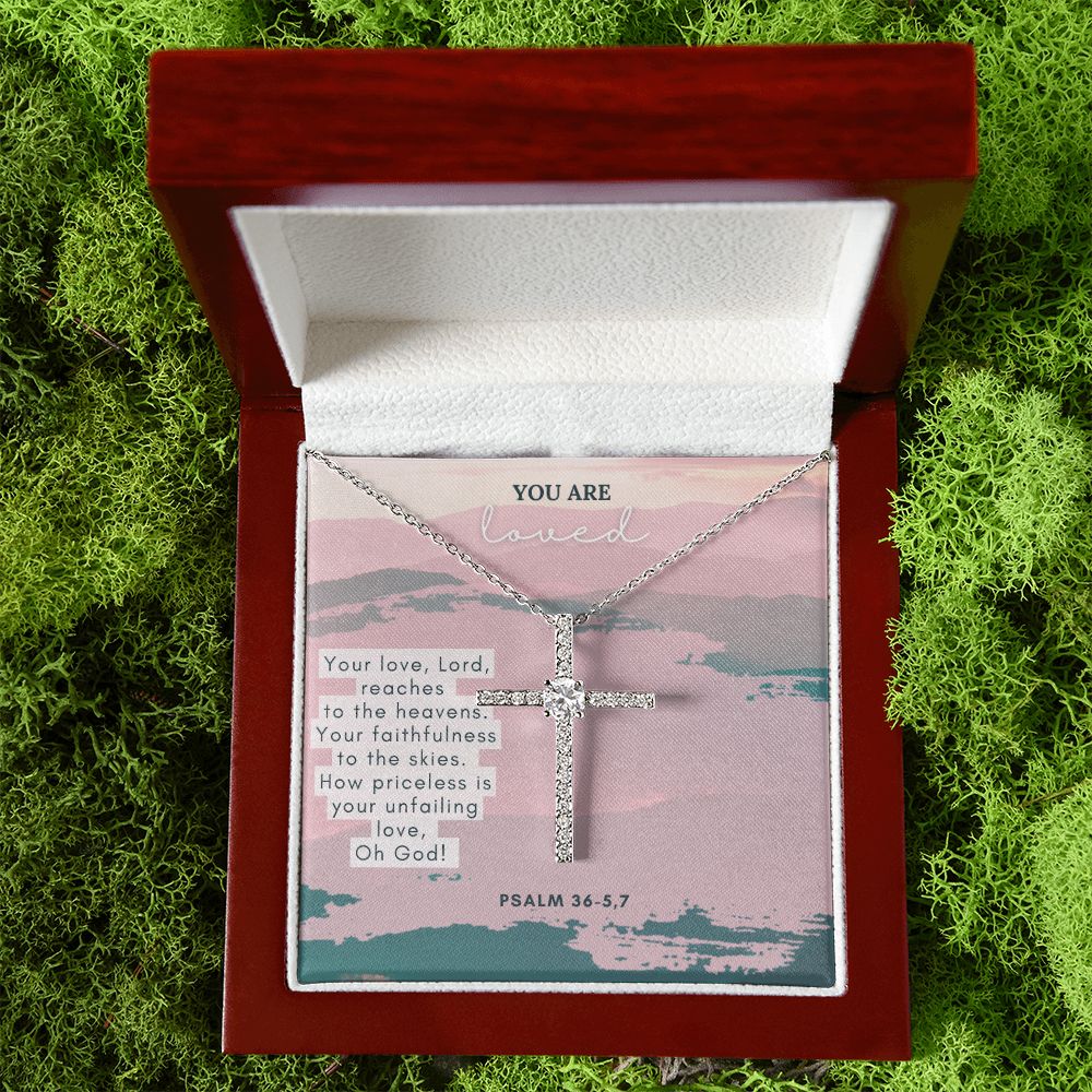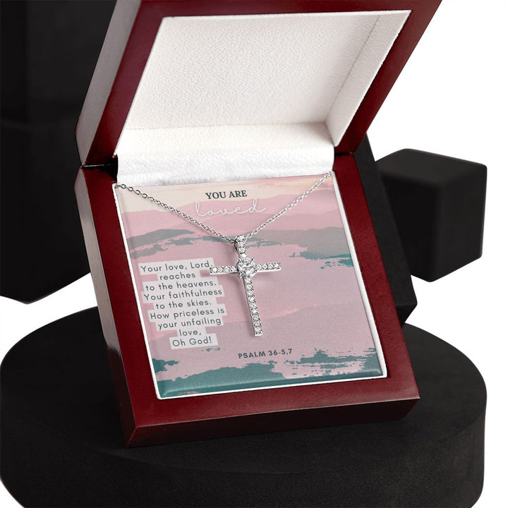 You are Loved | Your Love, Lord reaches to the heavens. Your faithfulness to the skies. How priceless is your unfailing love, Oh God! Psalm 36-5,7 - CZ Cross Necklace