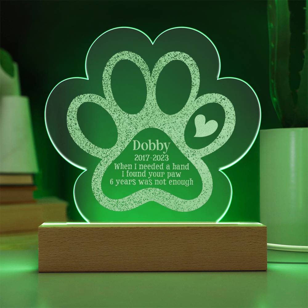 Dobby | When I needed a hand I found your Paw - Engraved Acrylic Paw with LED Base w/Cord