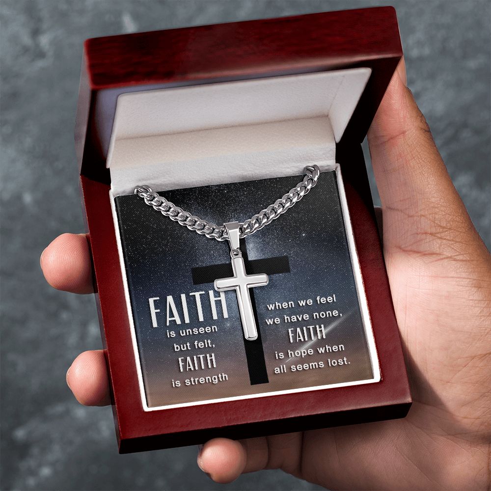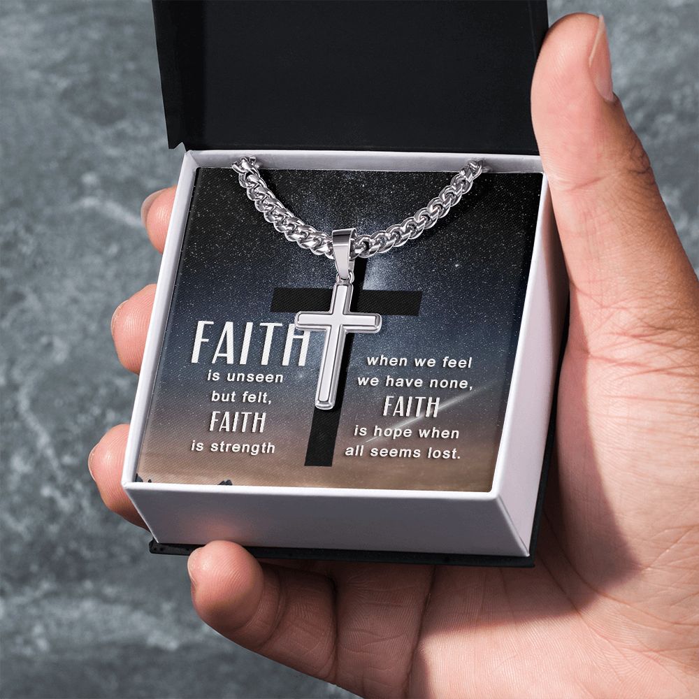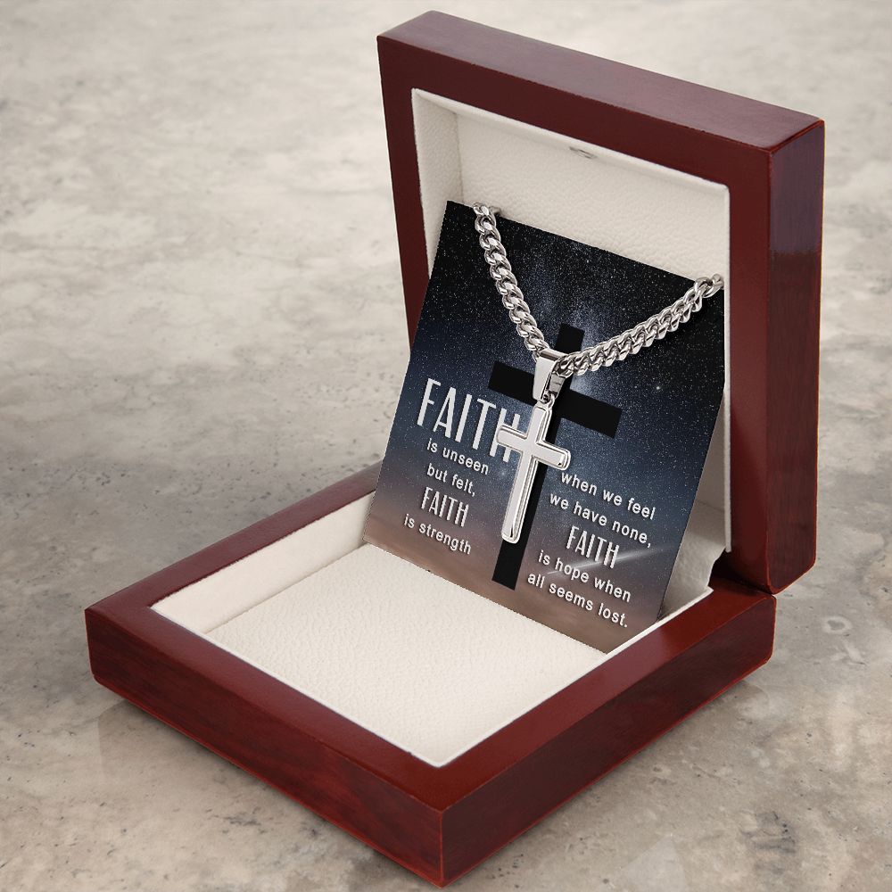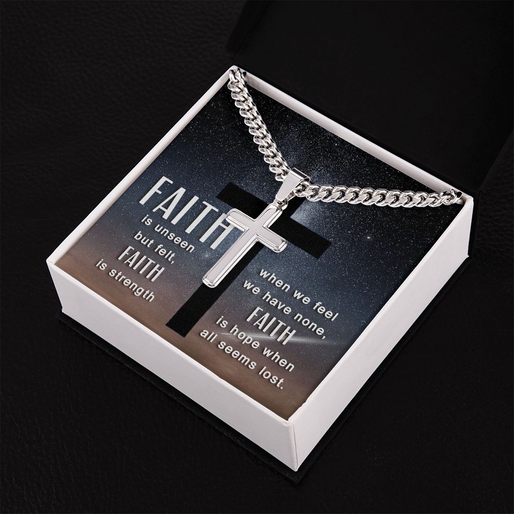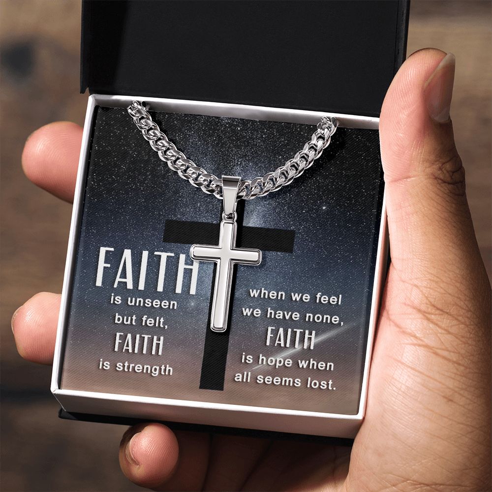 Faith is unseen but felt, Faith is strength when we fee we have non, Faith is hope when all seems lost. - Cuban Chain with Artisan Cross Necklace