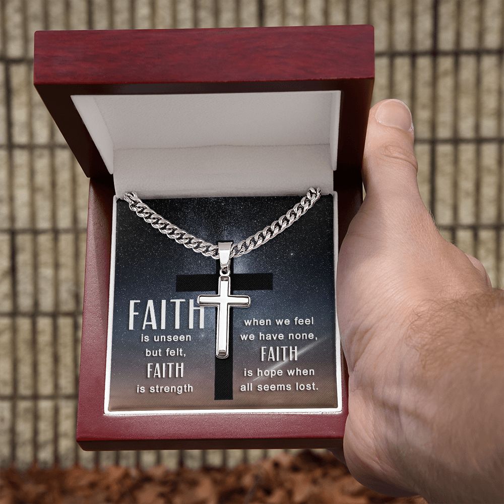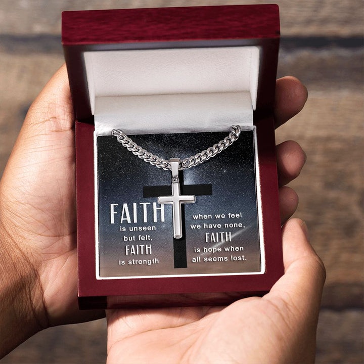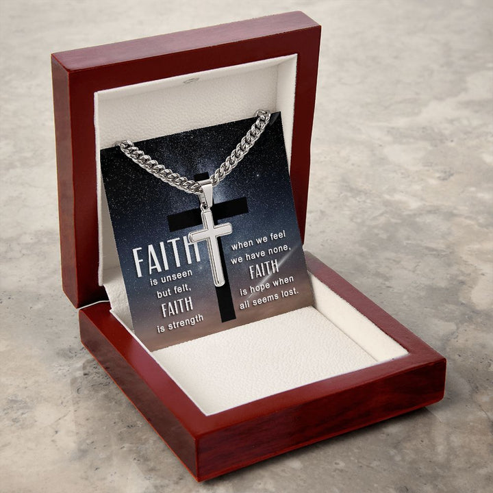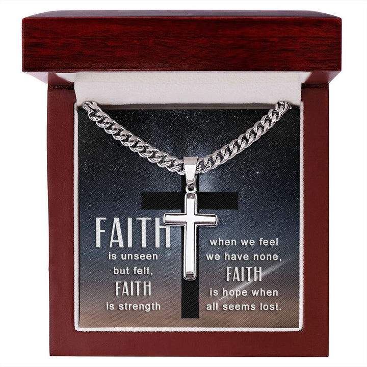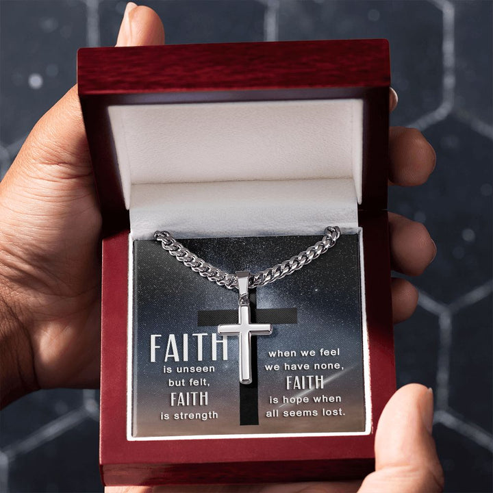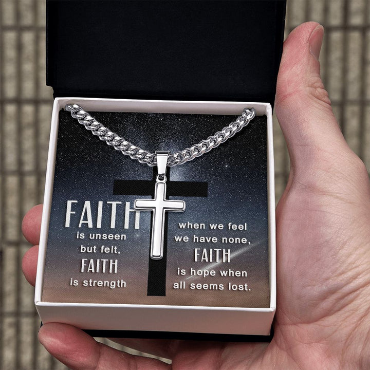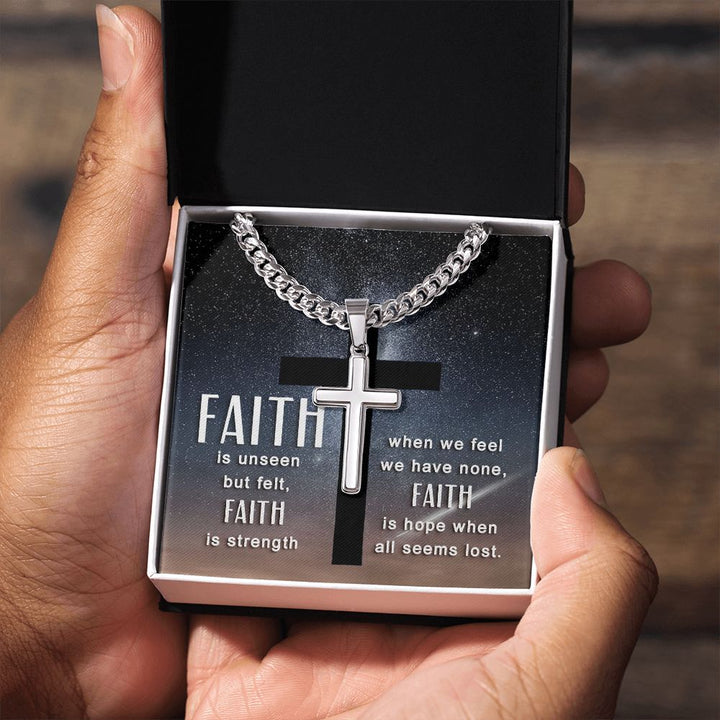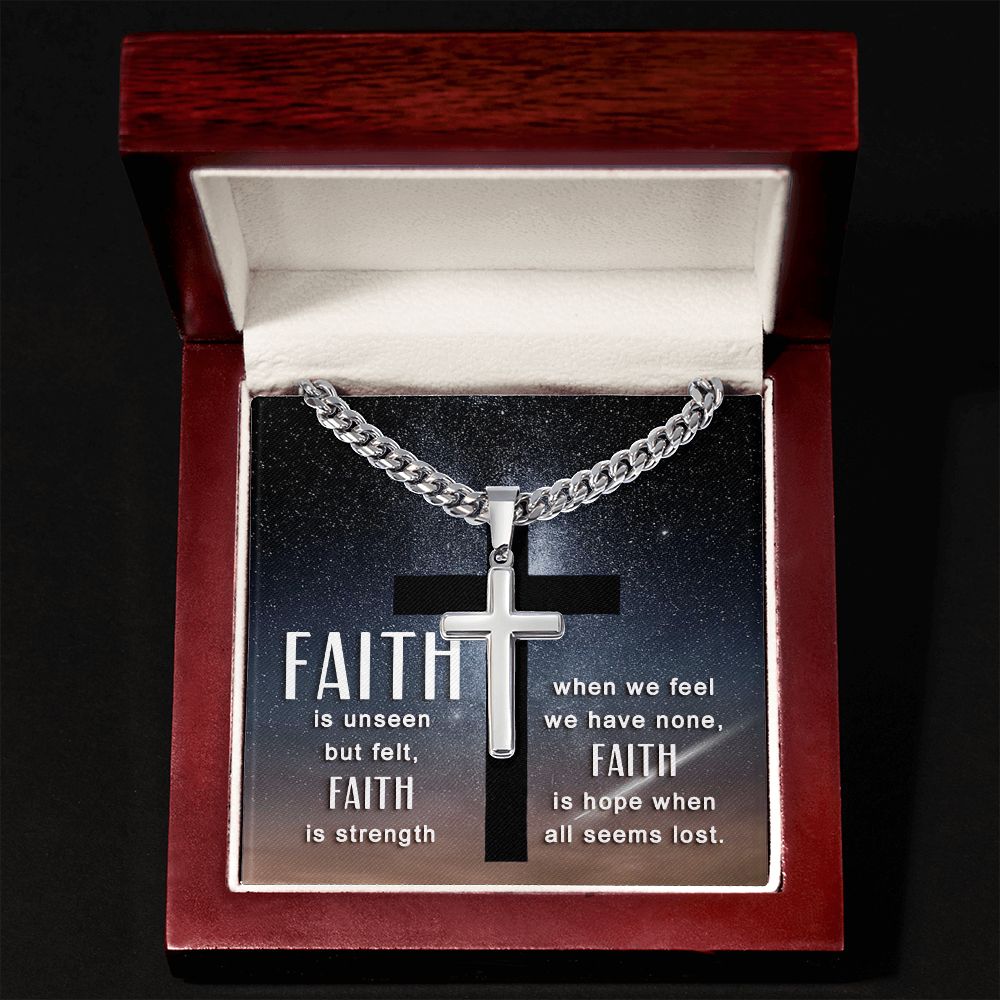 Faith is unseen but felt, Faith is strength when we fee we have non, Faith is hope when all seems lost. - Cuban Chain with Artisan Cross Necklace