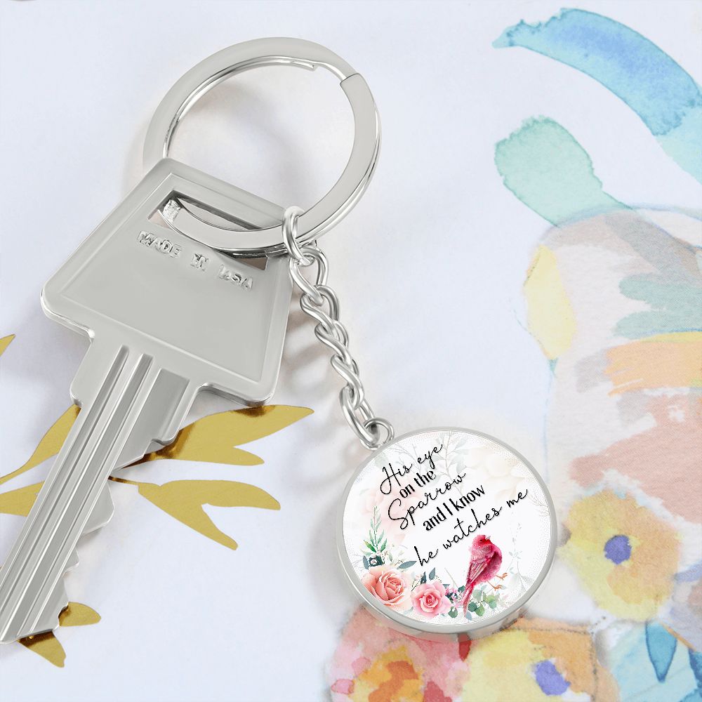 His eye on the Sparrow and I know He watches Me - Circle Keychain