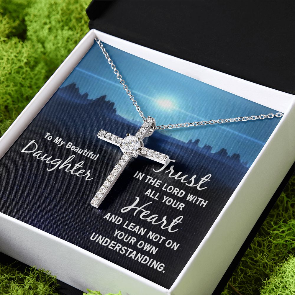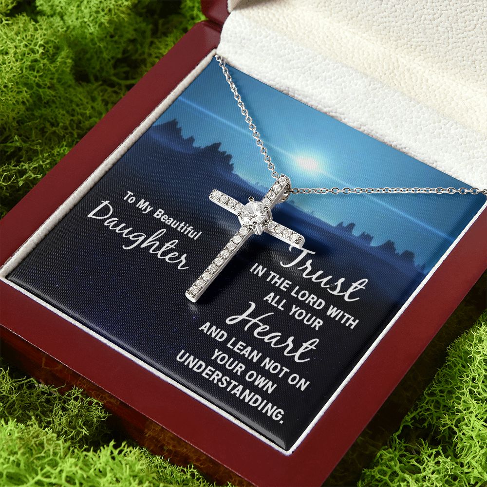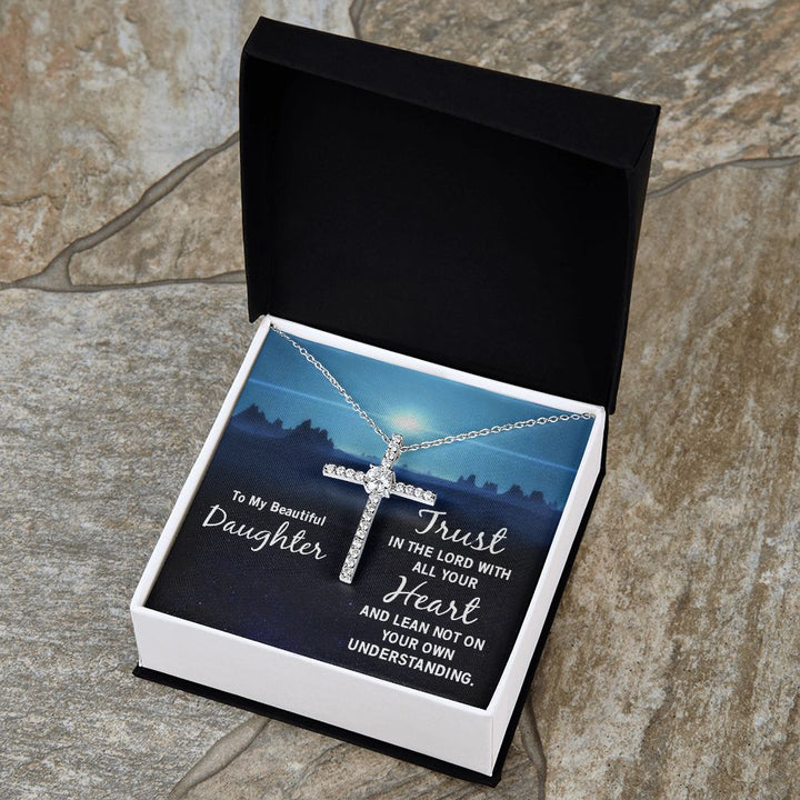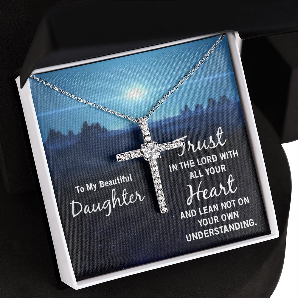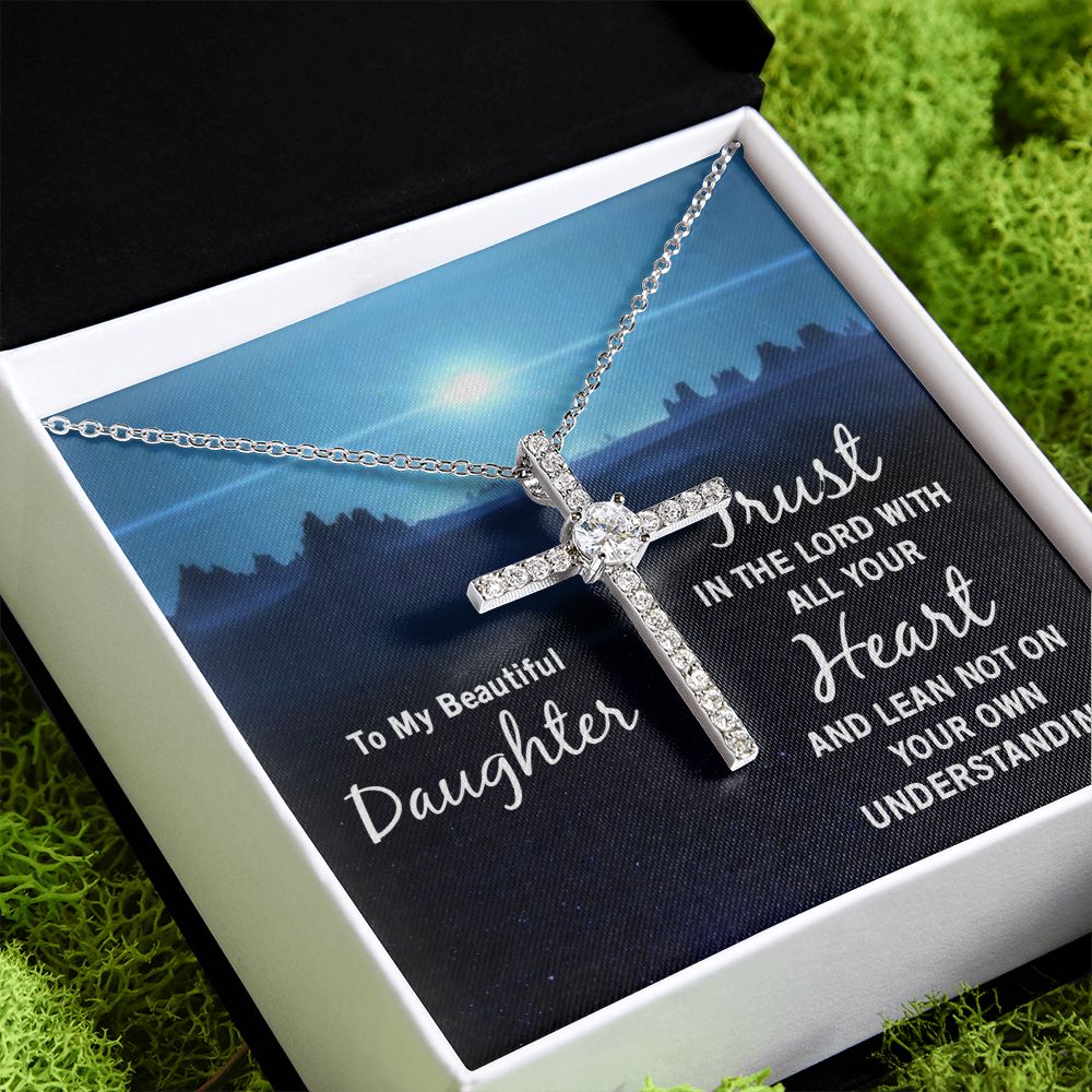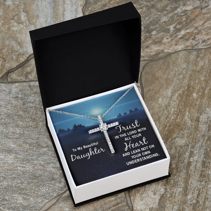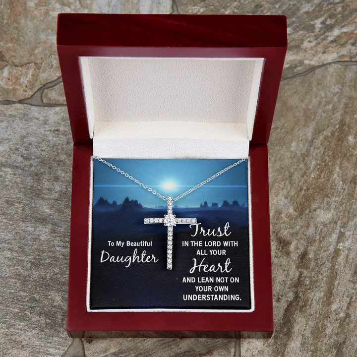 To My Beautiful Daughter | Trust in the Lord with all your Heart and lean not on your own understanding - CZ Cross Necklace