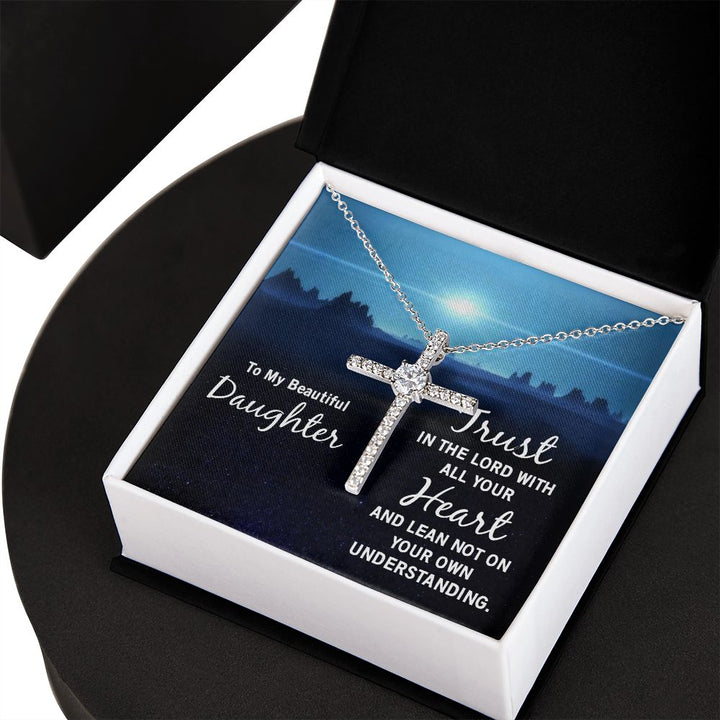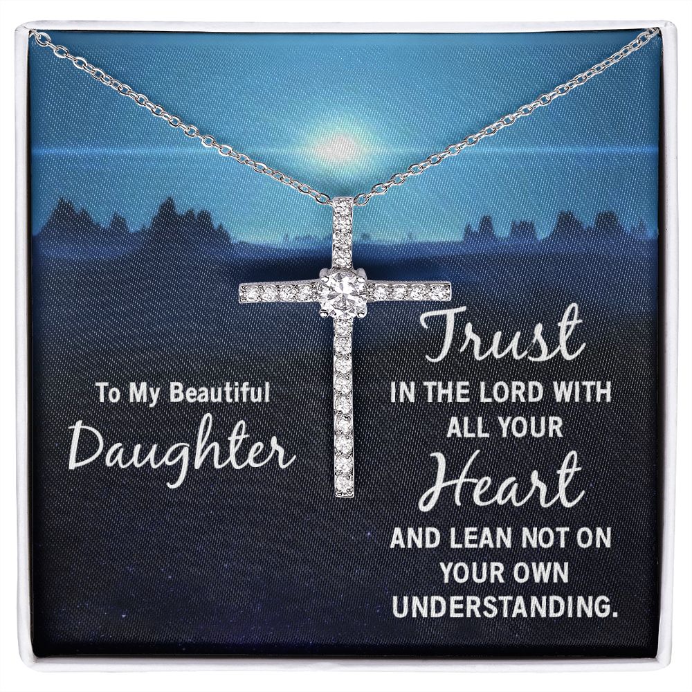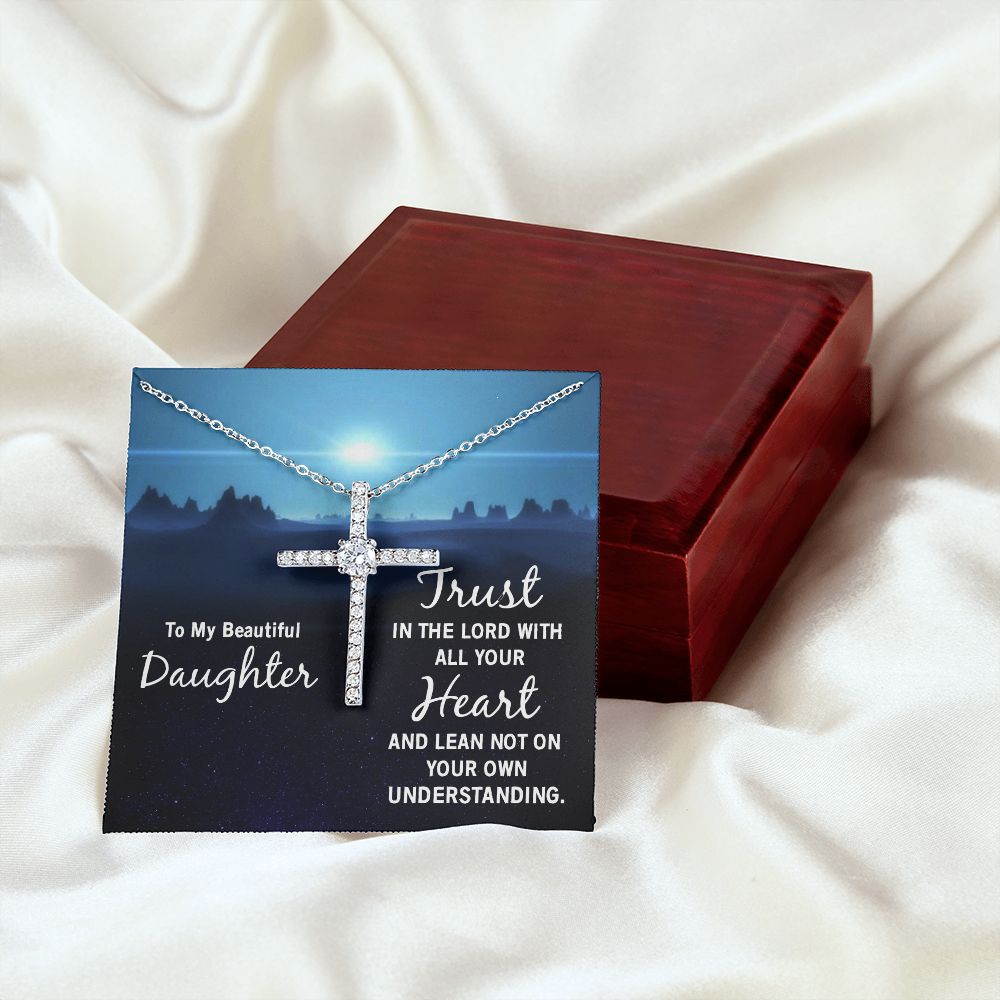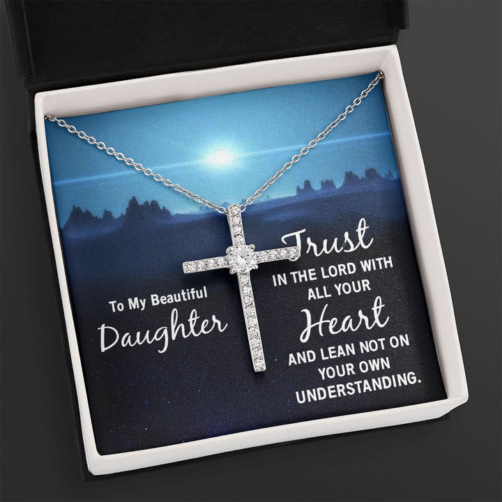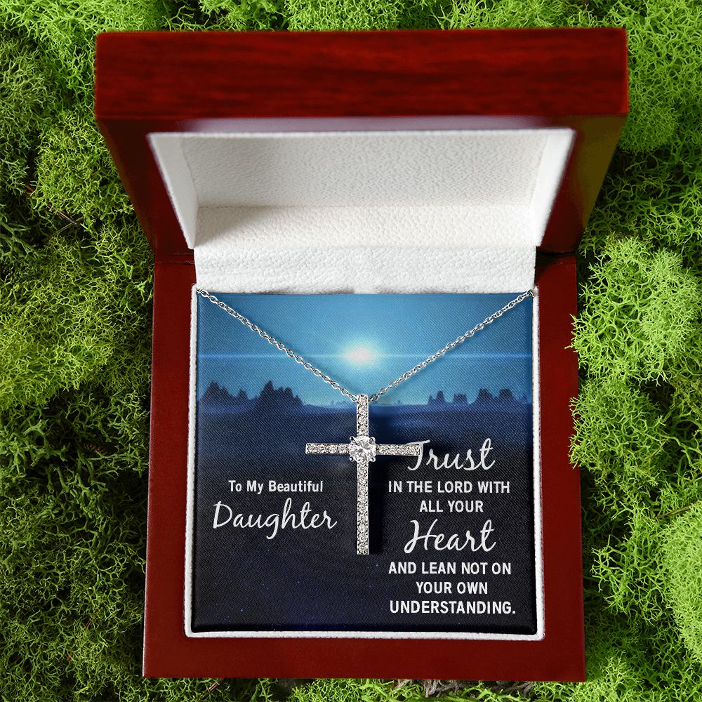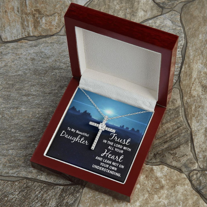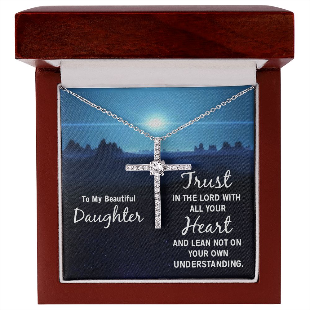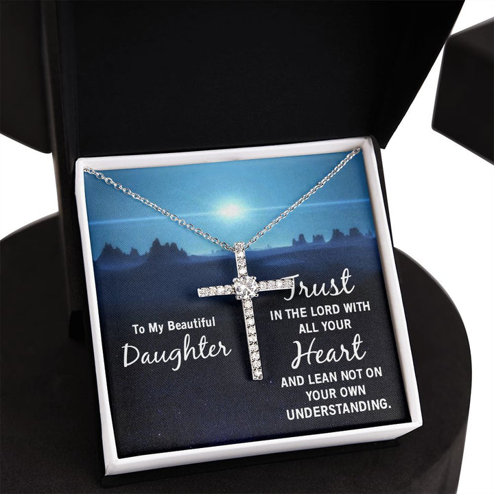 To My Beautiful Daughter | Trust in the Lord with all your Heart and lean not on your own understanding - CZ Cross Necklace