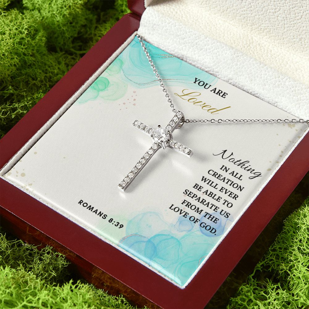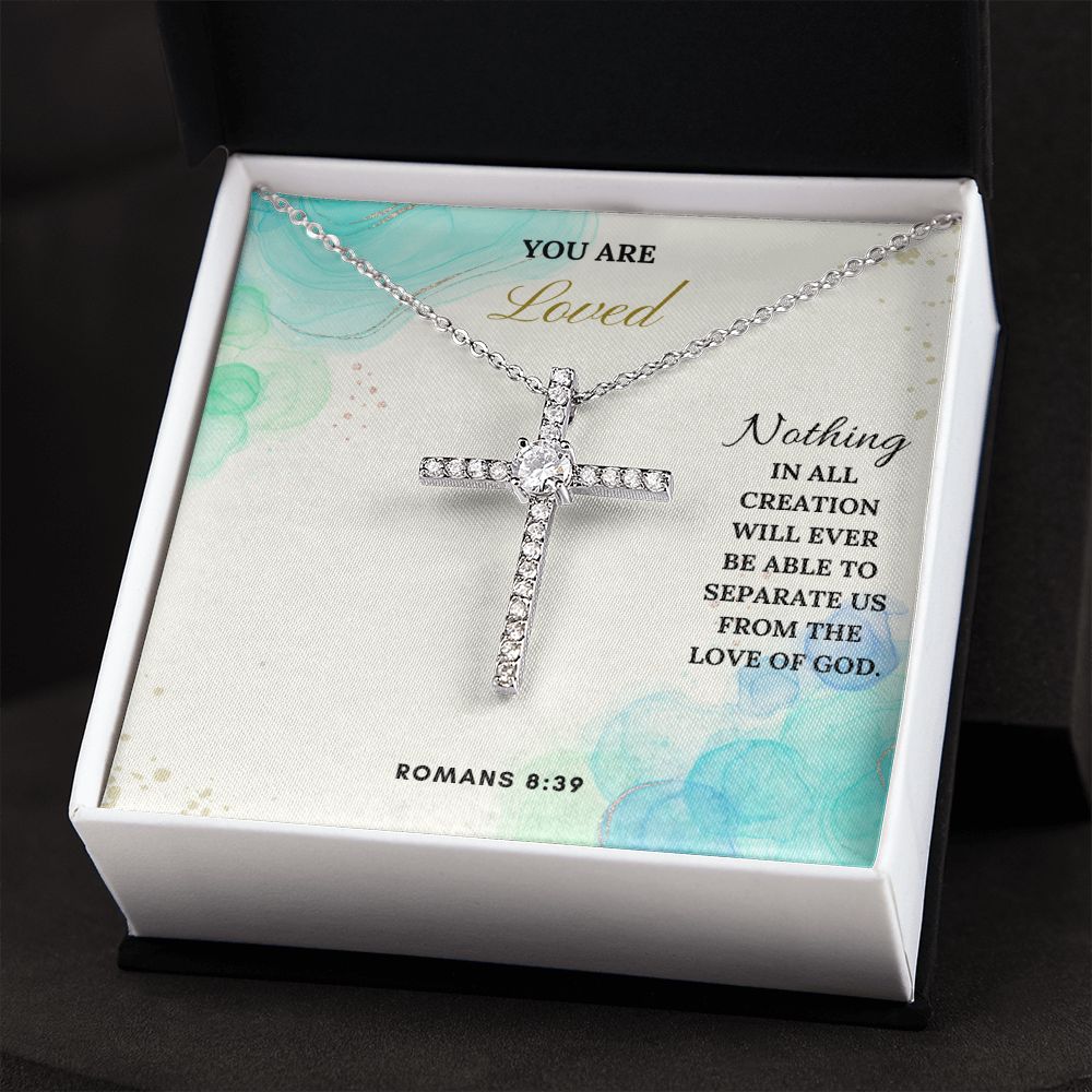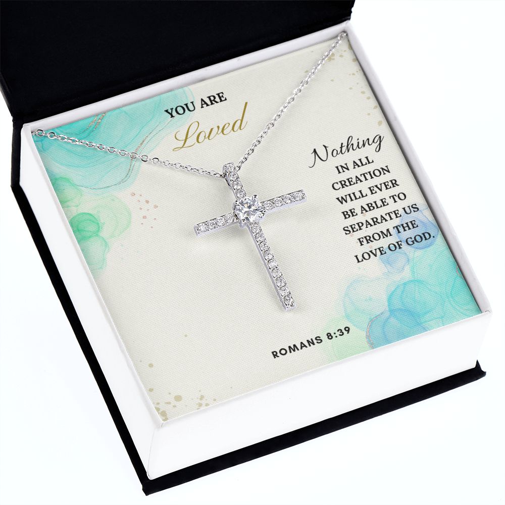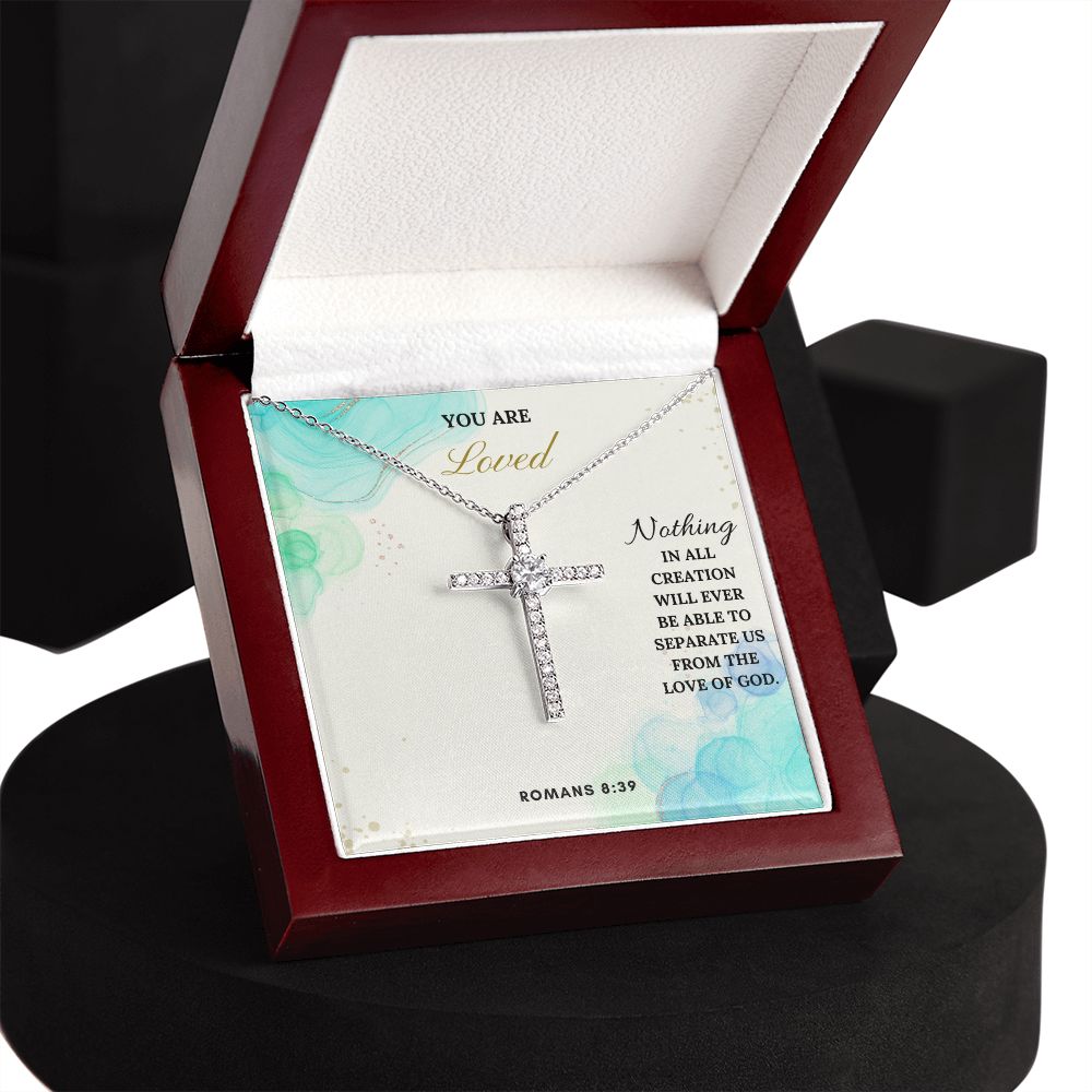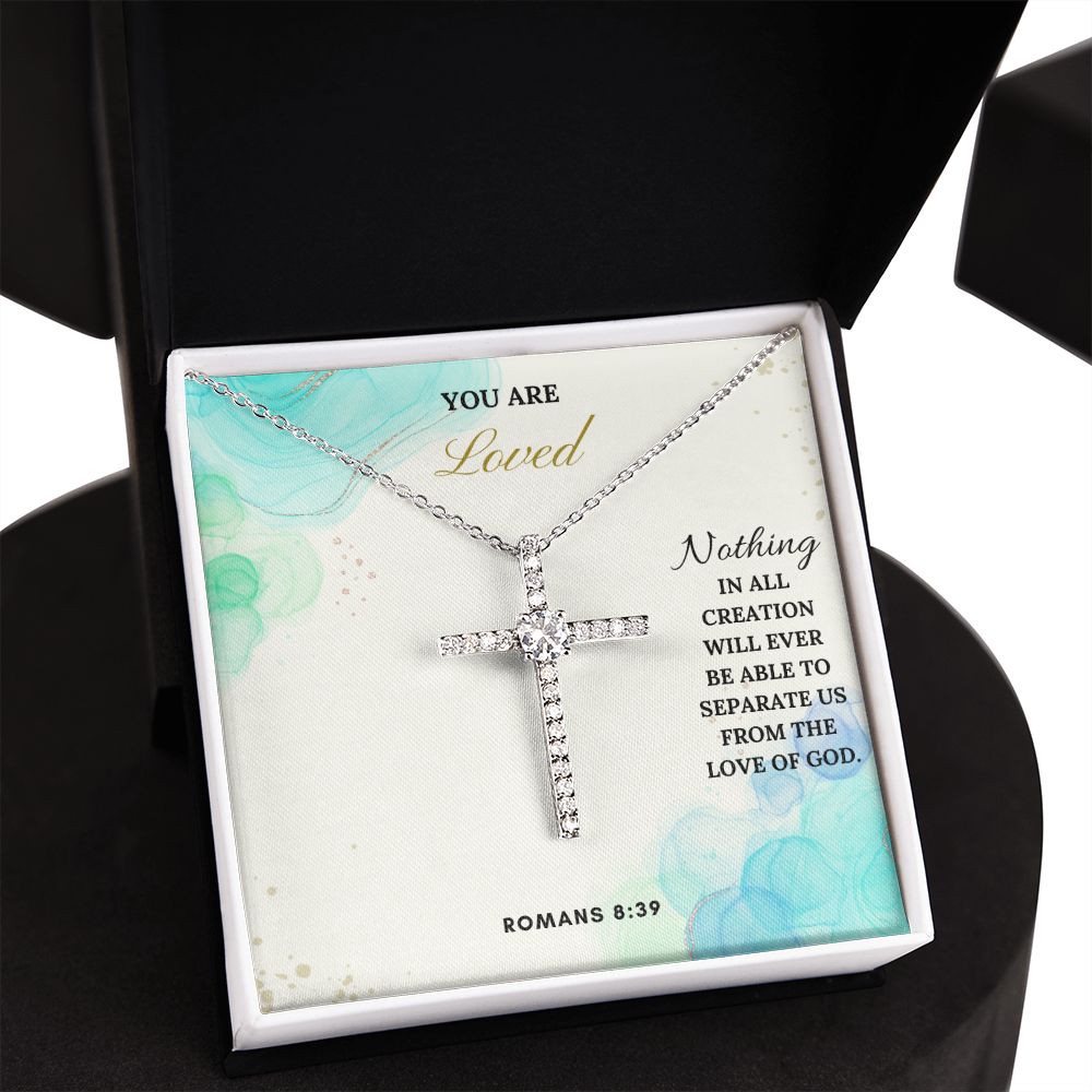 You are Loved | Nothing in all creation will ever be able to separate us from the Love of God. Romans 8:39 - CZ Cross Necklace