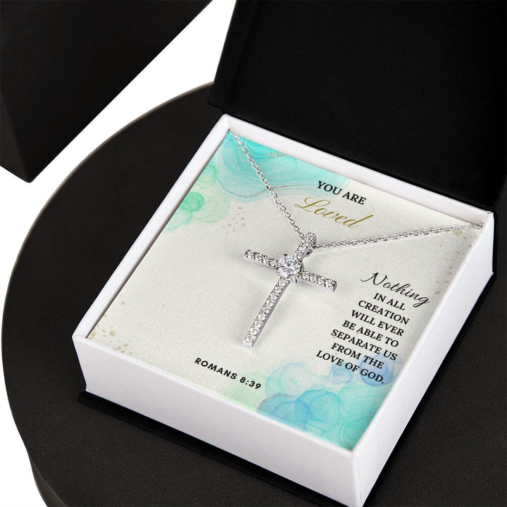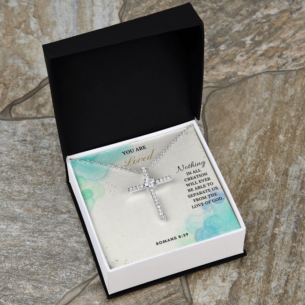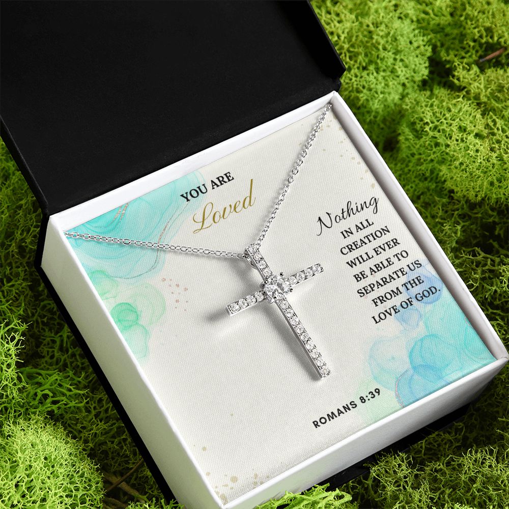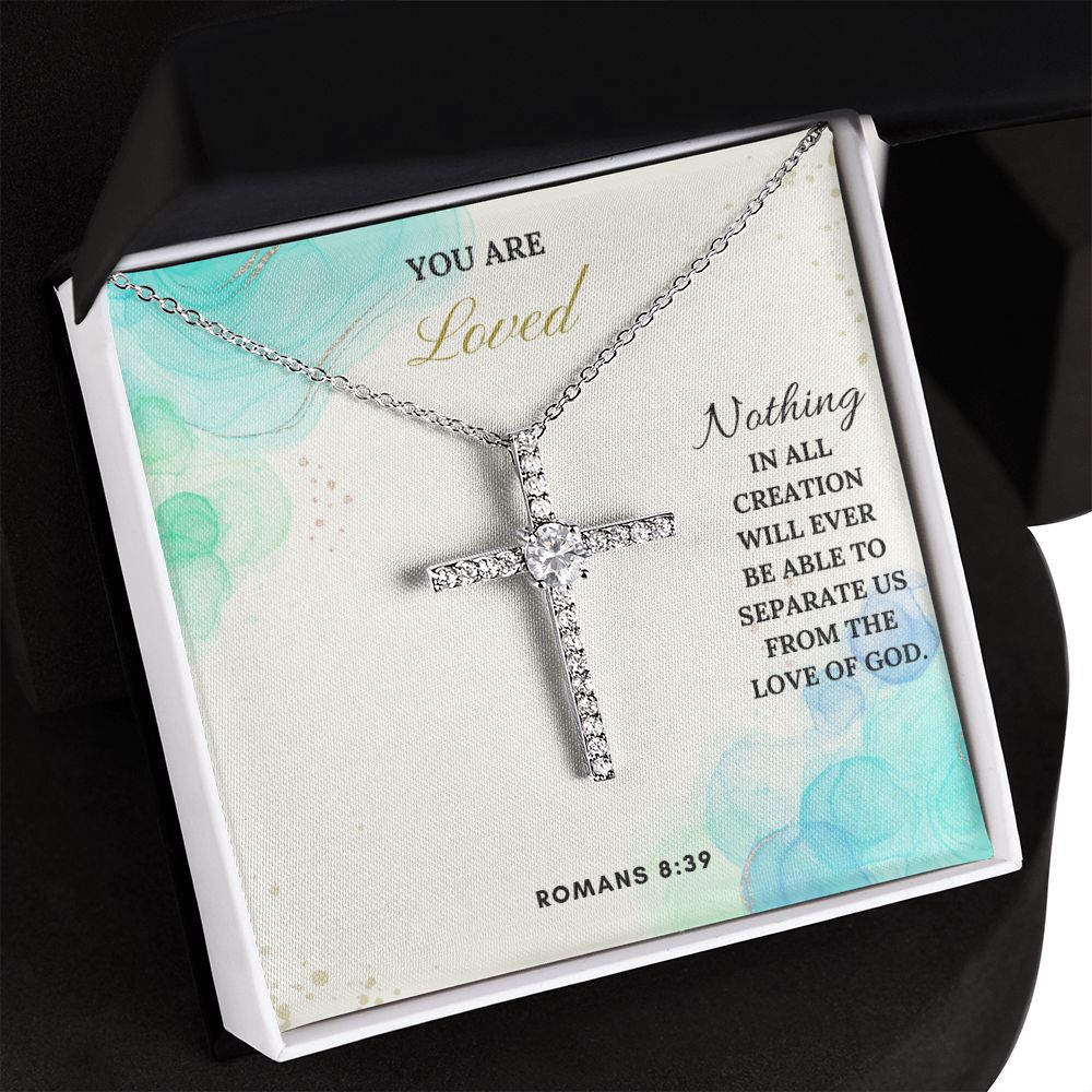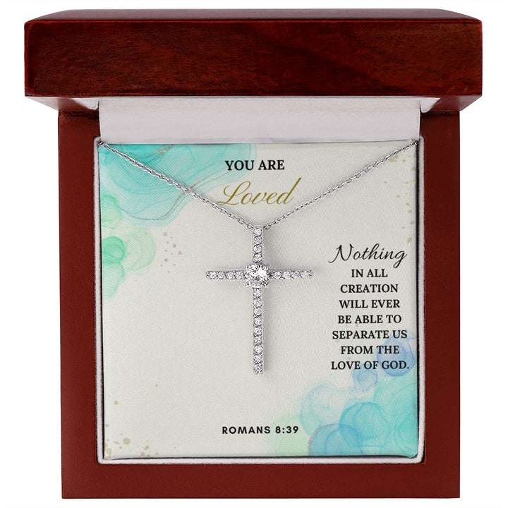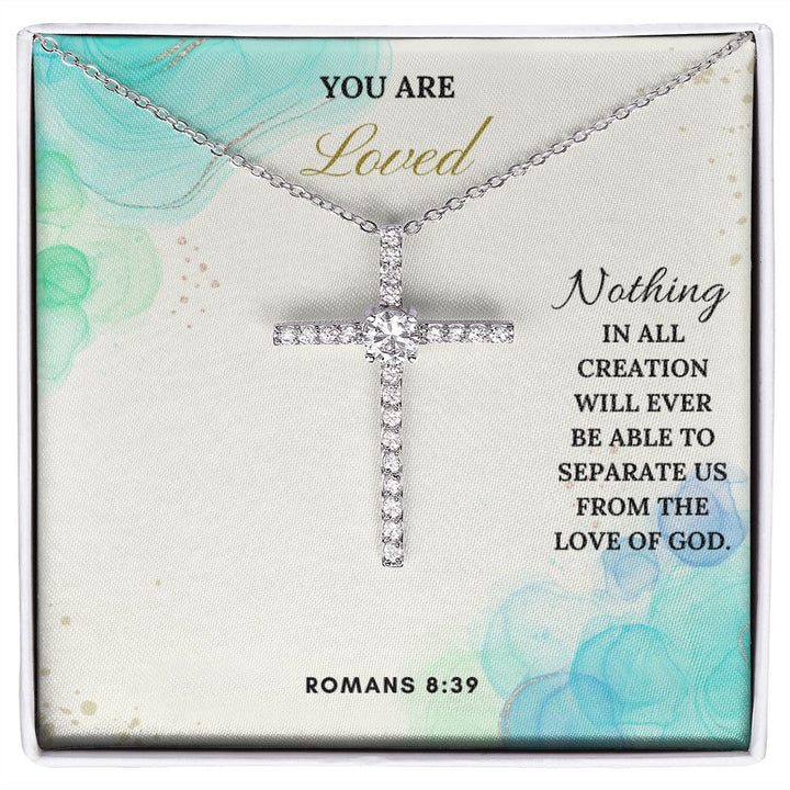 You are Loved | Nothing in all creation will ever be able to separate us from the Love of God. Romans 8:39 - CZ Cross Necklace