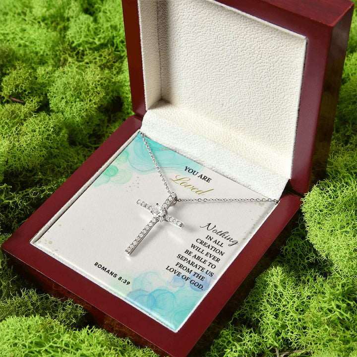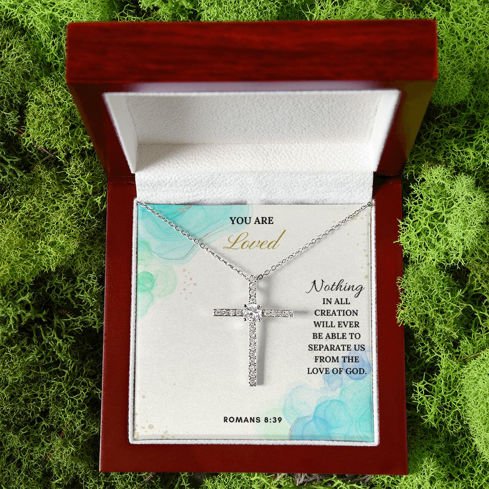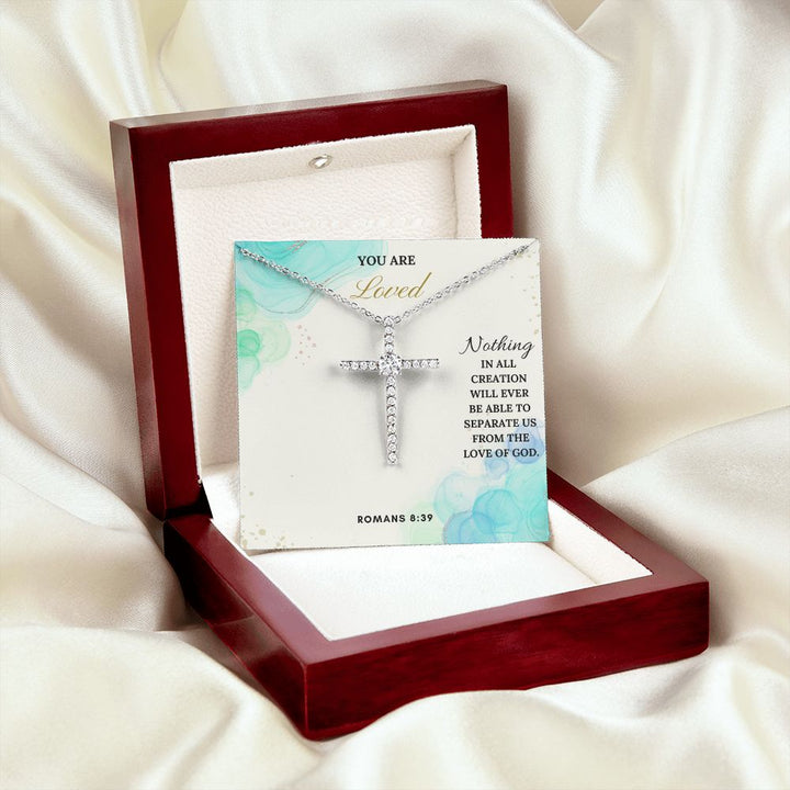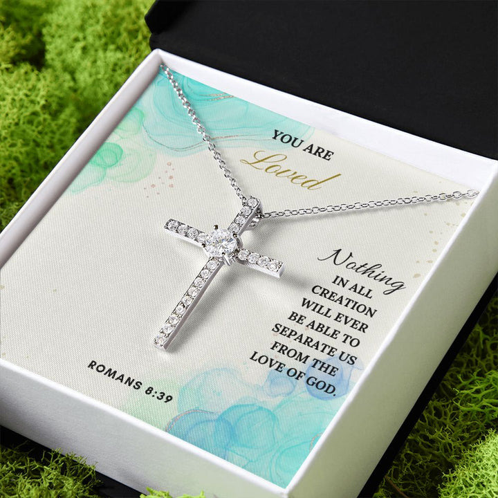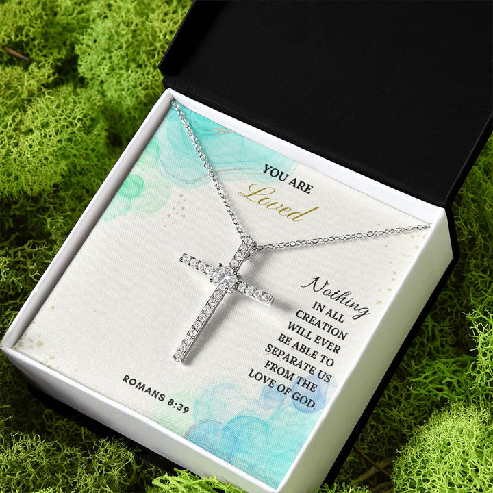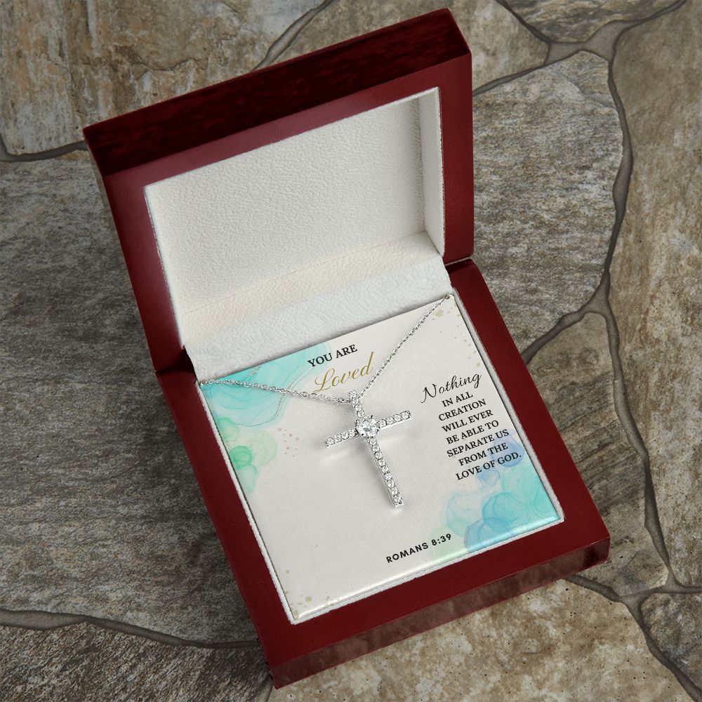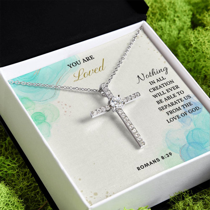 You are Loved | Nothing in all creation will ever be able to separate us from the Love of God. Romans 8:39 - CZ Cross Necklace