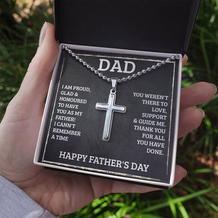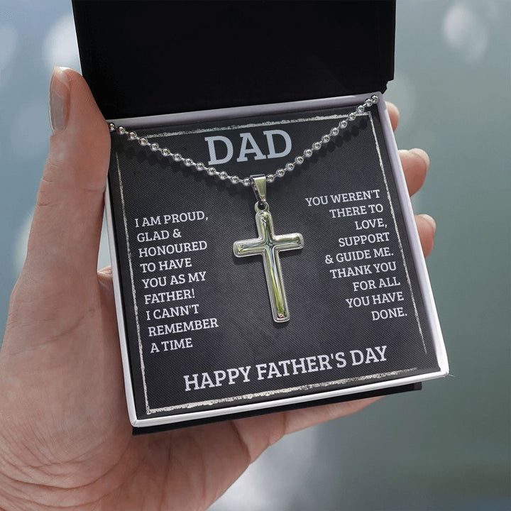 To My Dad | You weren't there to love, support and guide me. Happy Father's Day - Stainless Cross Necklace with Ball Chain