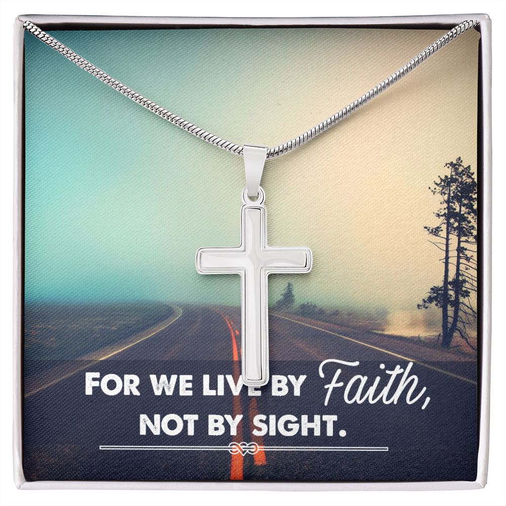 For We Live By Faith, Not By Sight - Stainless Cross Necklace with Ball Chain