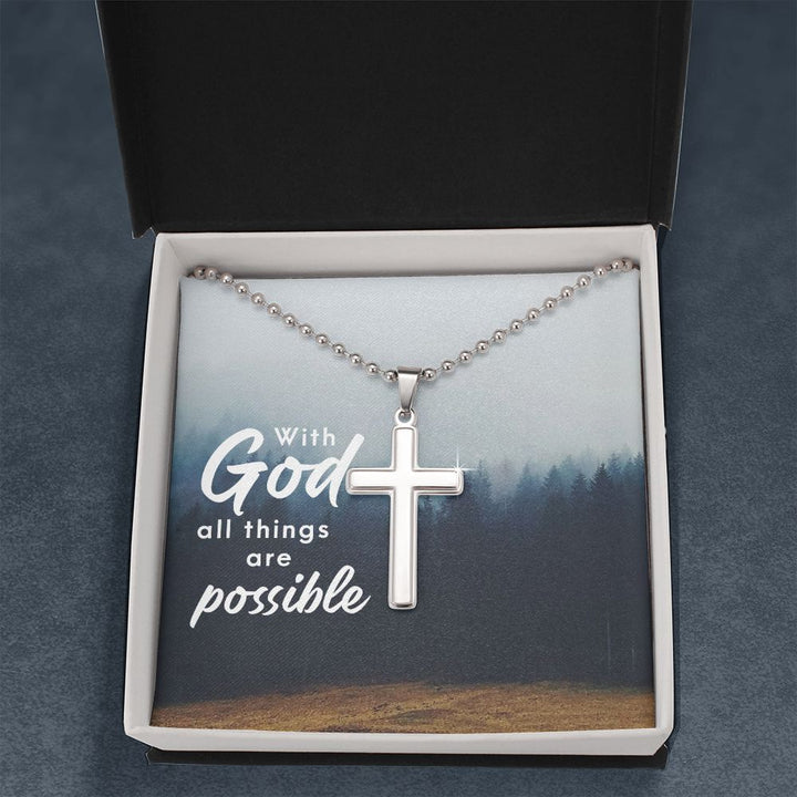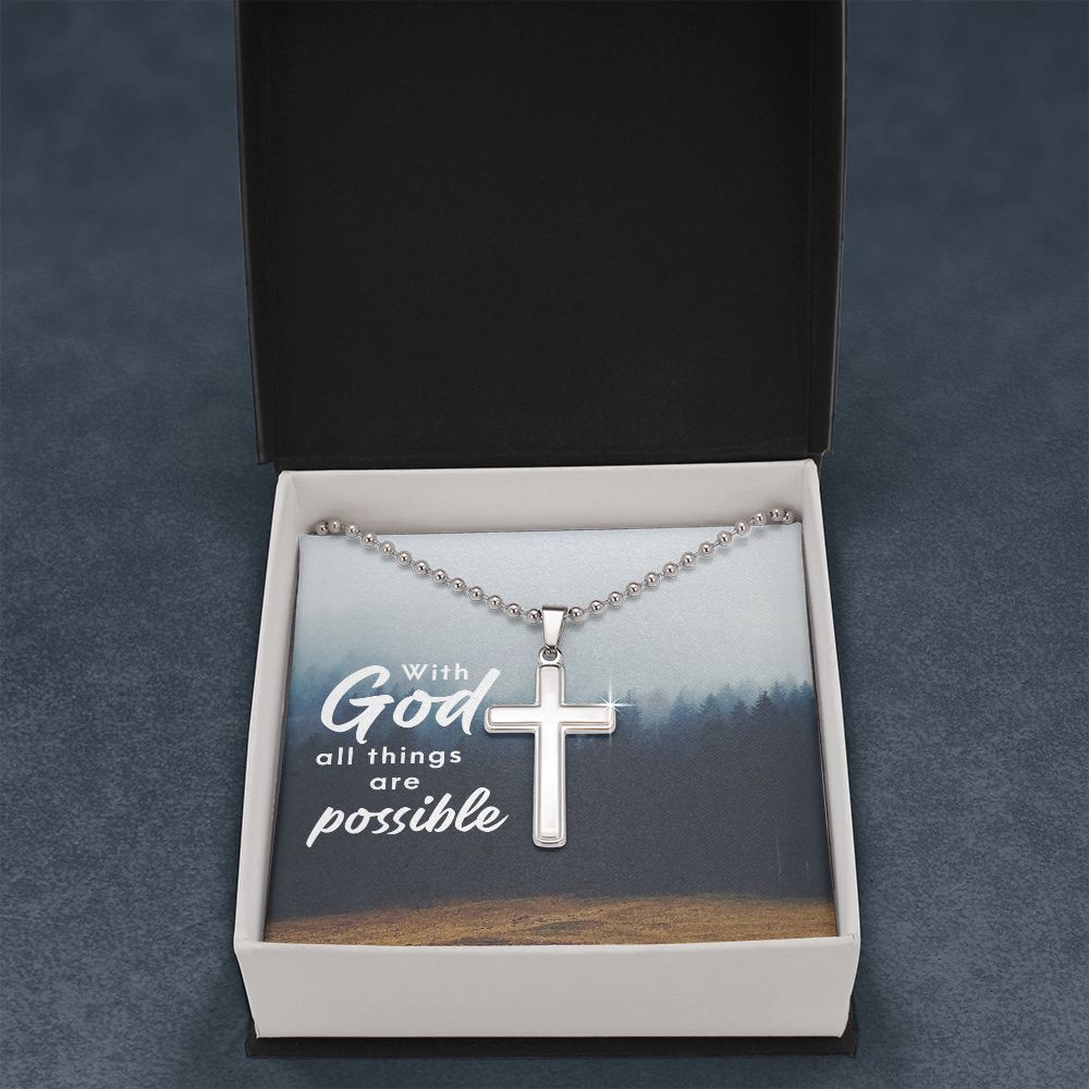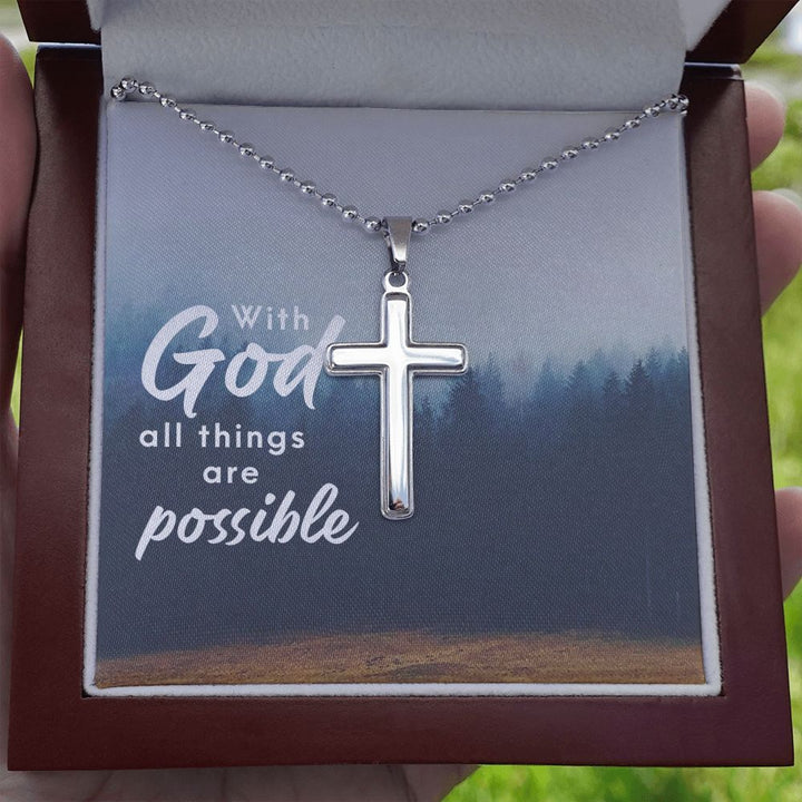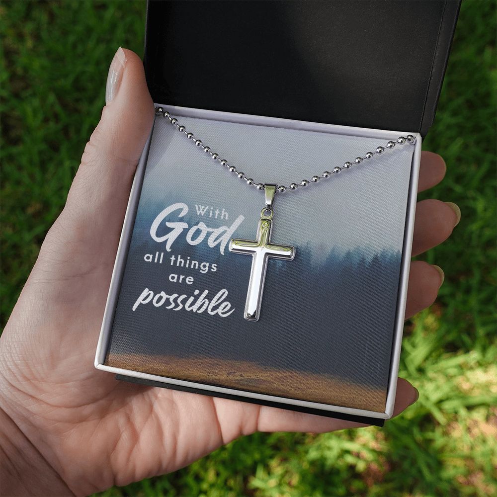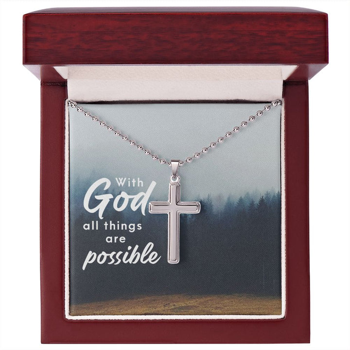 With God All Things Are Possible - Stainless Cross Necklace with Ball Chain