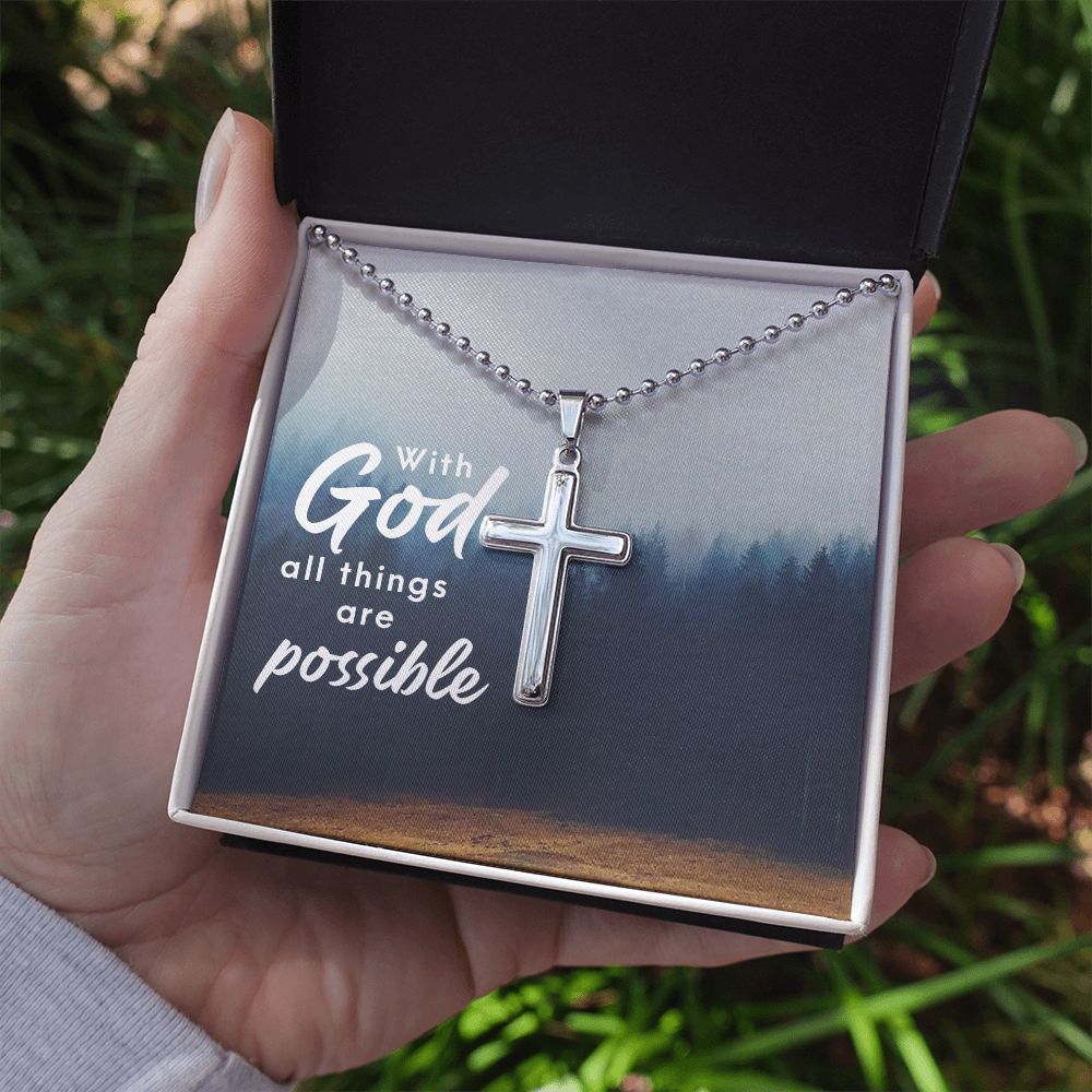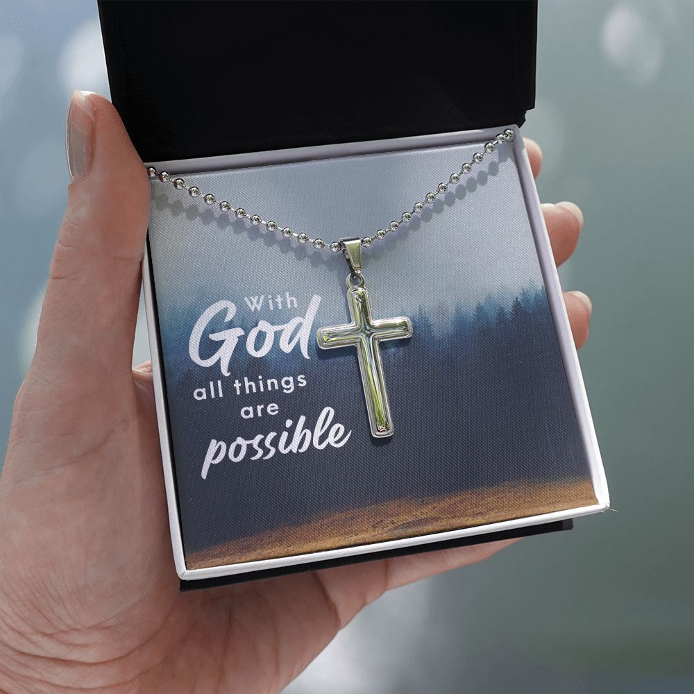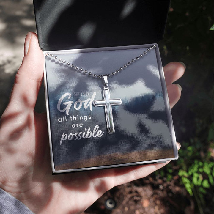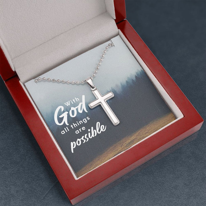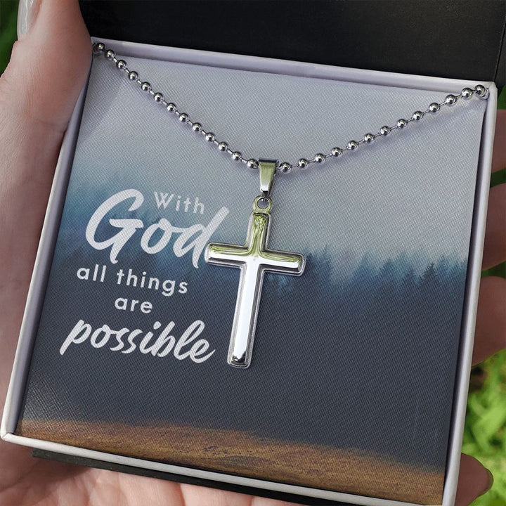 With God All Things Are Possible - Stainless Cross Necklace with Ball Chain
