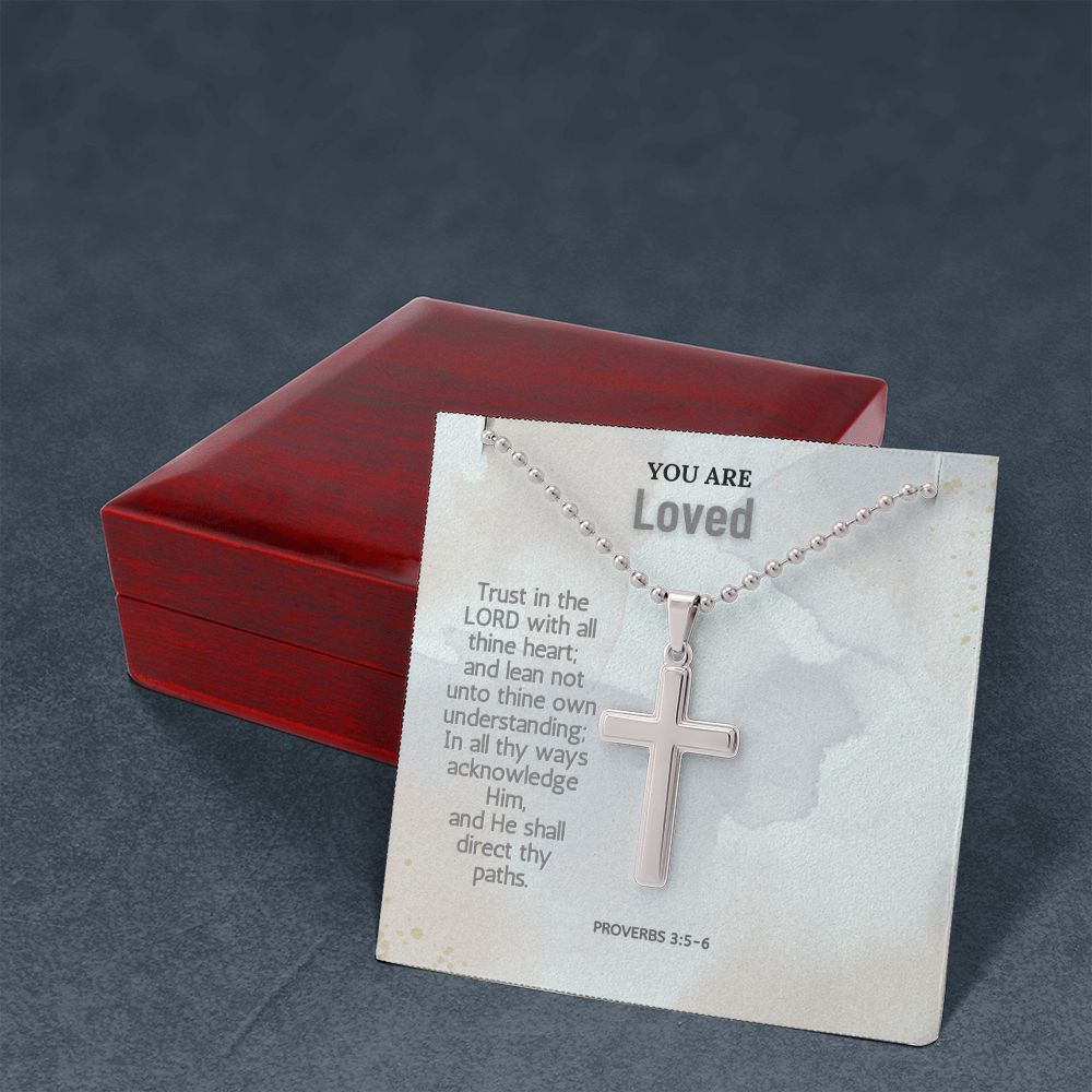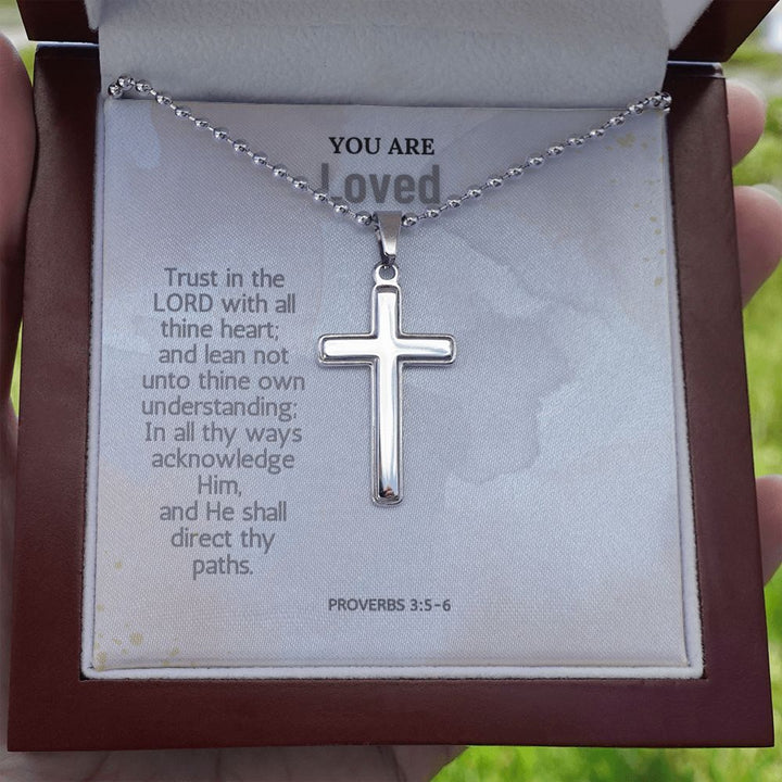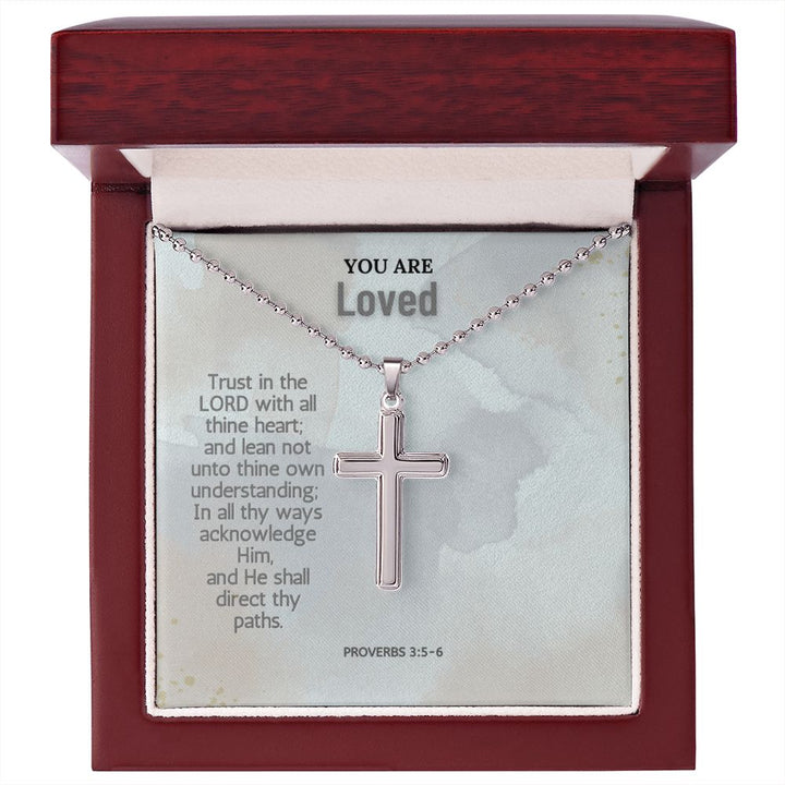 You are Loved | In all thy ways acknowledge Him, and He shall direct thy paths. Proverbs 3:5-6 - Stainless Cross Necklace with Ball Chain