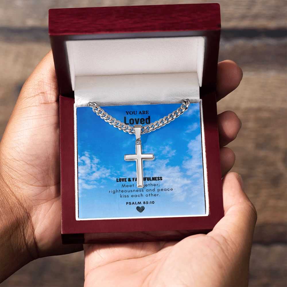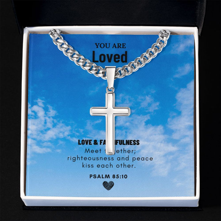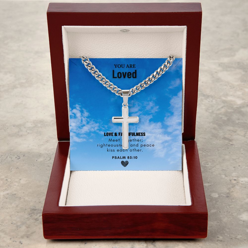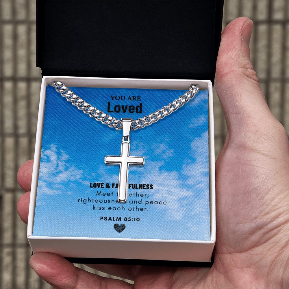 You are Loved | Love and Faithfulness meet together PSALM 85:10 - Cuban Chain with Artisan Cross Necklace