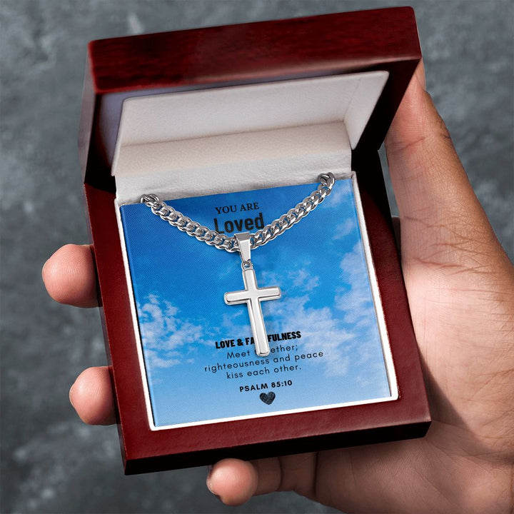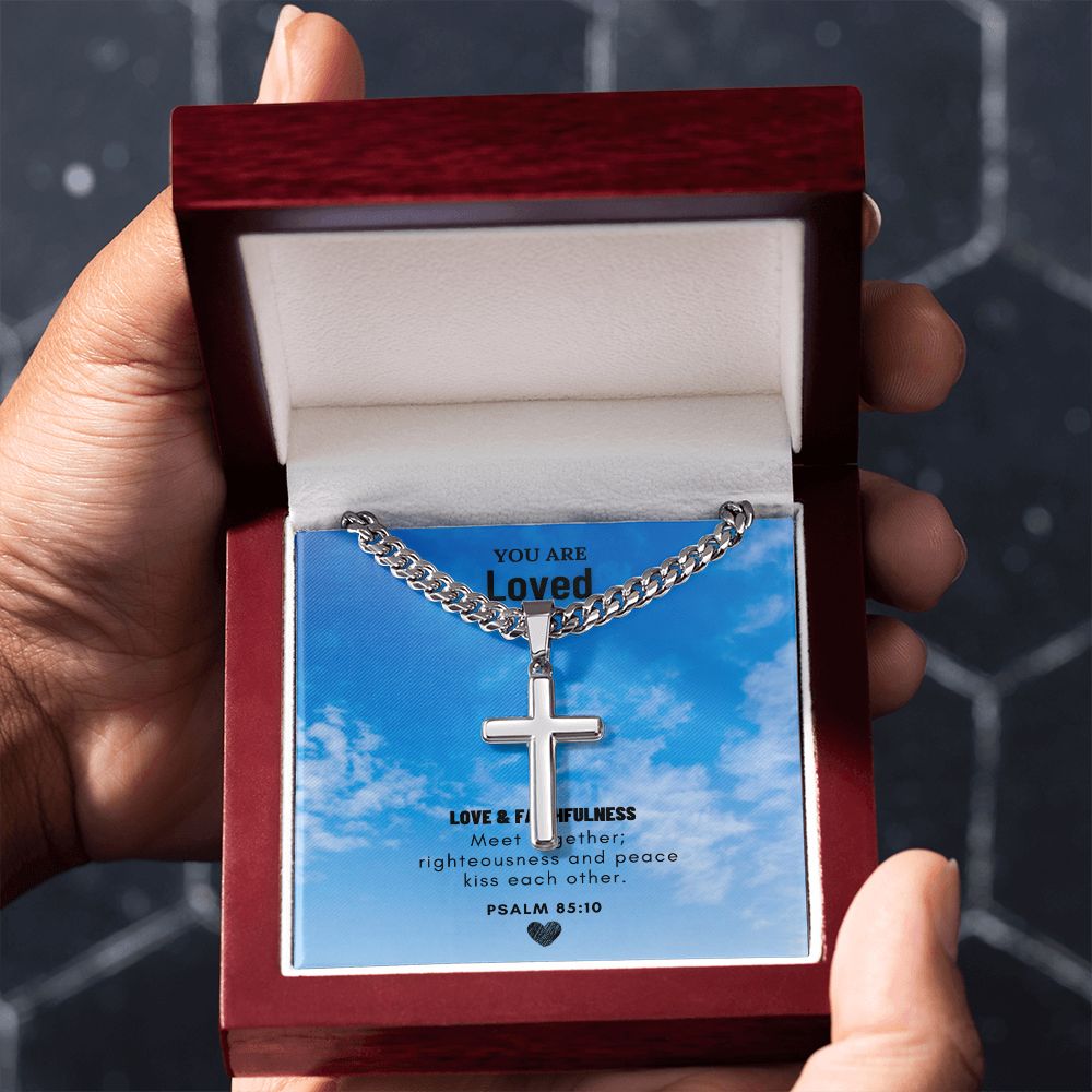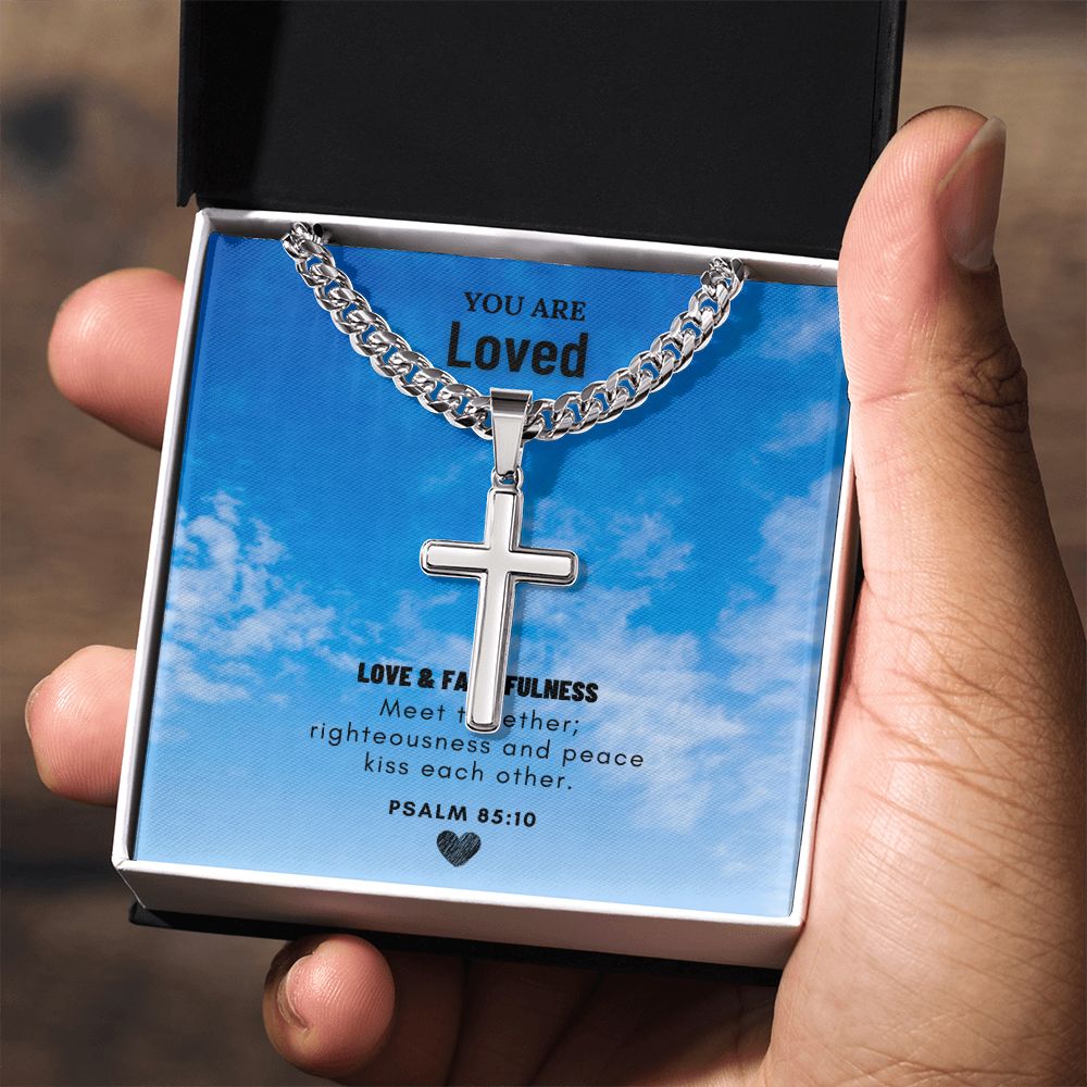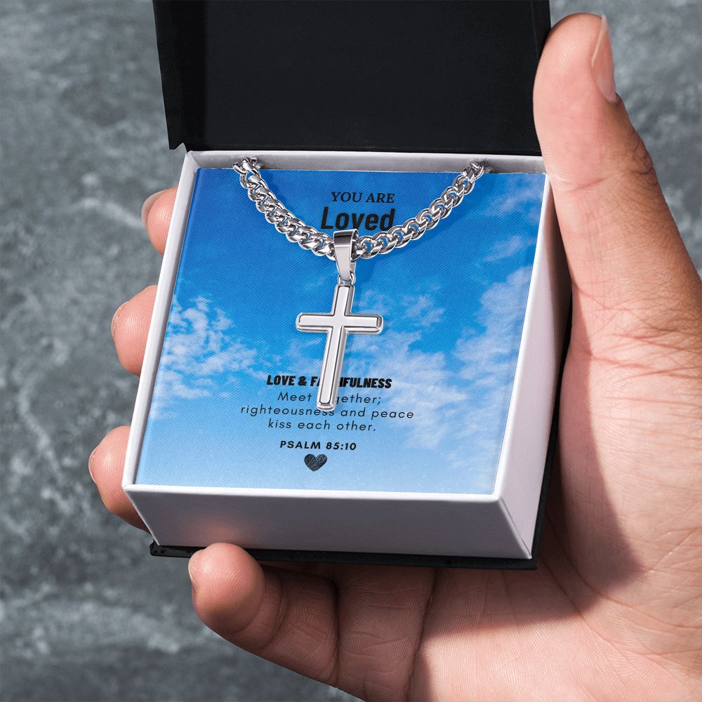 You are Loved | Love and Faithfulness meet together PSALM 85:10 - Cuban Chain with Artisan Cross Necklace