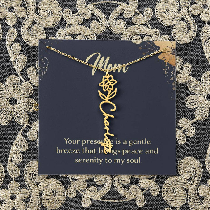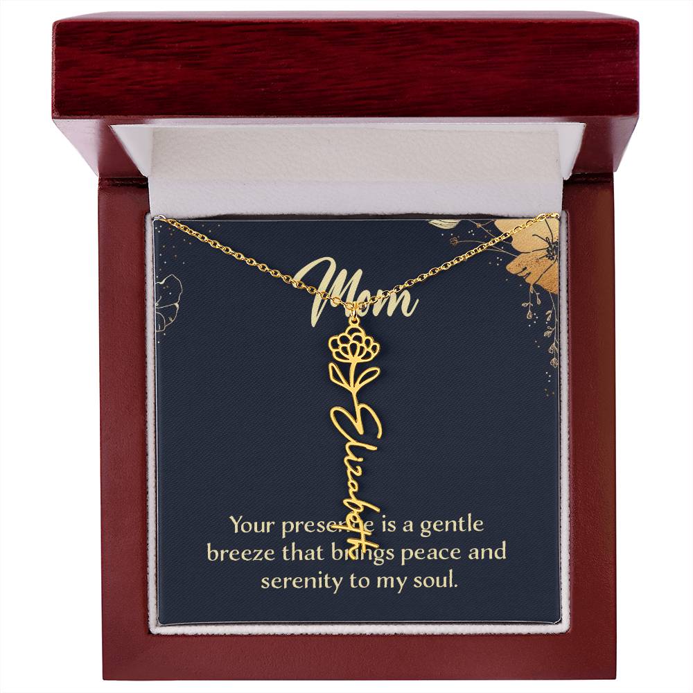 Mom | Your presence is a gentle breeze that brings peace and serenity to my soul - Flower Name Necklace