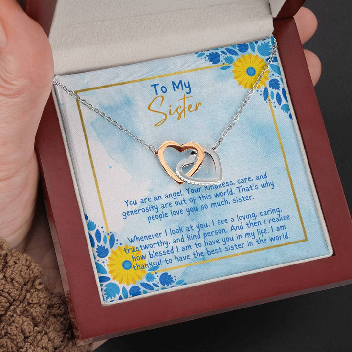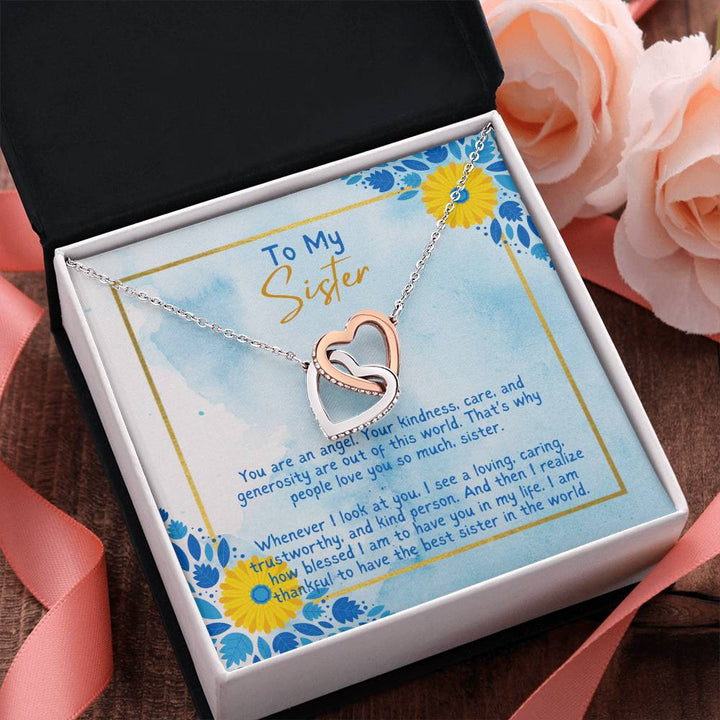 To My Sister | You are an angel. Your kindness, care and generosity are out of this world - Interlocking Hearts Necklace