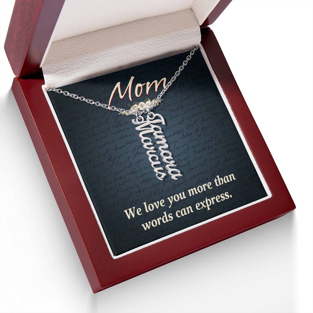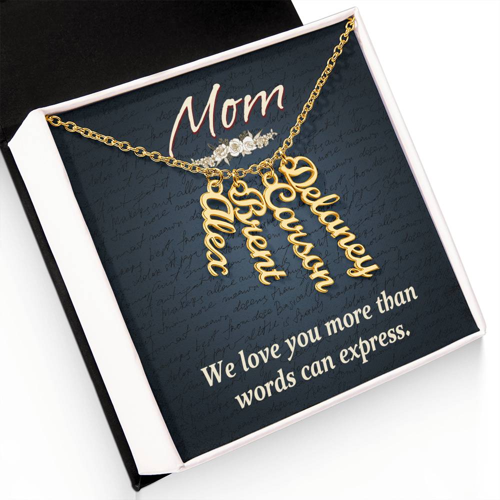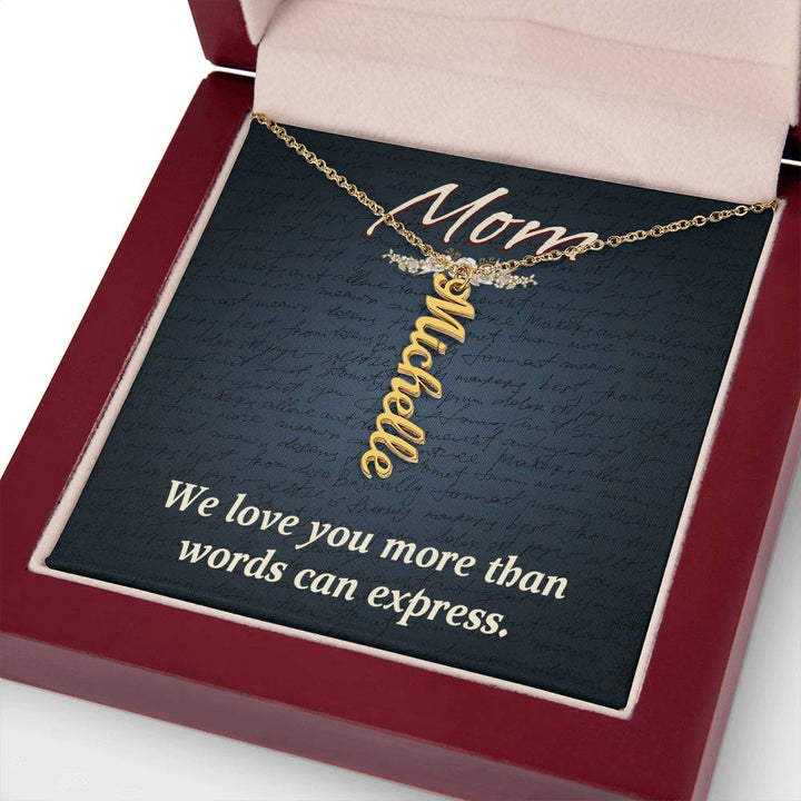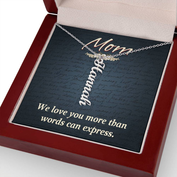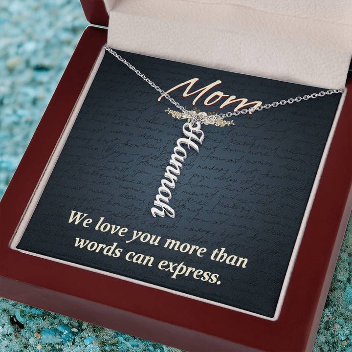 Mom | We Love you more than words can express - Multi Vertical Name Necklace