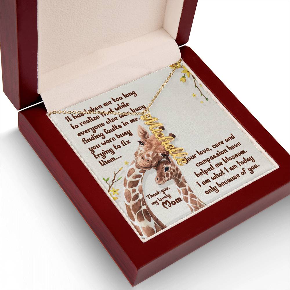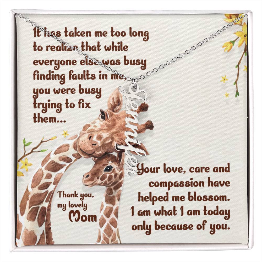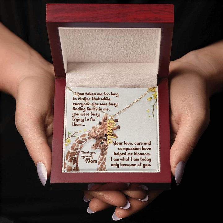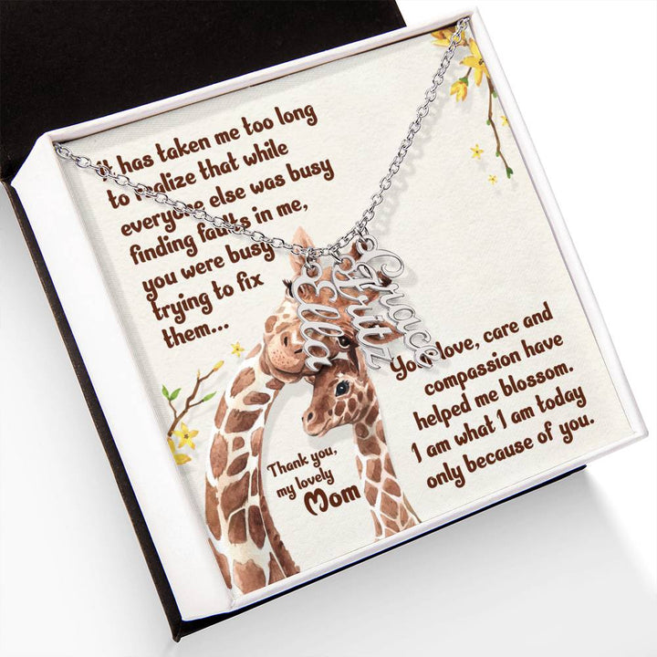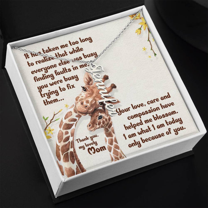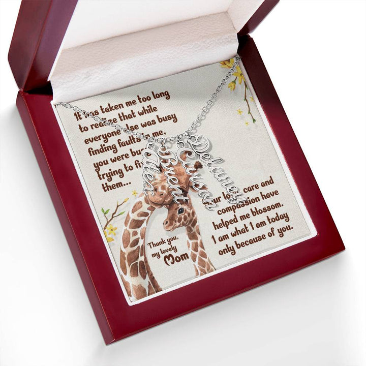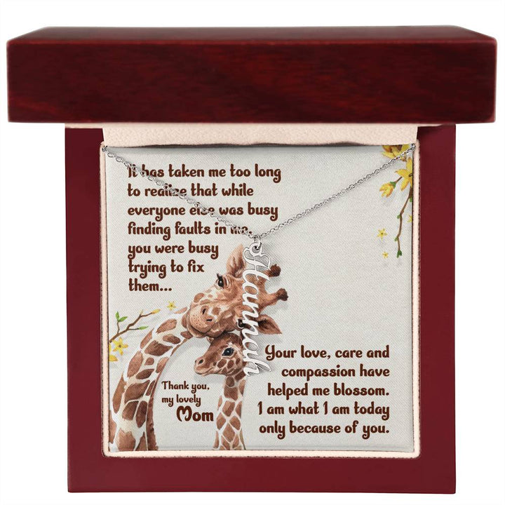 My Lovely Mom | Your love, care and compassion have helped me blossom - Multi Vertical Name Necklace