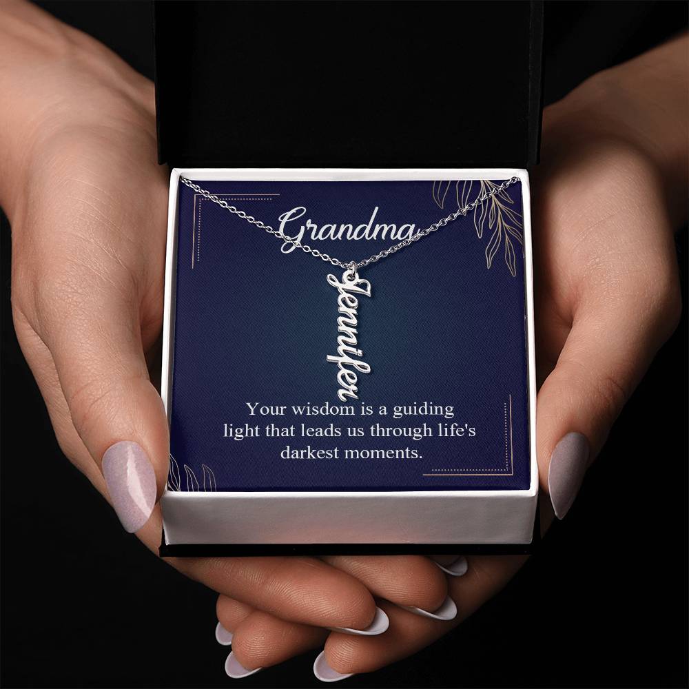 Grandma | Your Wisdom is a guiding light that leads us through life's darkest moments - Multi Vertical Name Necklace