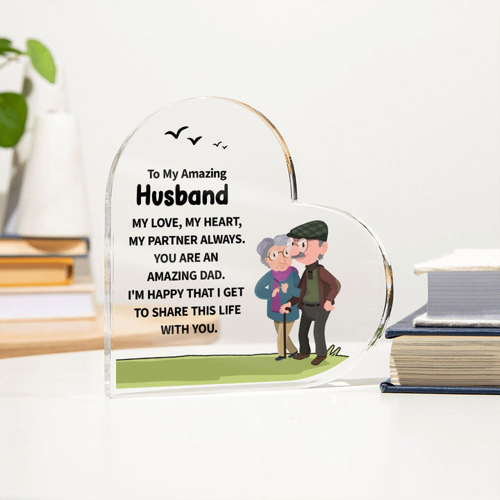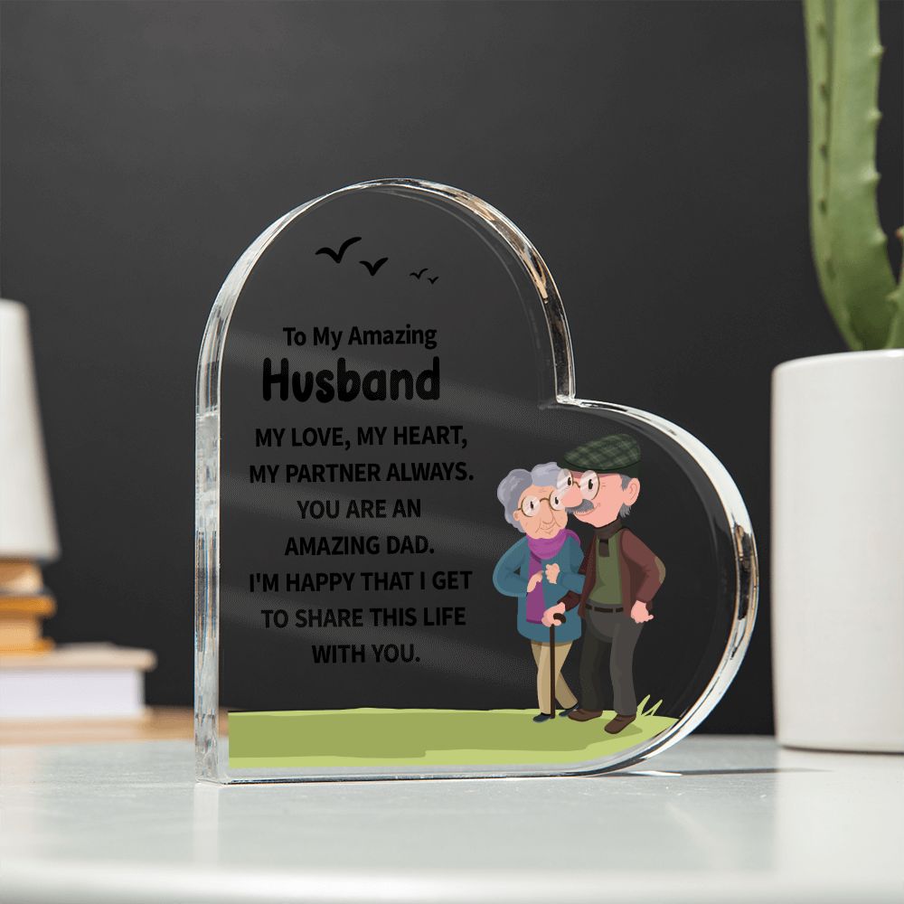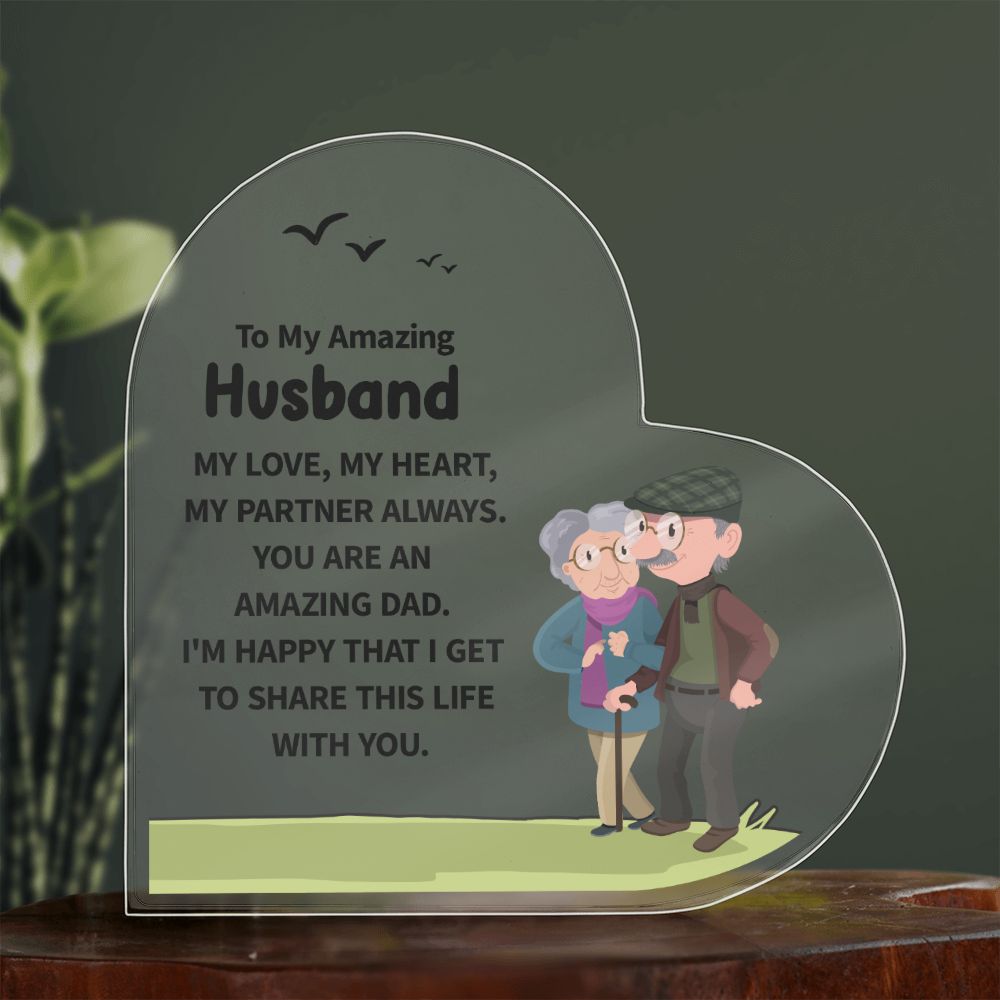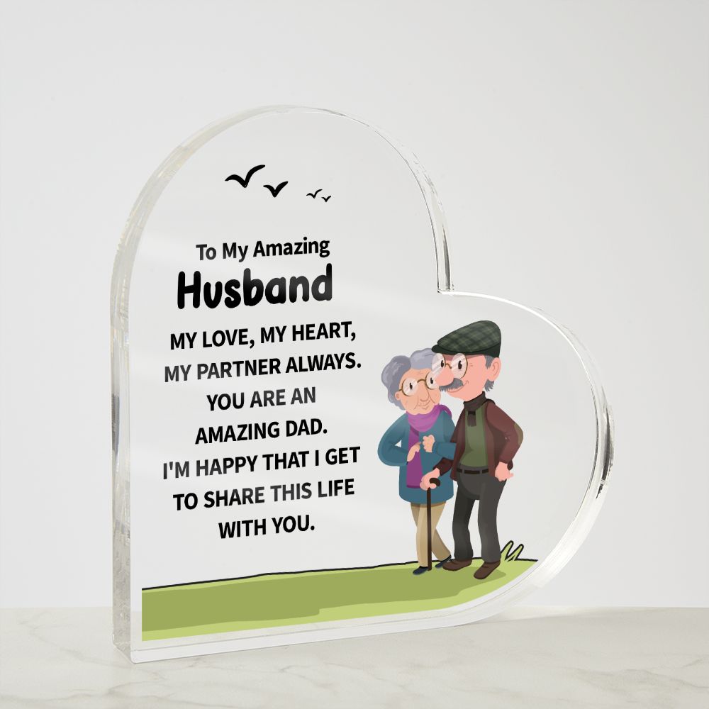 To My Amazing Husband | My Love, My Heart, My Partner Always. - Printed Heart Shaped Acrylic Plaque