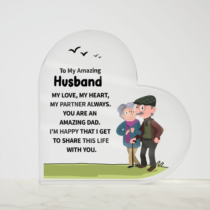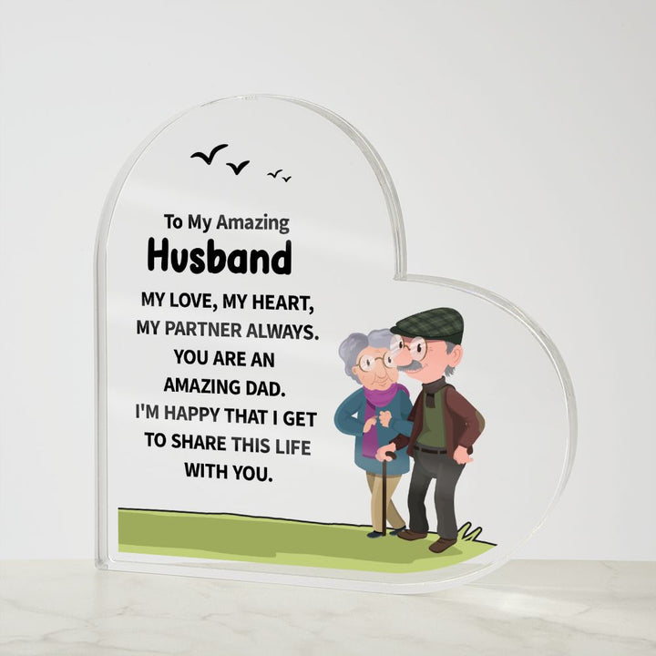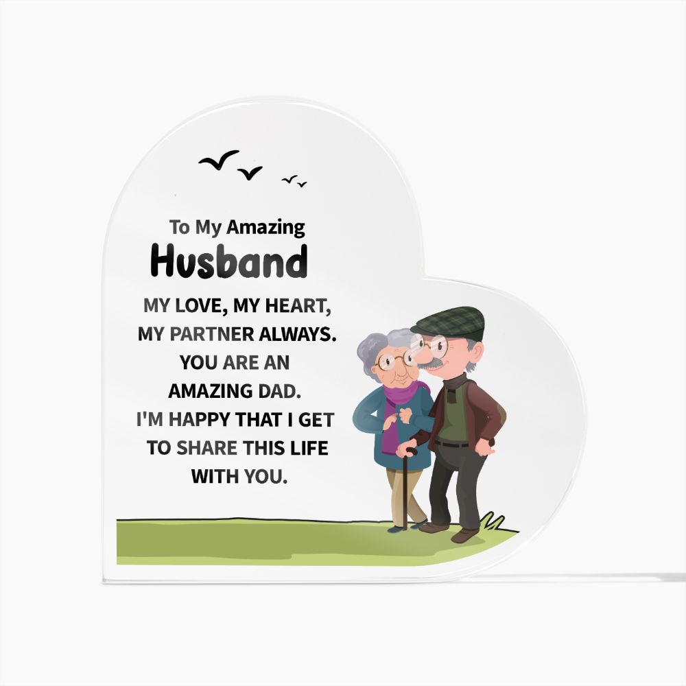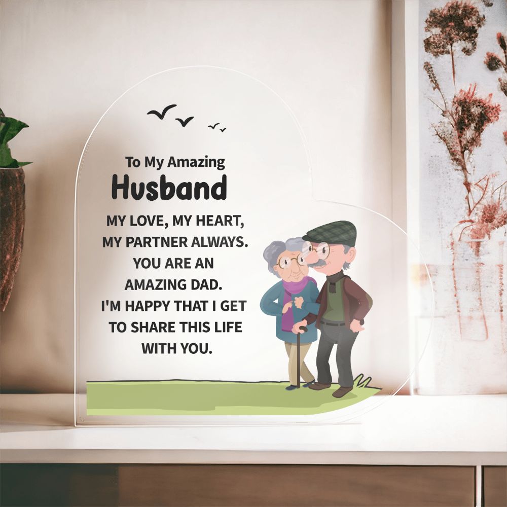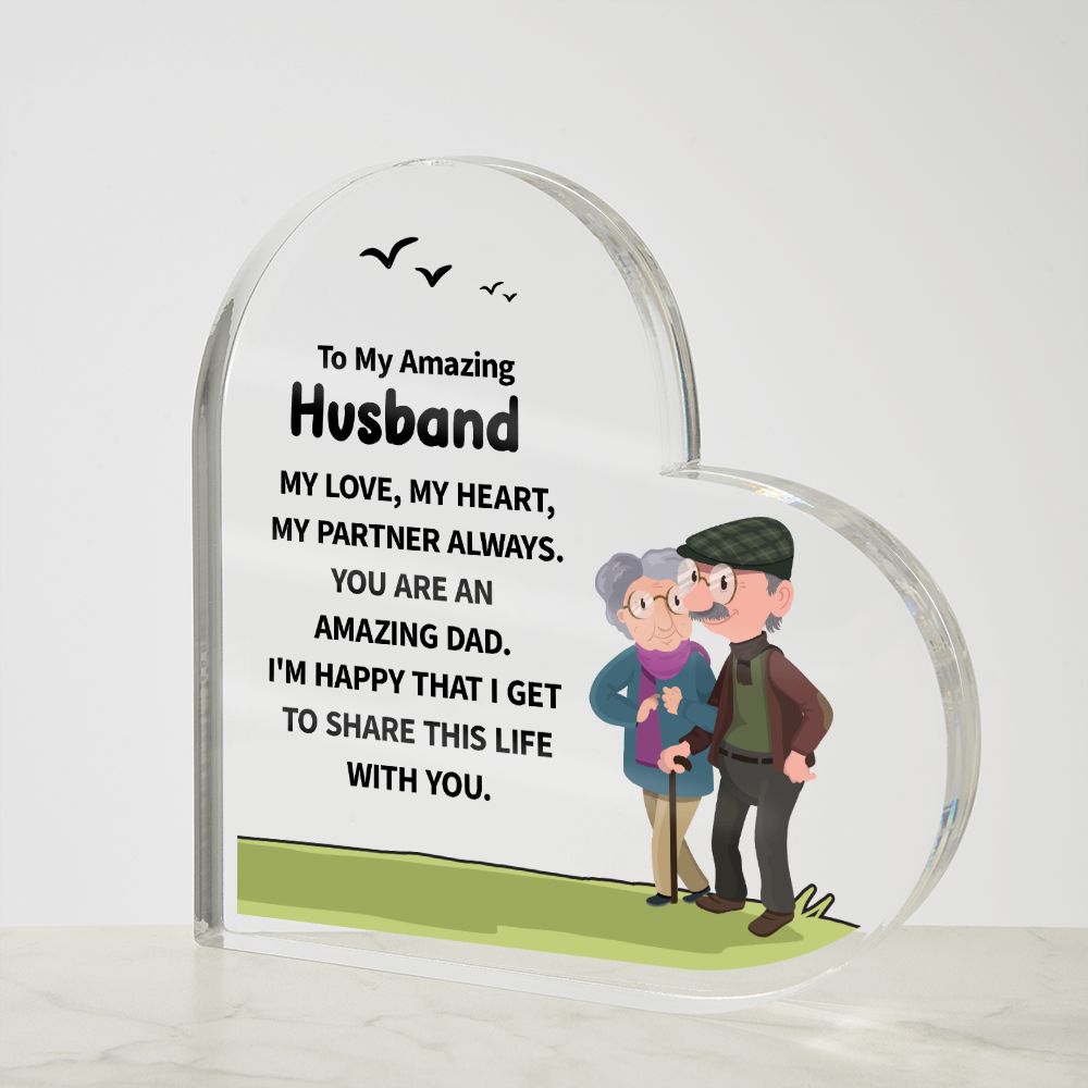 To My Amazing Husband | My Love, My Heart, My Partner Always. - Printed Heart Shaped Acrylic Plaque