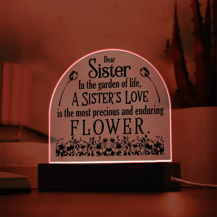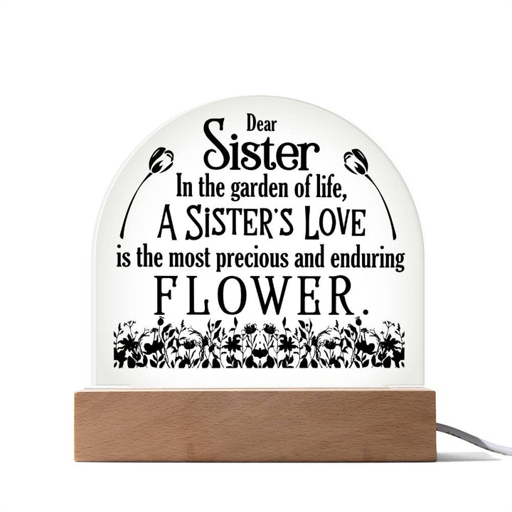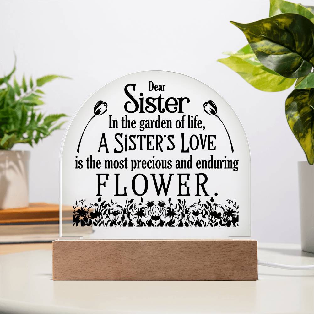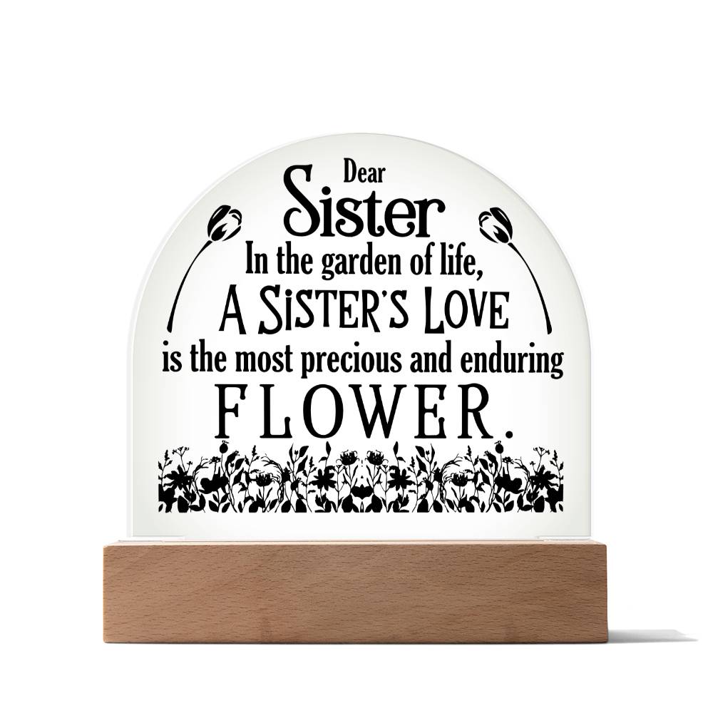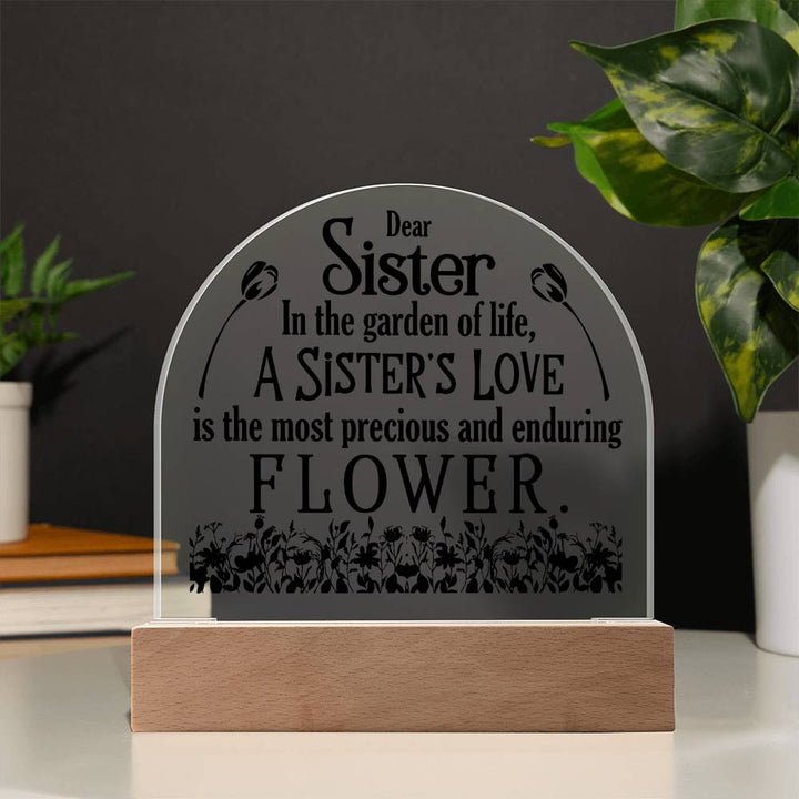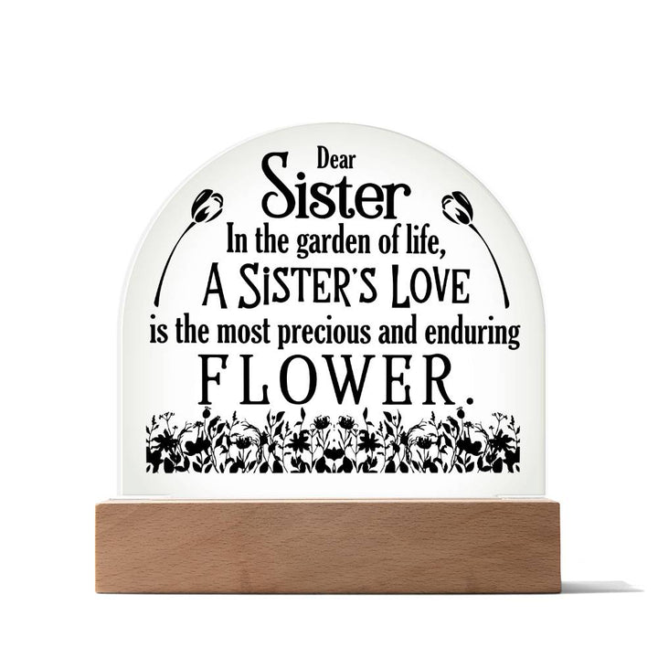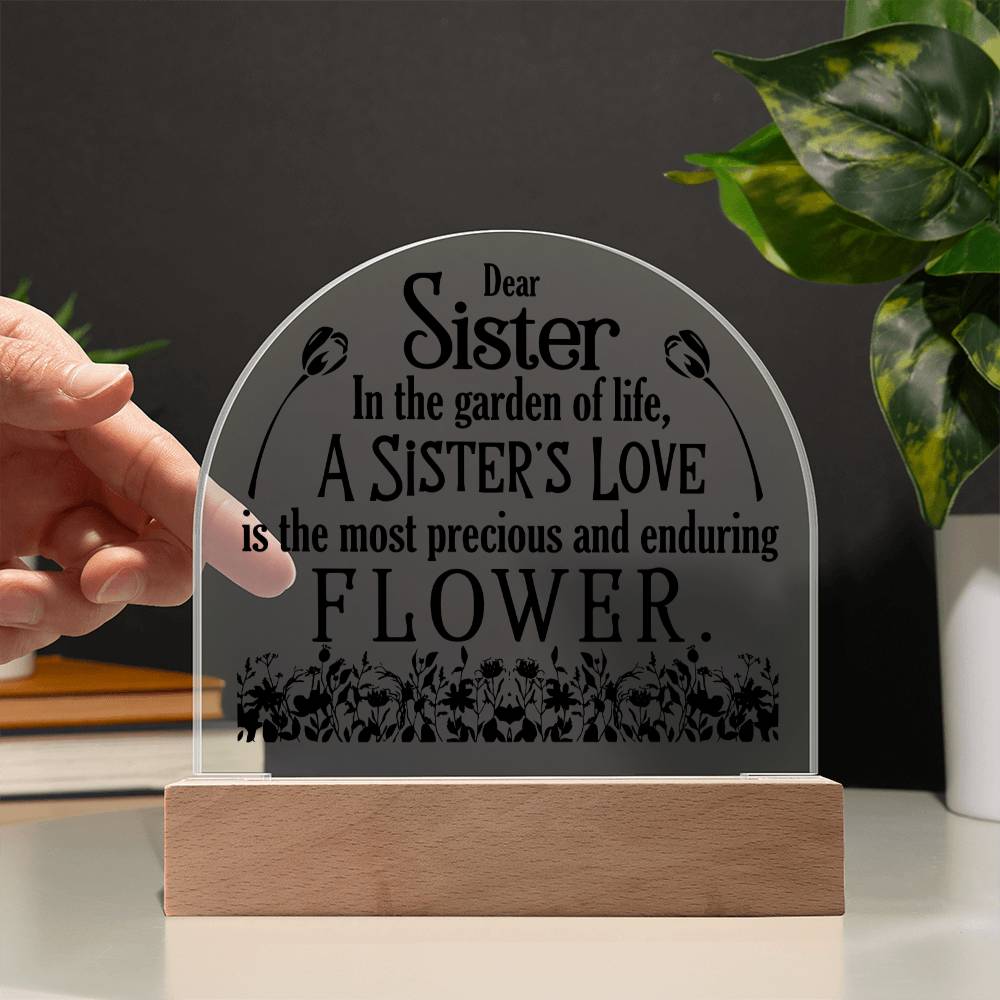 To My Sister | A Sister's Love is the most precious and enduring Flower - Engraved Domed Acrylic Plaque