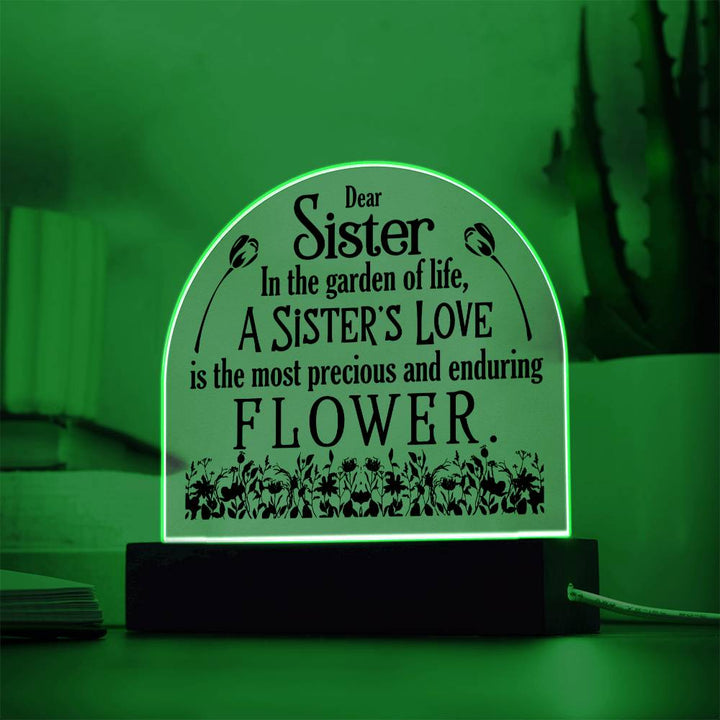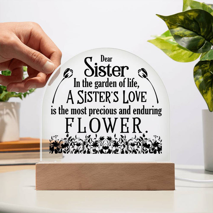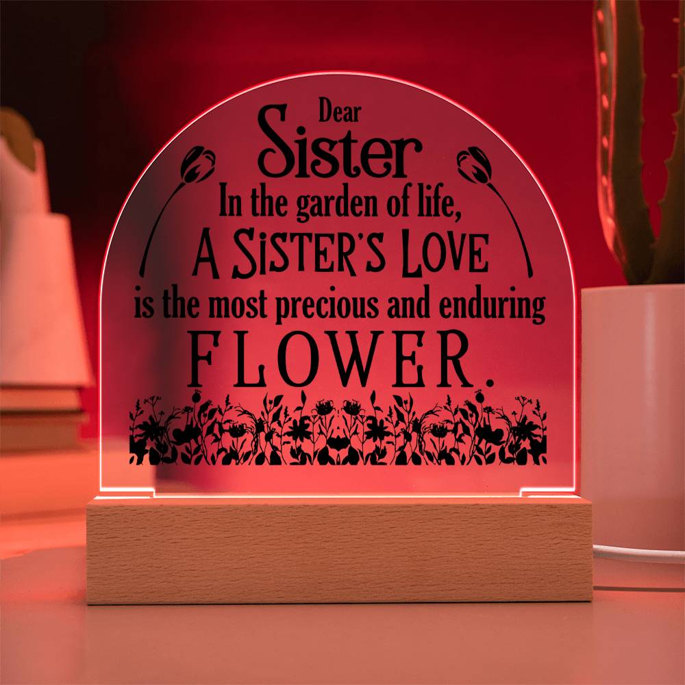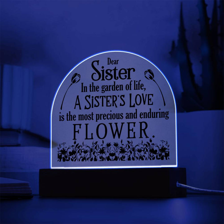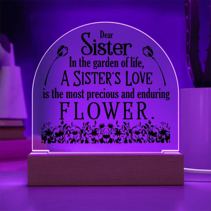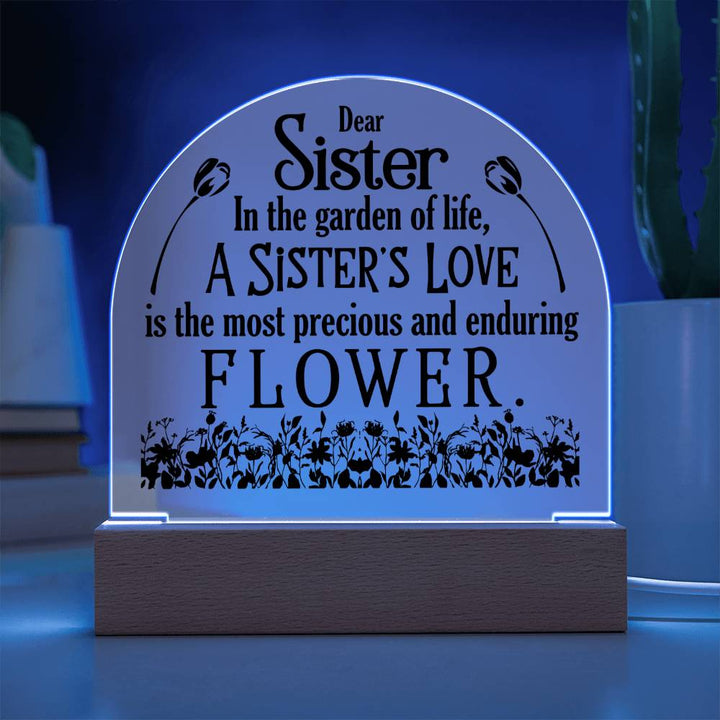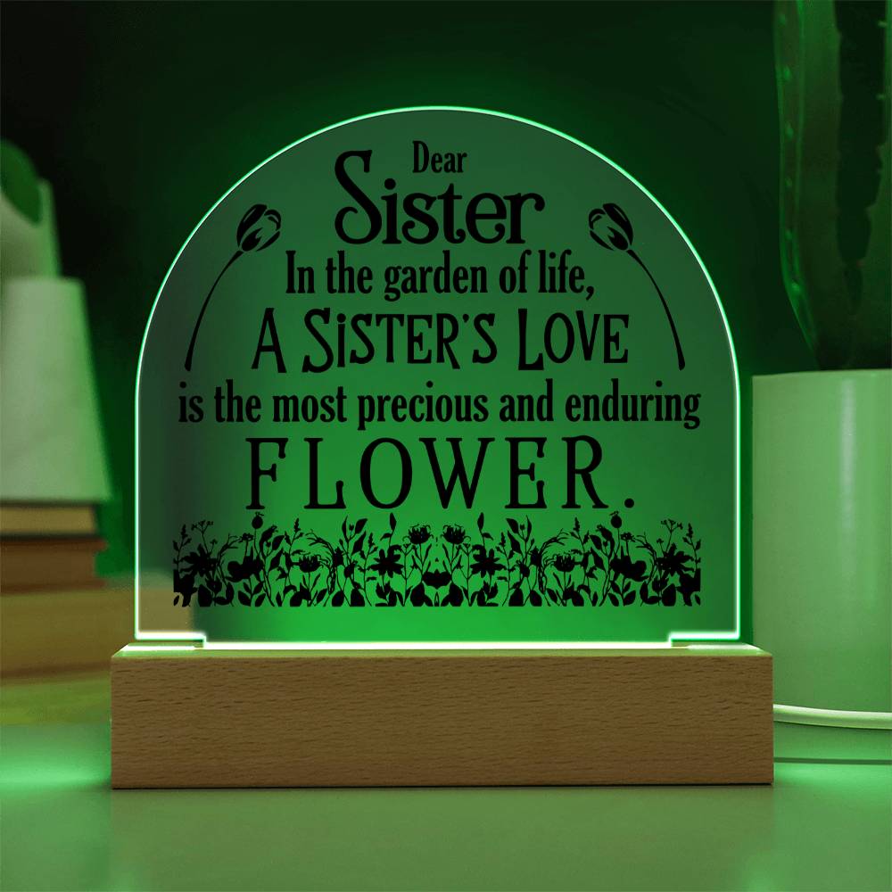 To My Sister | A Sister's Love is the most precious and enduring Flower - Engraved Domed Acrylic Plaque