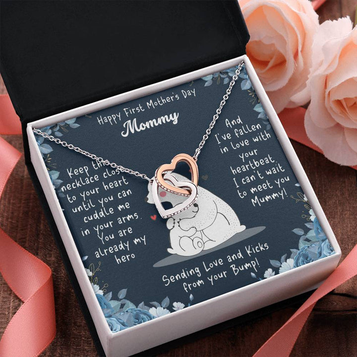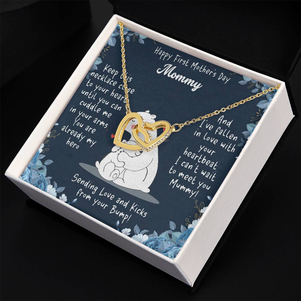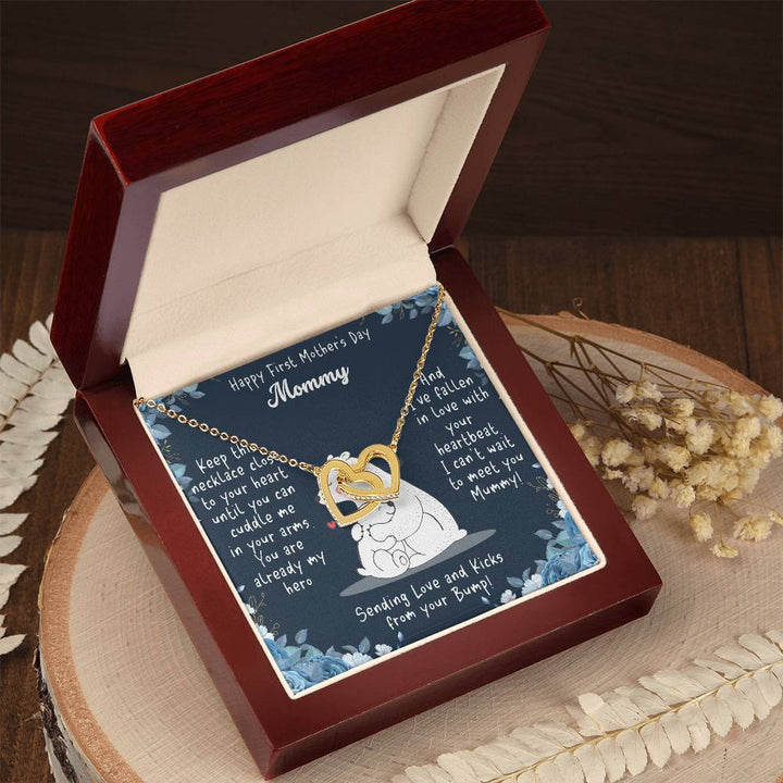 Happy First Mother's Day Mommy | I can't wait to meet you Mummy! Sending Love and Kicks from your Bump! - Interlocking Hearts Necklace