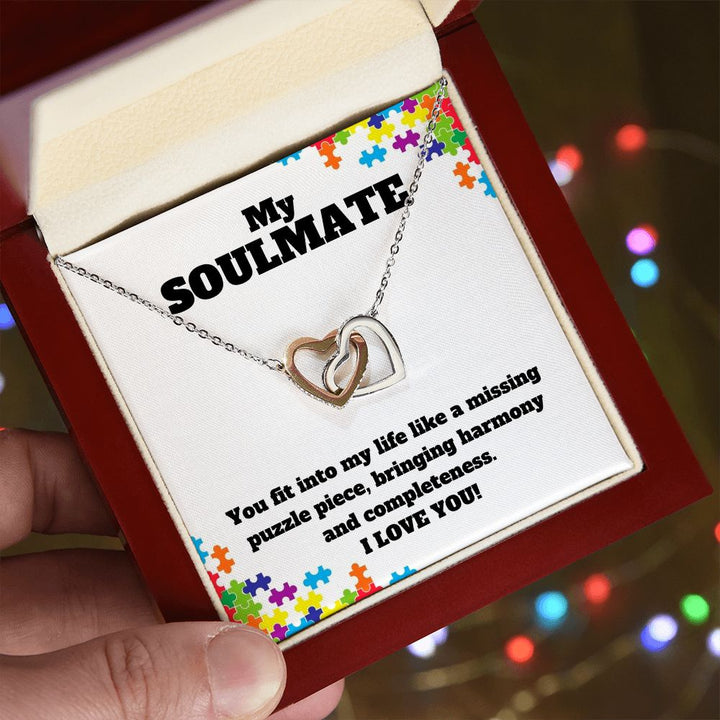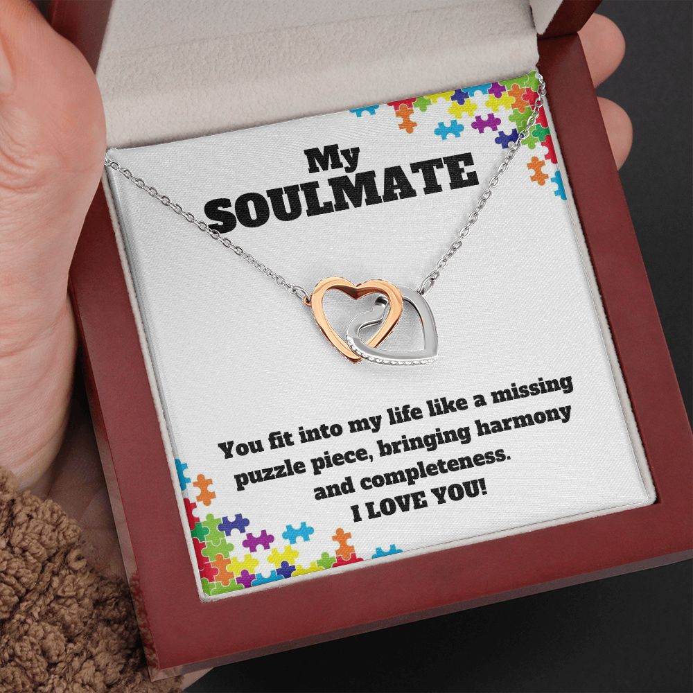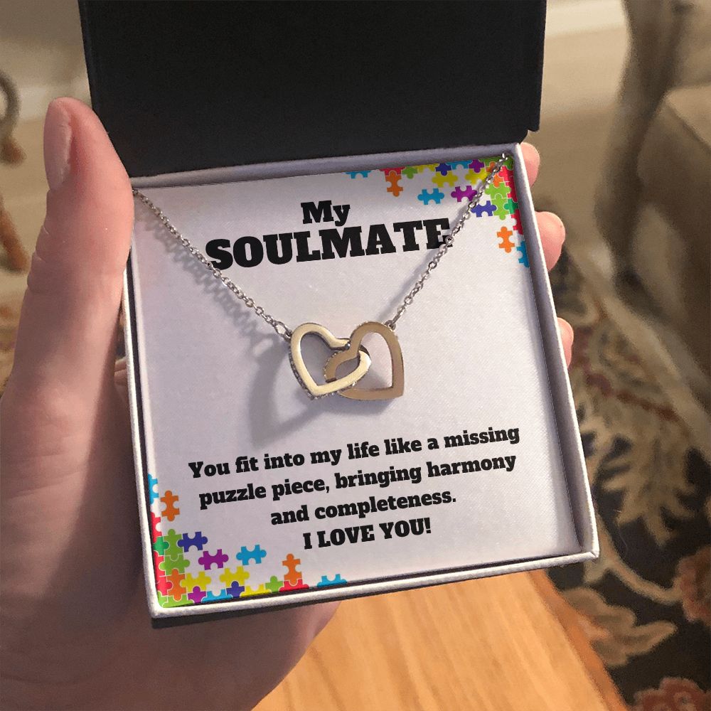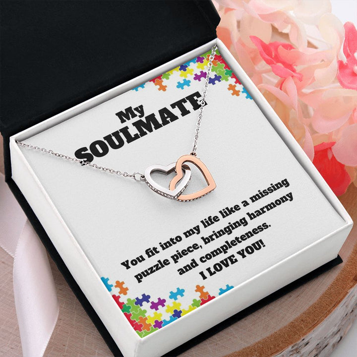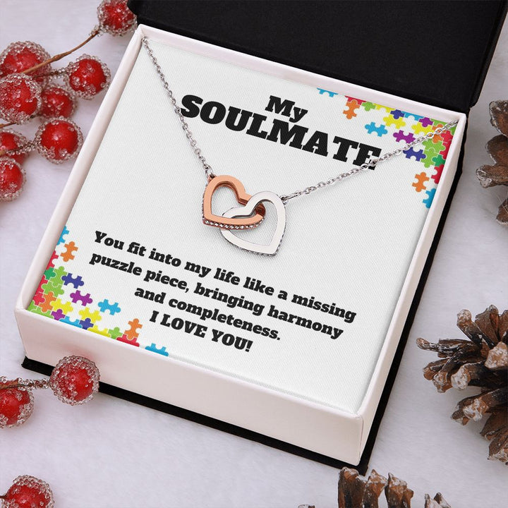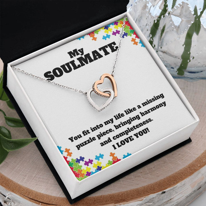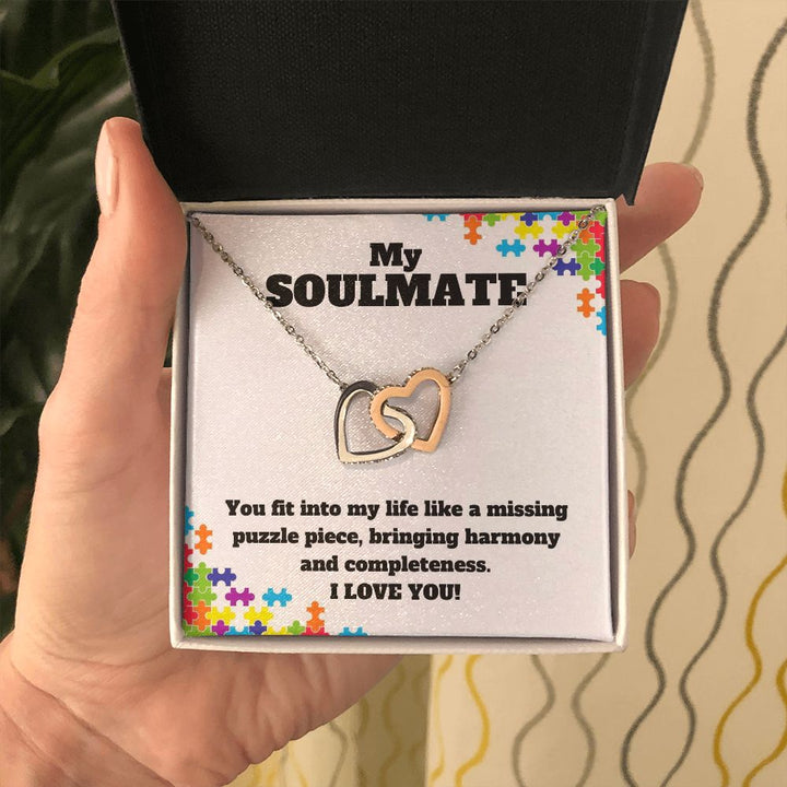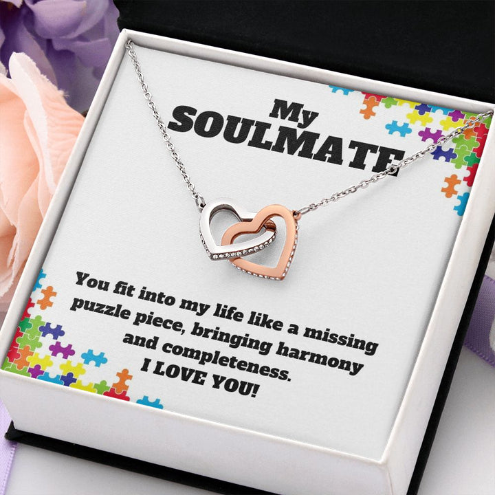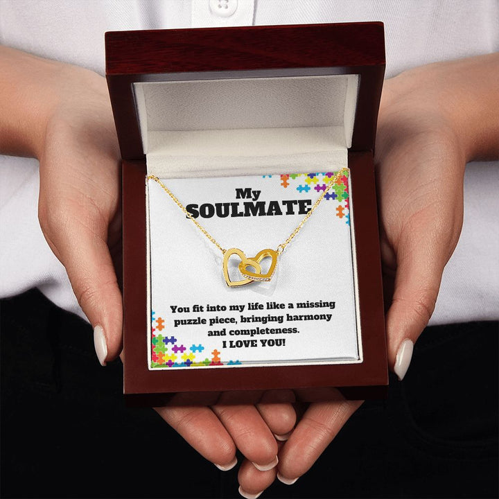 My Soulmate | You fit into my life like a missing puzzle piece, bring harmony and completeness - Interlocking Hearts Necklace