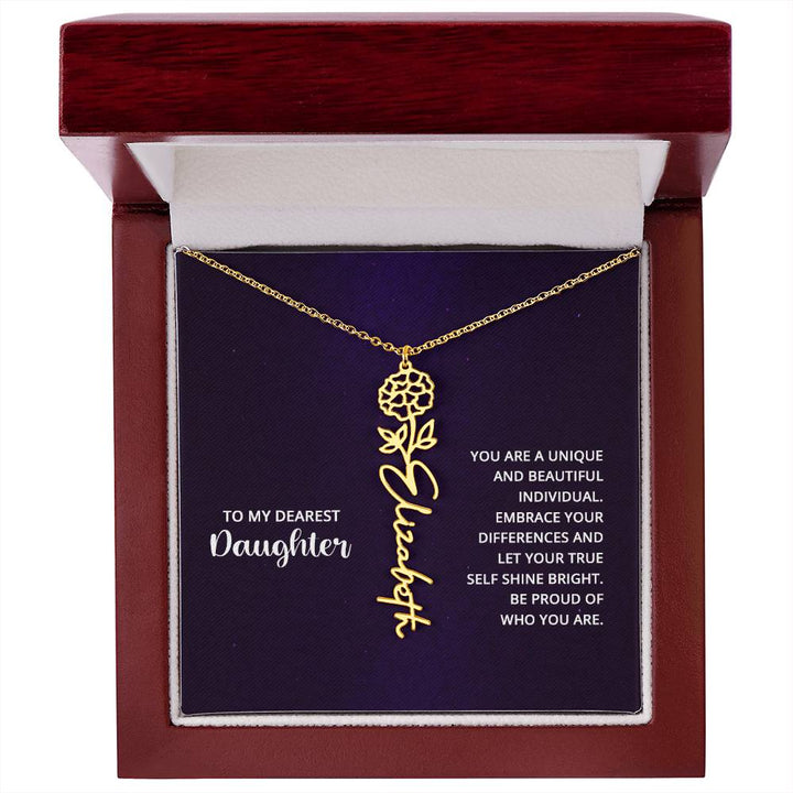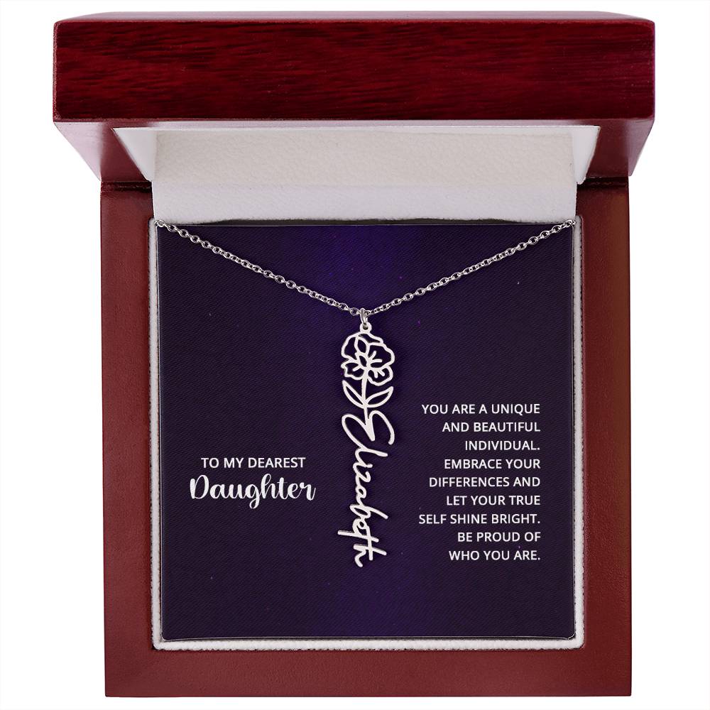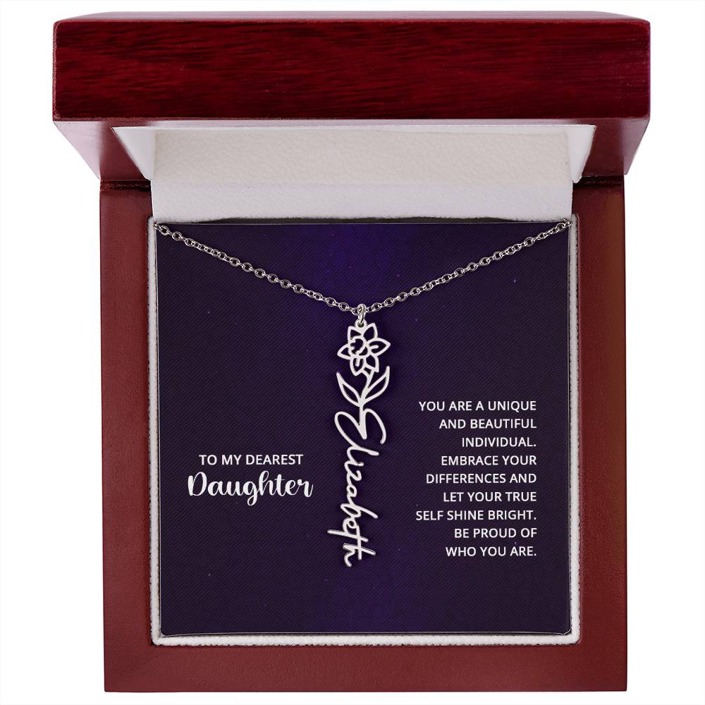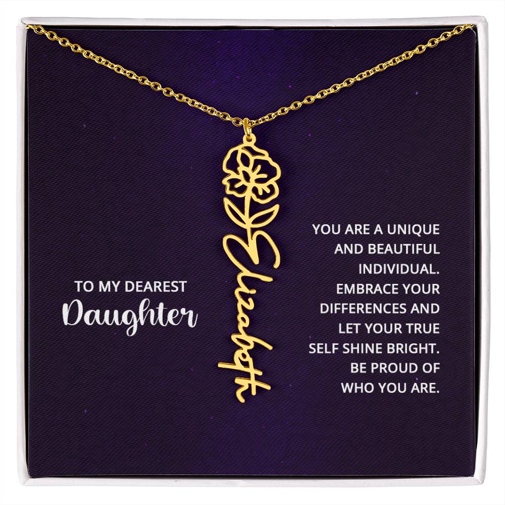To My Dearest Daughter | You are unique and beautiful individual, embrace your differences and let your true self shine bright - Flower Name Necklace