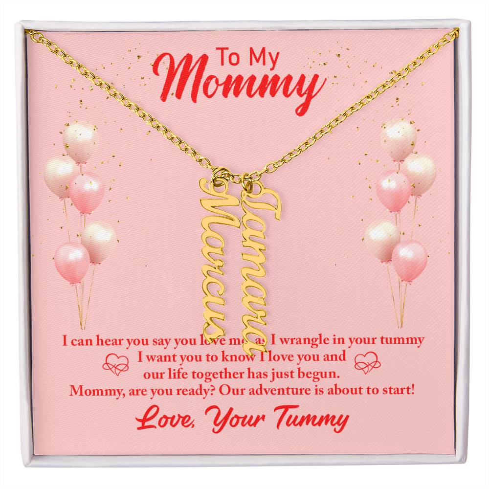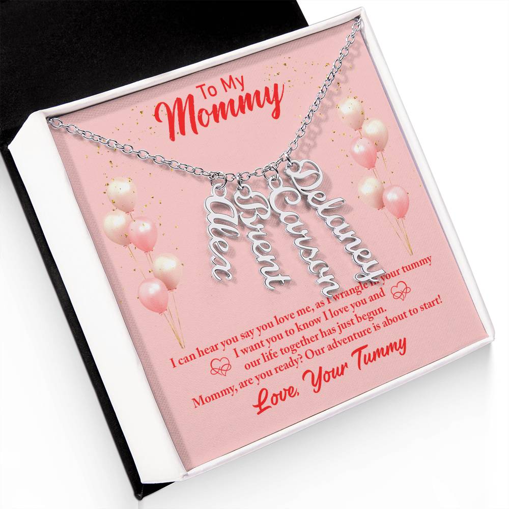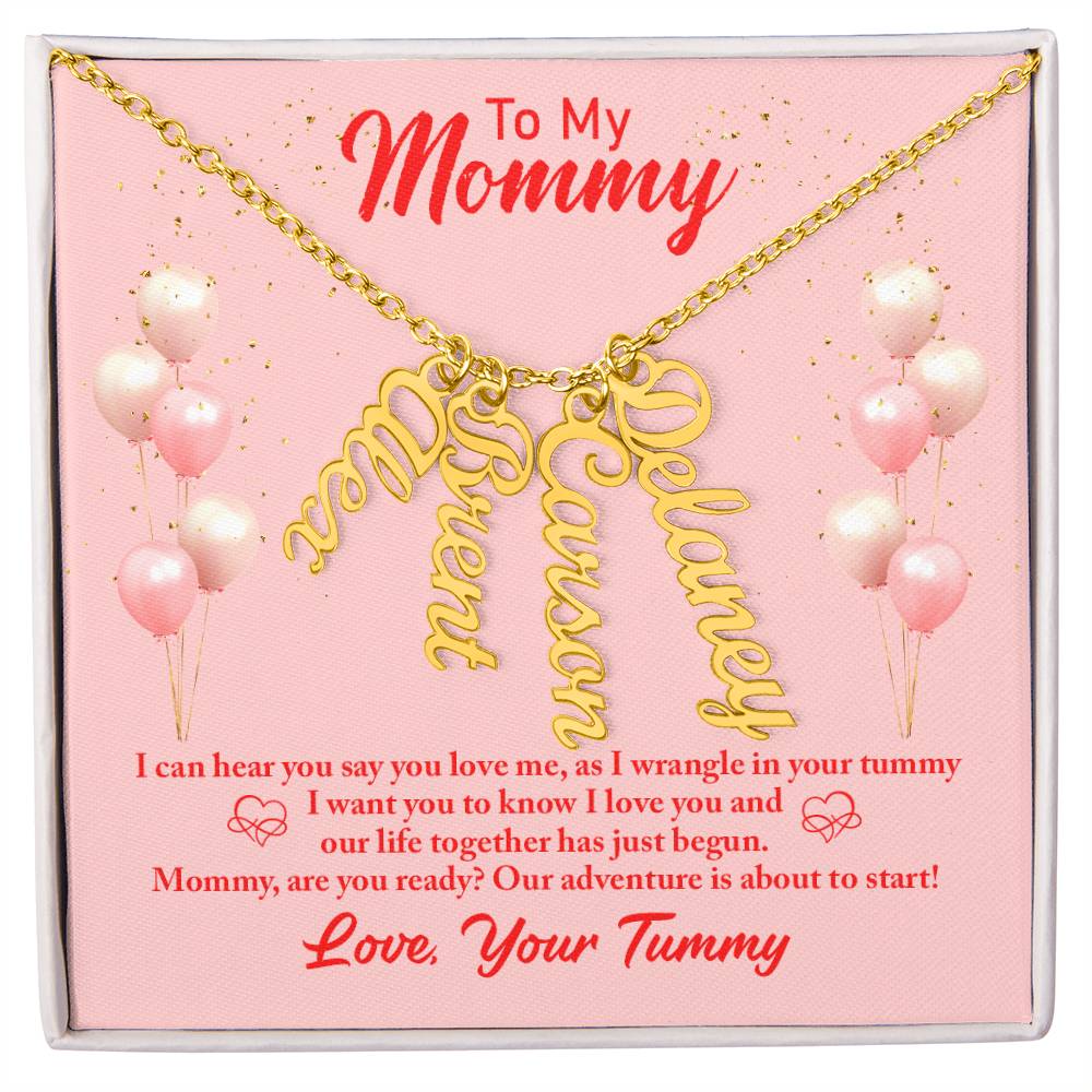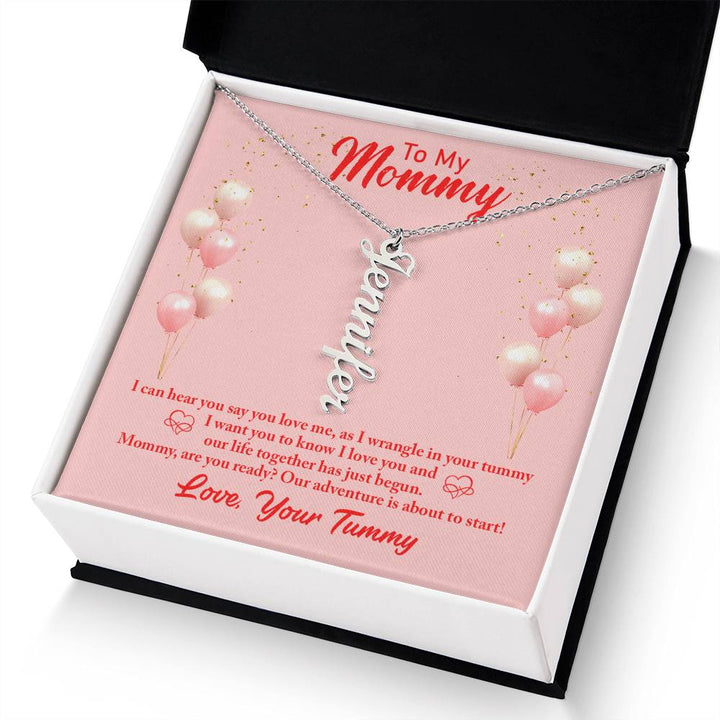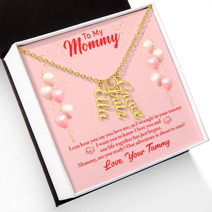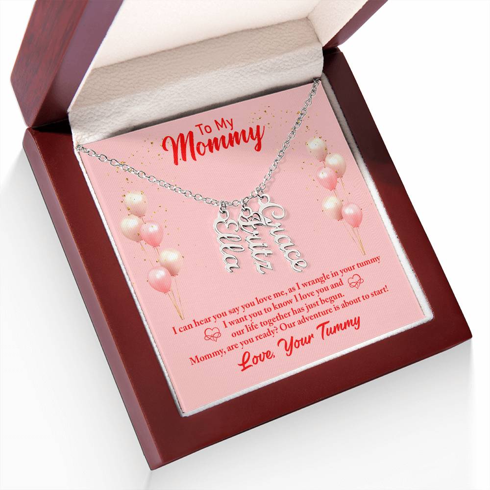 To My Mommy | I can hear you say you love, as I wrangle in your tummy - Multi Vertical Name Necklace