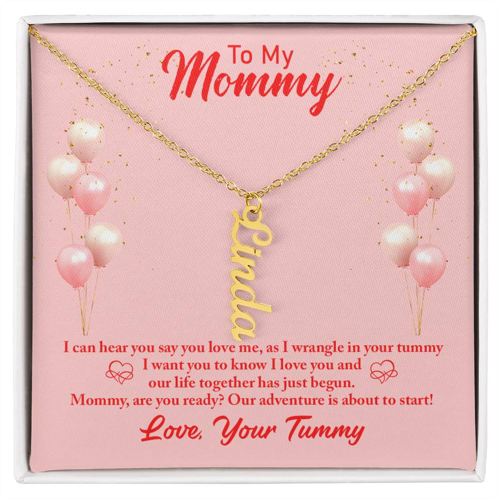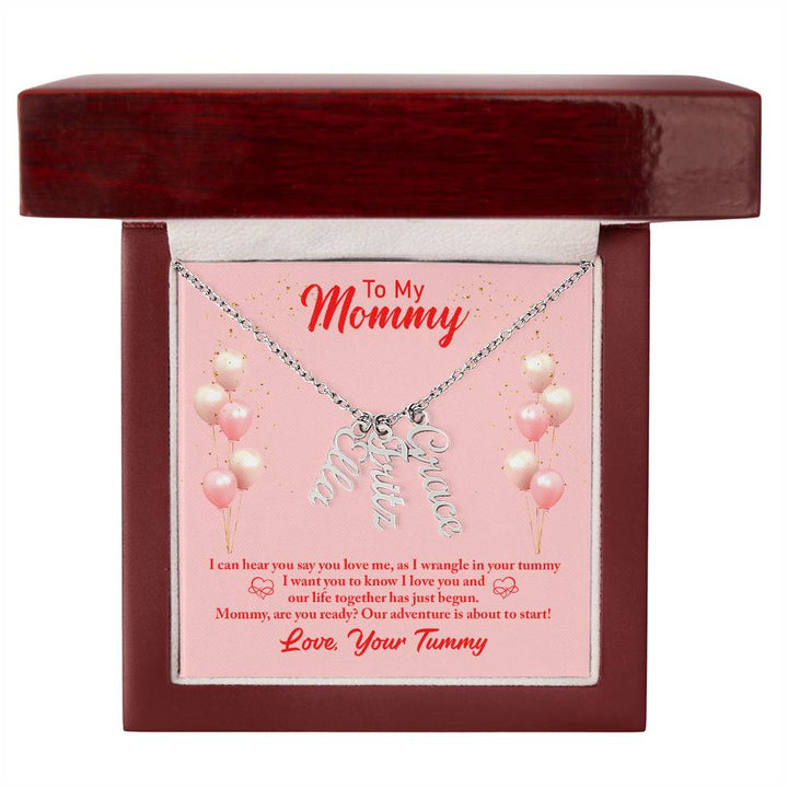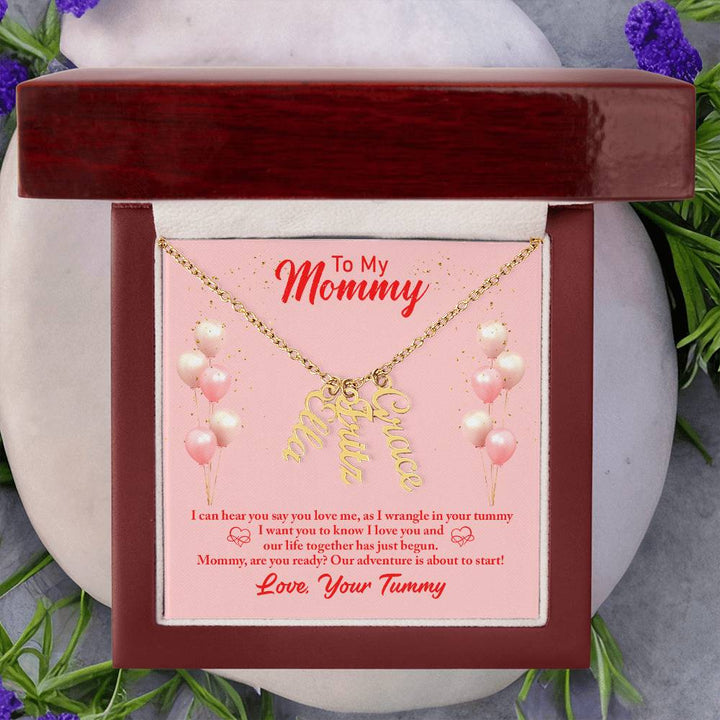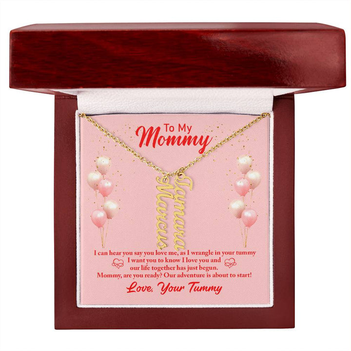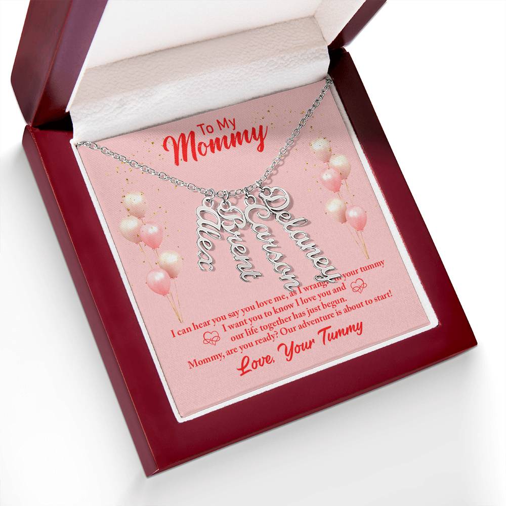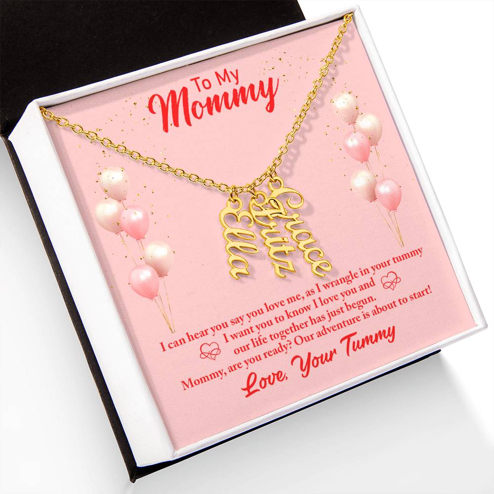 To My Mommy | I can hear you say you love, as I wrangle in your tummy - Multi Vertical Name Necklace